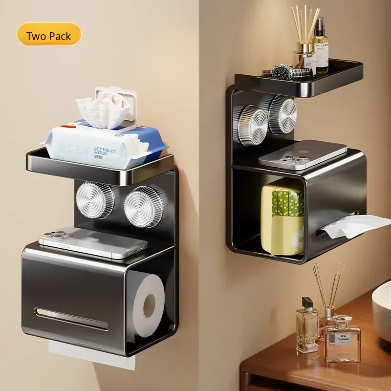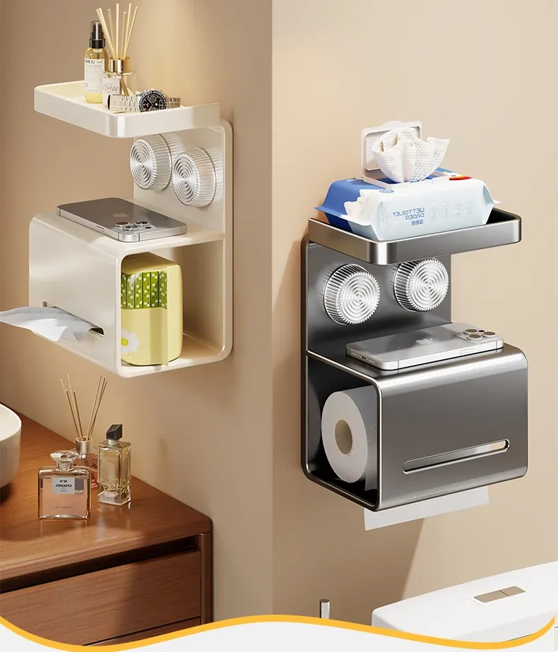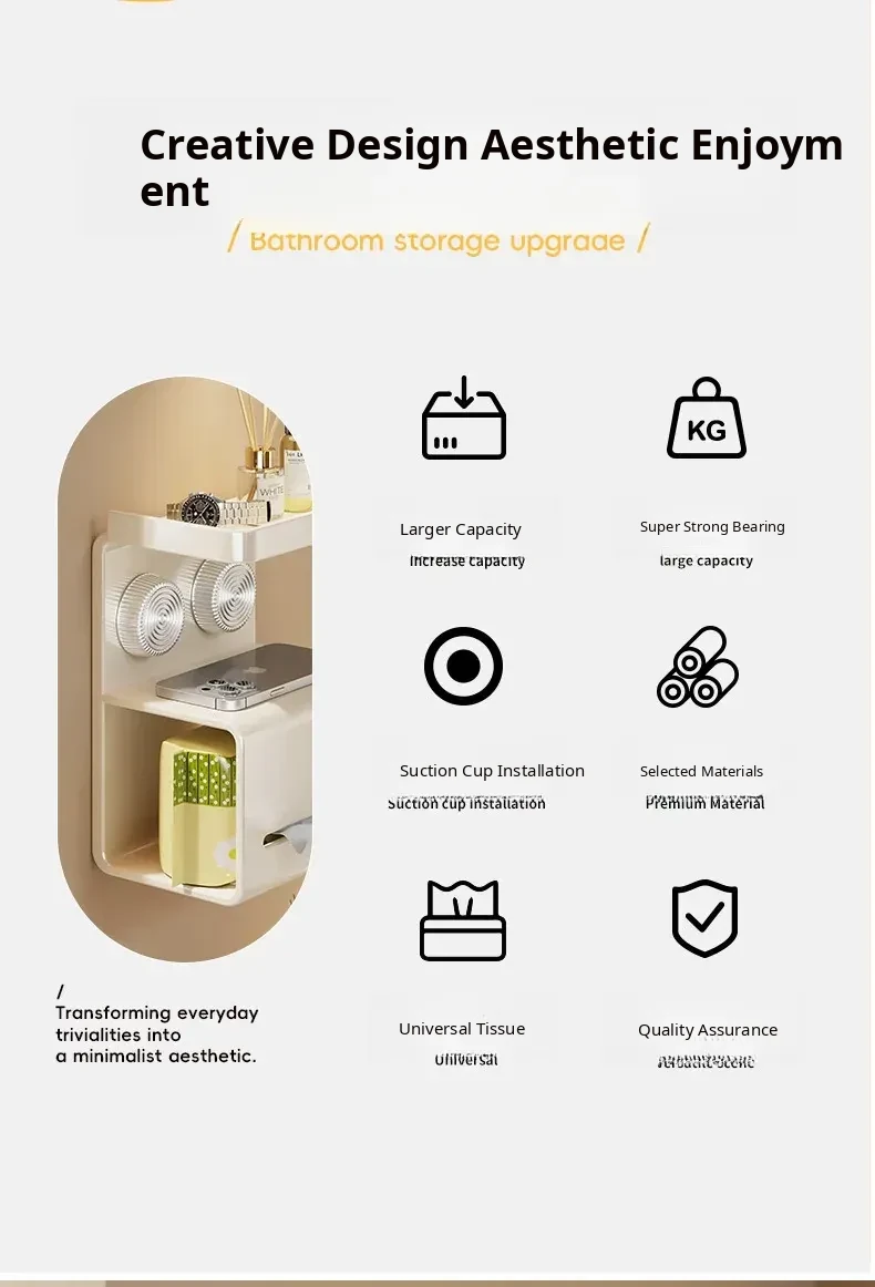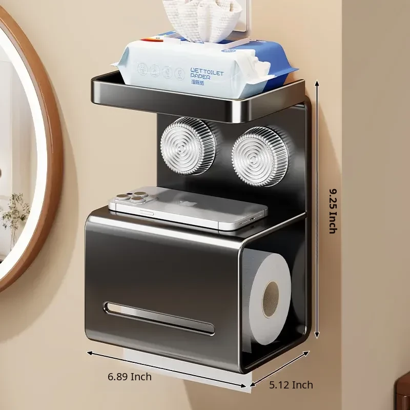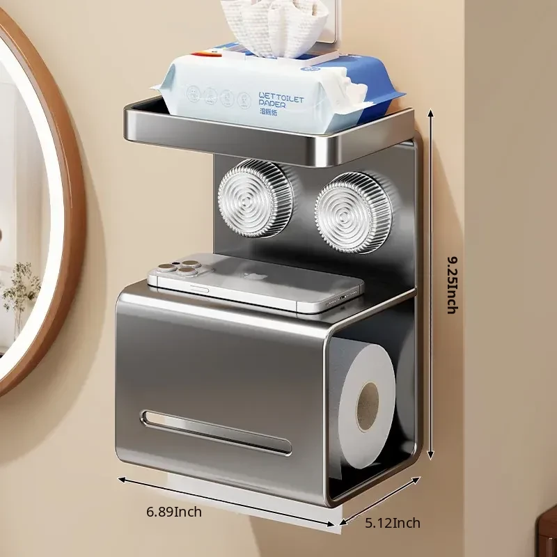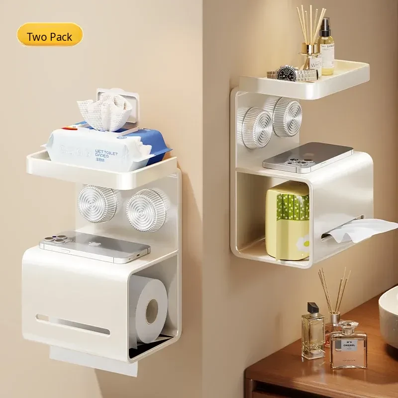 Wall-Mounted Tissue Holder for Bathroom - No Drilling Required, Space-Saving Storage Rack for Toilet Paper, Hand Towels, and Facial Wipes - Keep Your Bathroom Organized and Stylish!