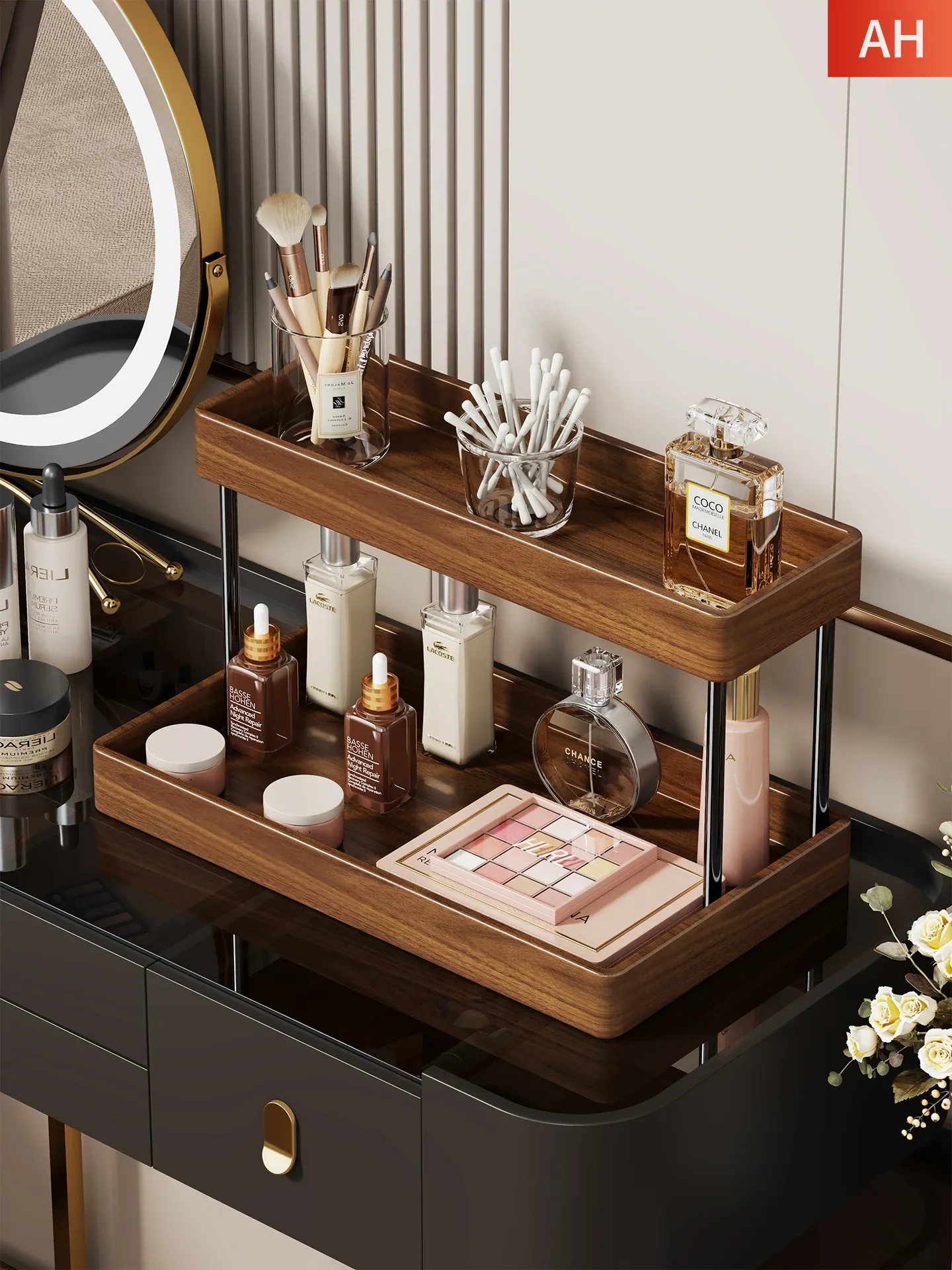 Elegant Solid Wood Cosmetic Organizer - Multi-Tiered Makeup Storage Box for Desktop, Perfect for Lipstick and Skincare Products, Ideal Vanity Accessory for a Stylish Touch.