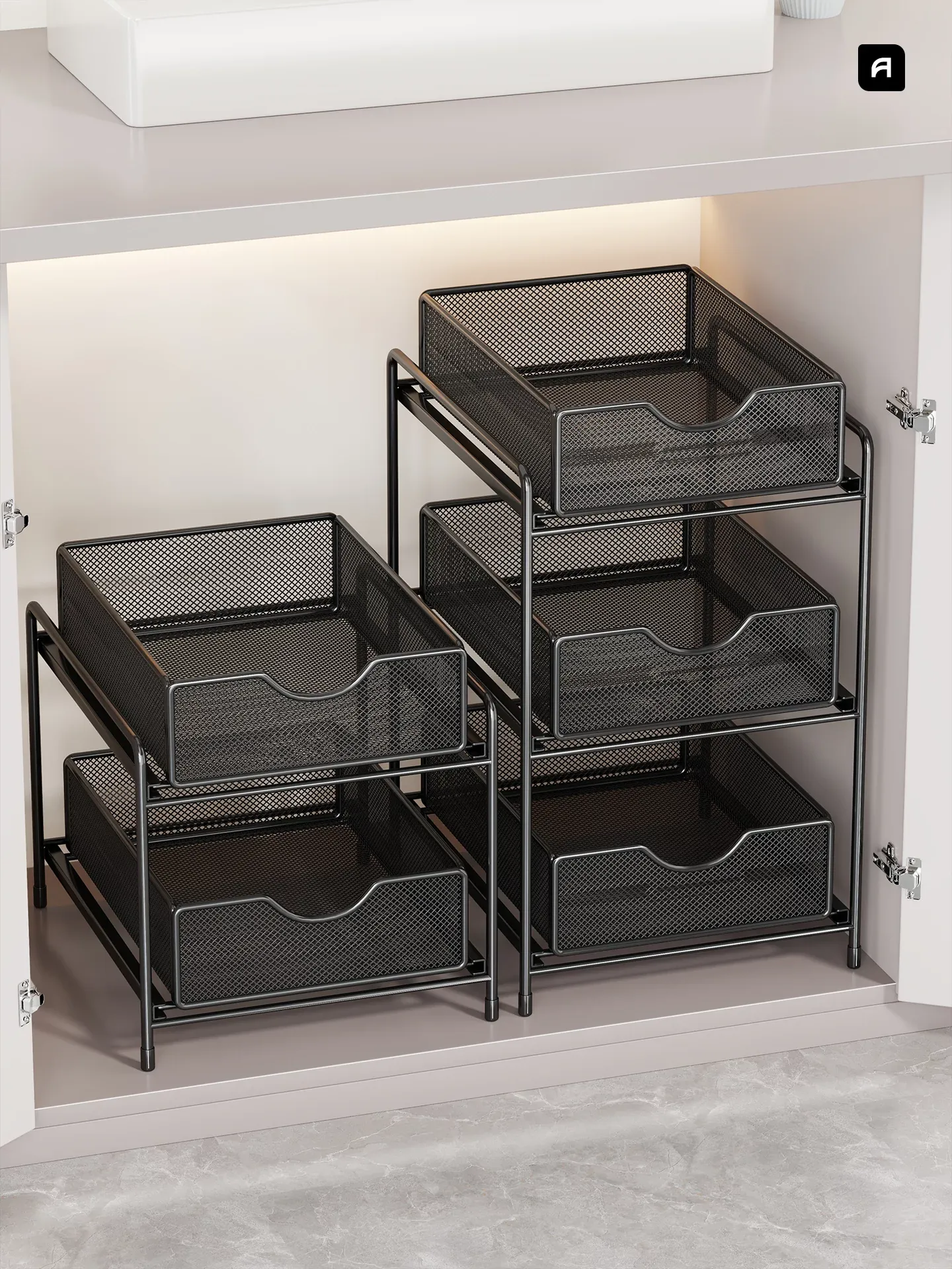 Multi-functional Pull-out Storage Rack for Bathroom Cabinets - Extra Deep Drawer Organizers for Kitchen and Bathroom, Perfect for Maximizing Space and Keeping Your Essentials Organized!