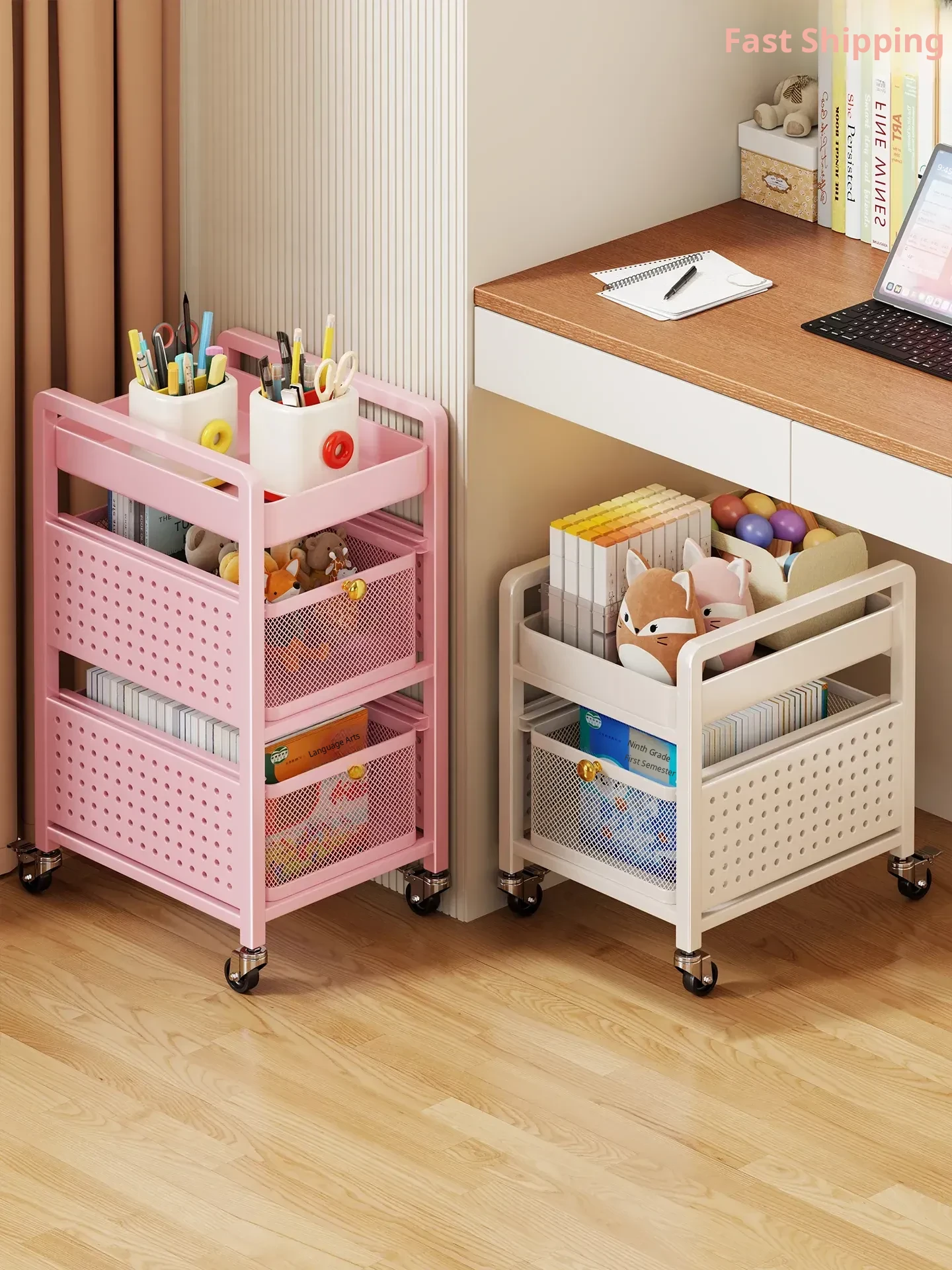 Portable Book Storage Cart - Multi-Layer Rolling Rack for Bags and Books, Perfect for Home Use Under Desk Organizer with Wheels, A Must-Have Solution for Neat and Tidy Spaces!