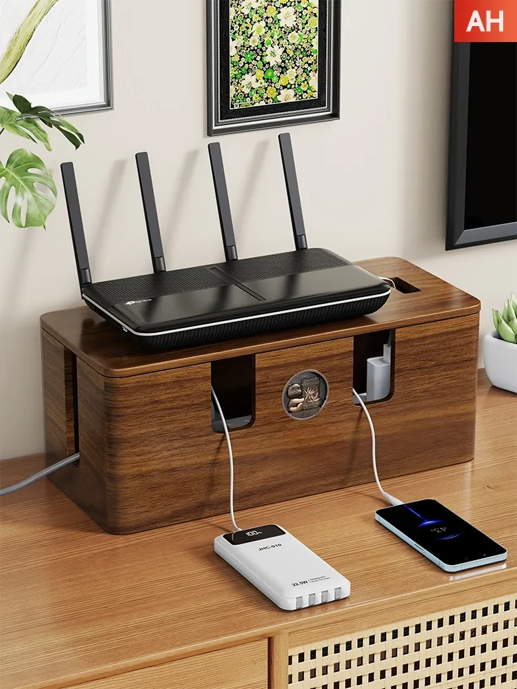 Wooden Power Strip Organizer Box - Neatly Store Charging Cables for Phones, Earphones, Smartwatches, Tablets, and iPads. Perfect for a Tidy and Stylish Home Office!