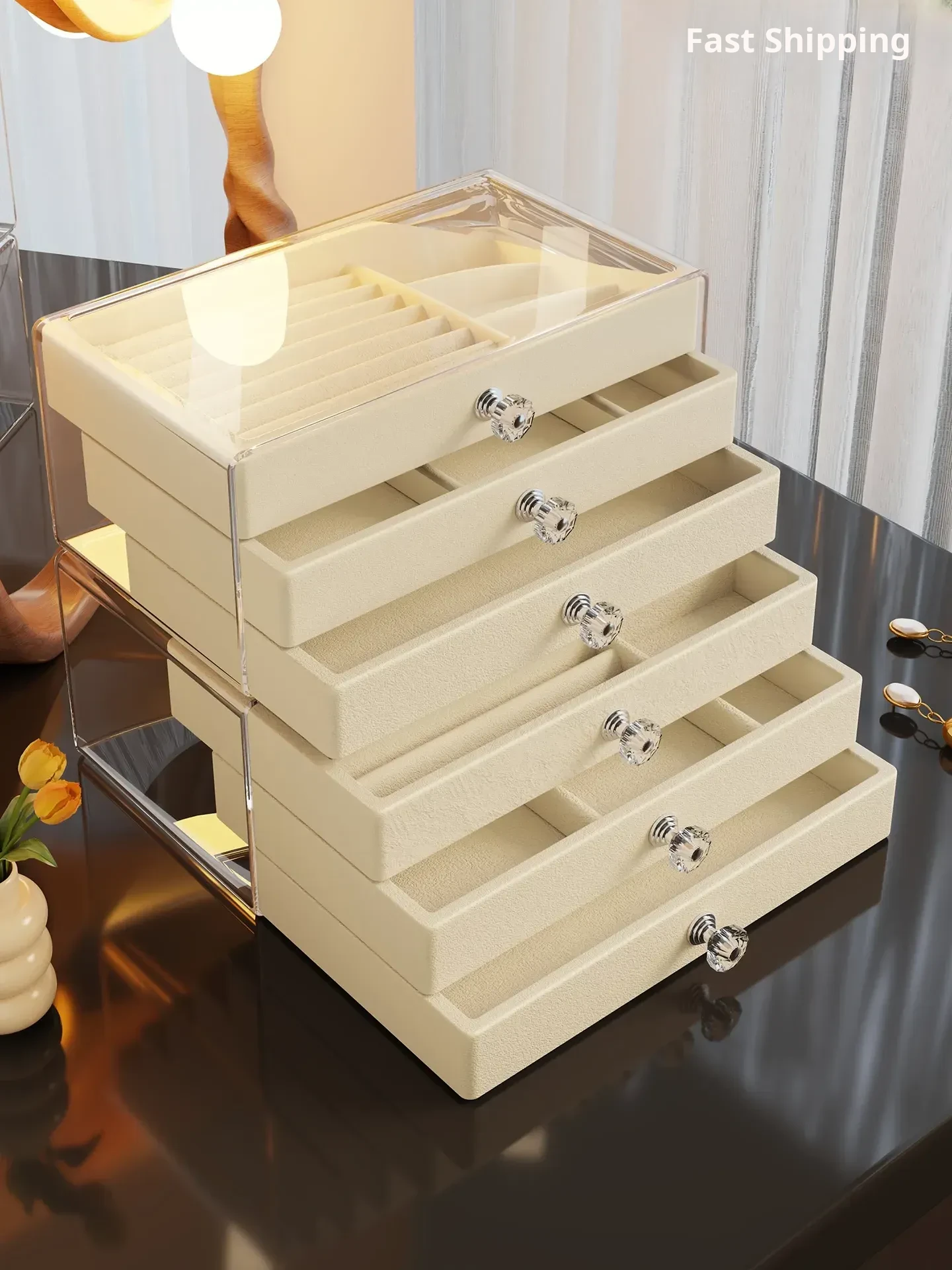Elegant Multi-Layer Jewelry Organizer Box with Drawers for Earrings, Studs, and Rings – Spacious Display Rack for High-End Accessories