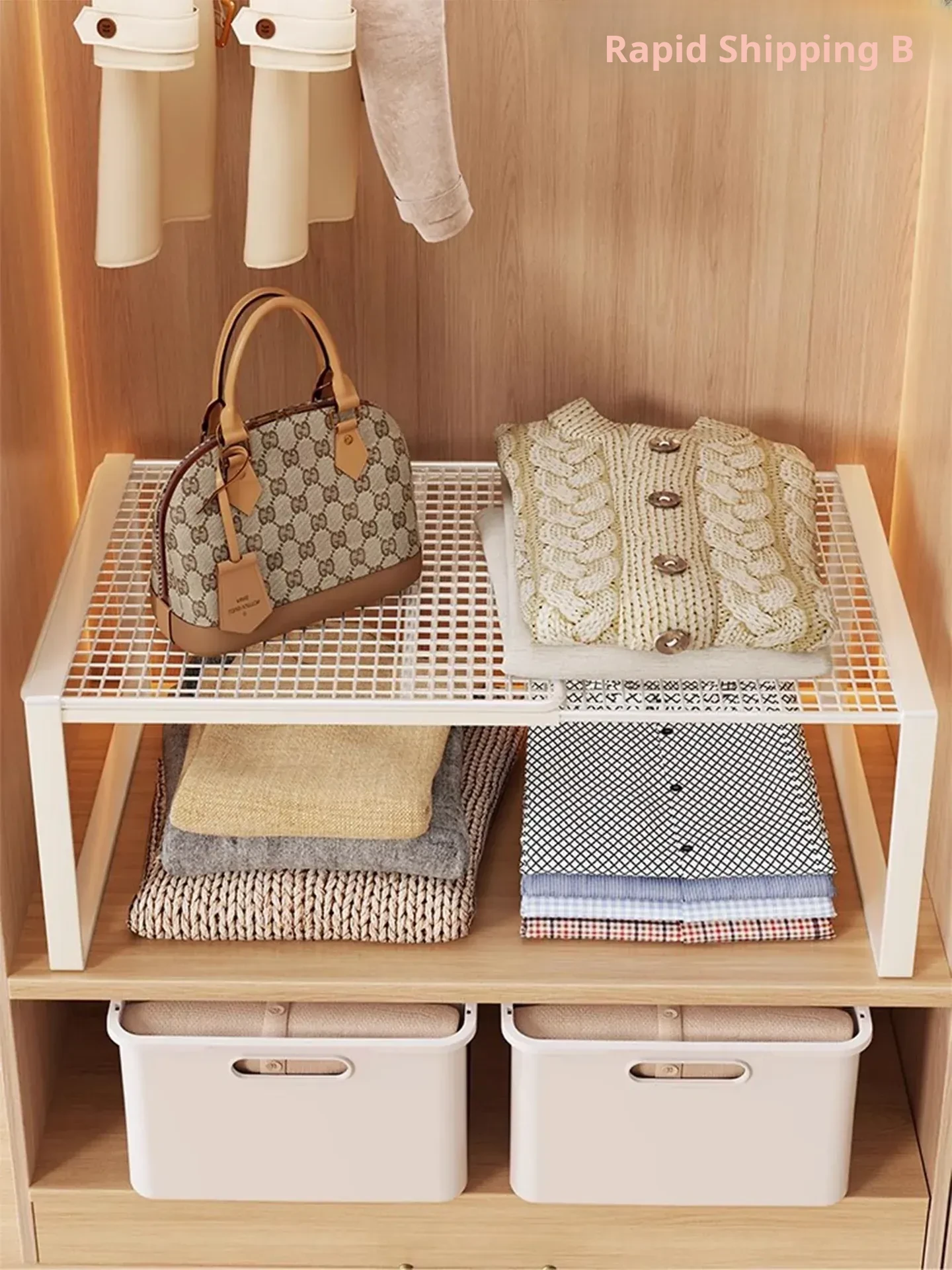 Expandable Closet Divider with Layered Shelves - Versatile Storage Rack for Wardrobes, Shoe Cabinets, and More! Perfect for Organizing Your Space and Maximizing Storage Efficiency!