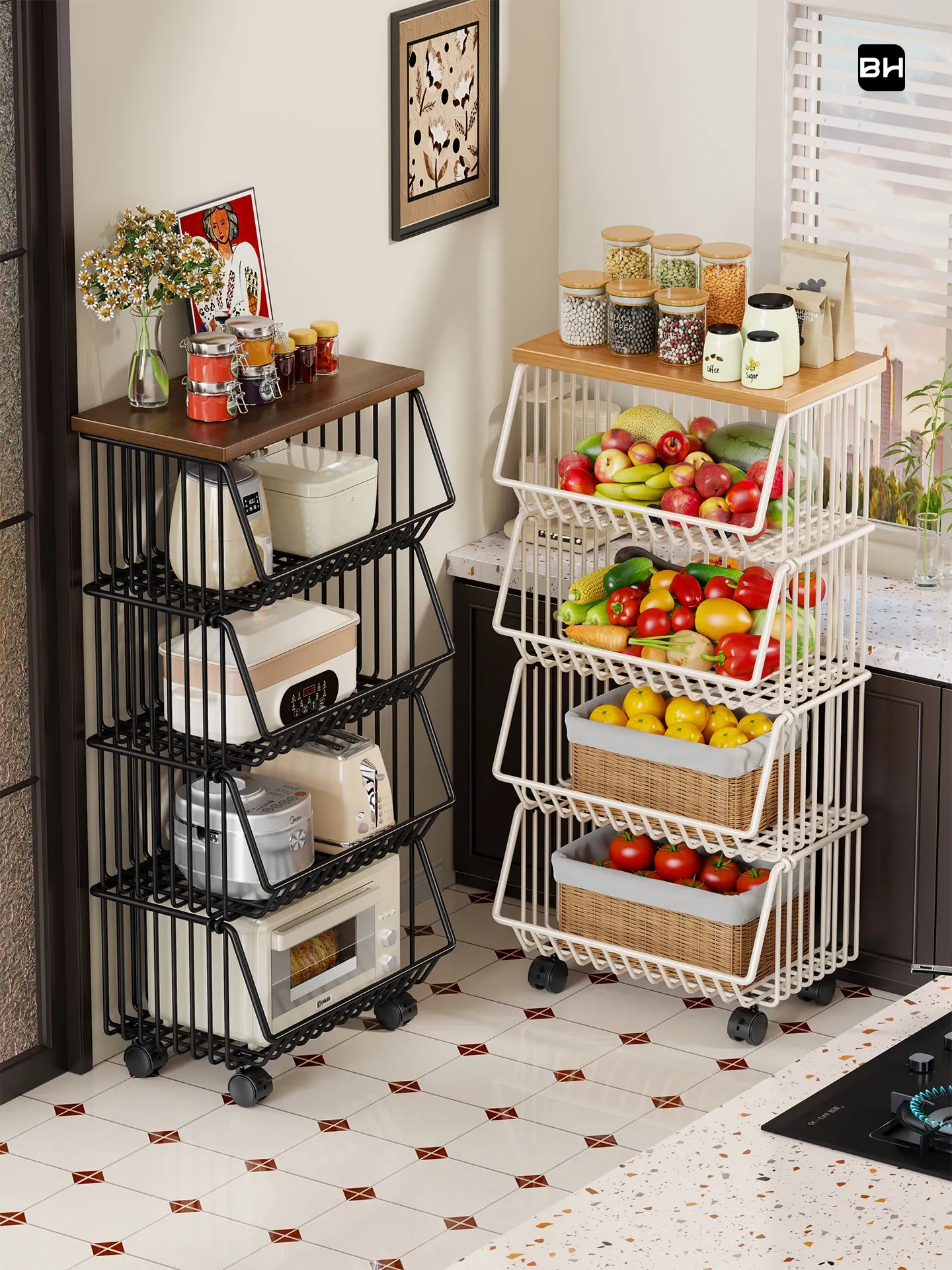 Multifunctional Kitchen Storage Rack - Versatile Side Cabinet for Organizing Spices, Vegetables, and Fruits. Portable Snack Organizer for Living Room - Your Ultimate Space-Saving Solution!