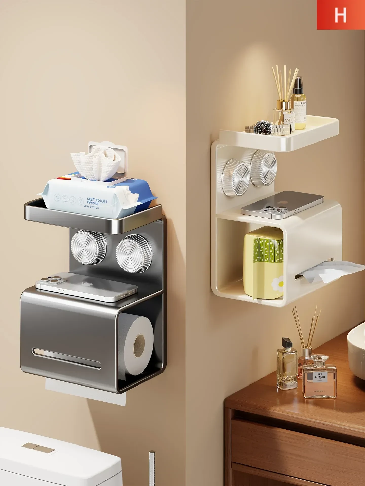 Wall-Mounted Tissue Holder for Bathroom - No Drilling Required, Space-Saving Storage Rack for Toilet Paper, Hand Towels, and Facial Wipes - Keep Your Bathroom Organized and Stylish!