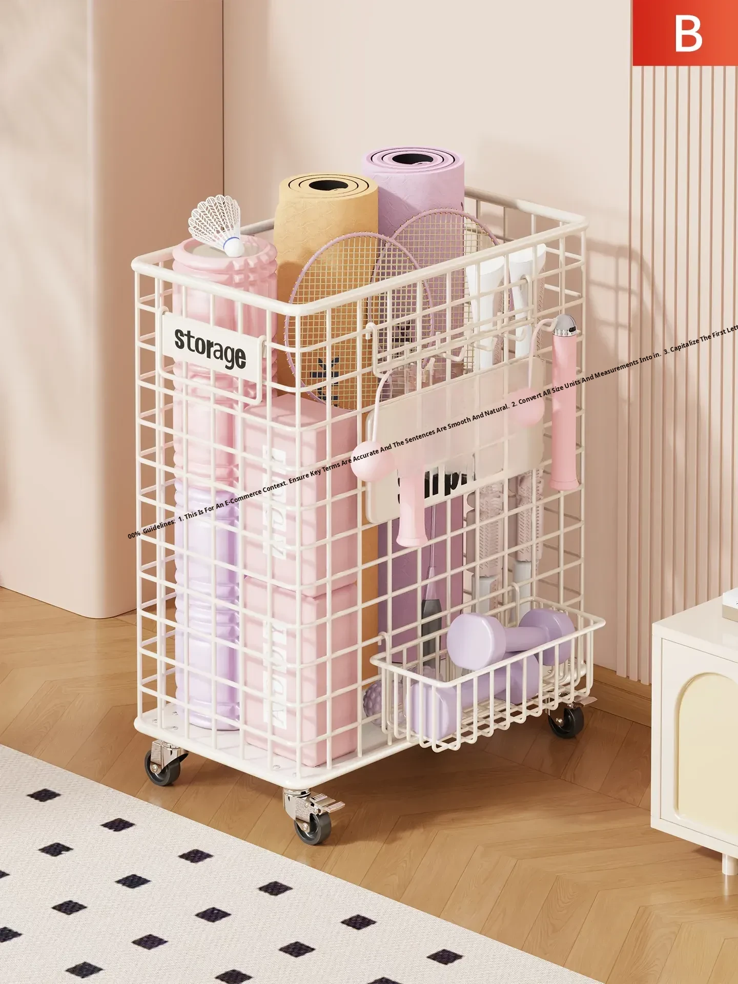 Versatile Home Fitness Equipment Storage Rack with Wheels - Large Capacity for Easy Mobility, Perfect for Storing Yoga Mats and Badminton Gear in Tight Spaces!