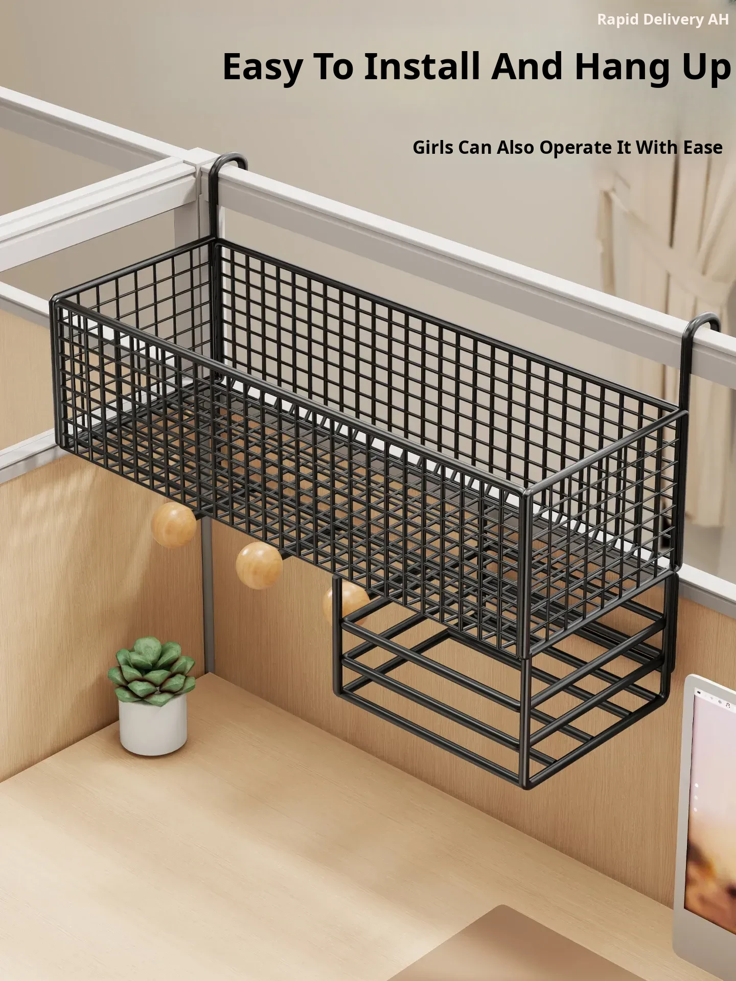 Office Desk Storage Rack - Wall-Mounted Organizer with Large Capacity, No-Drill Hooks and Baskets, Perfect for Maximizing Workspace Efficiency and Keeping Your Desk Clutter-Free!