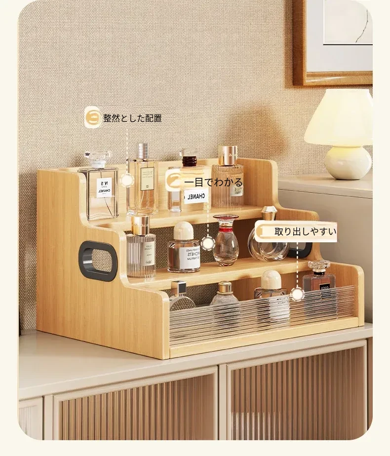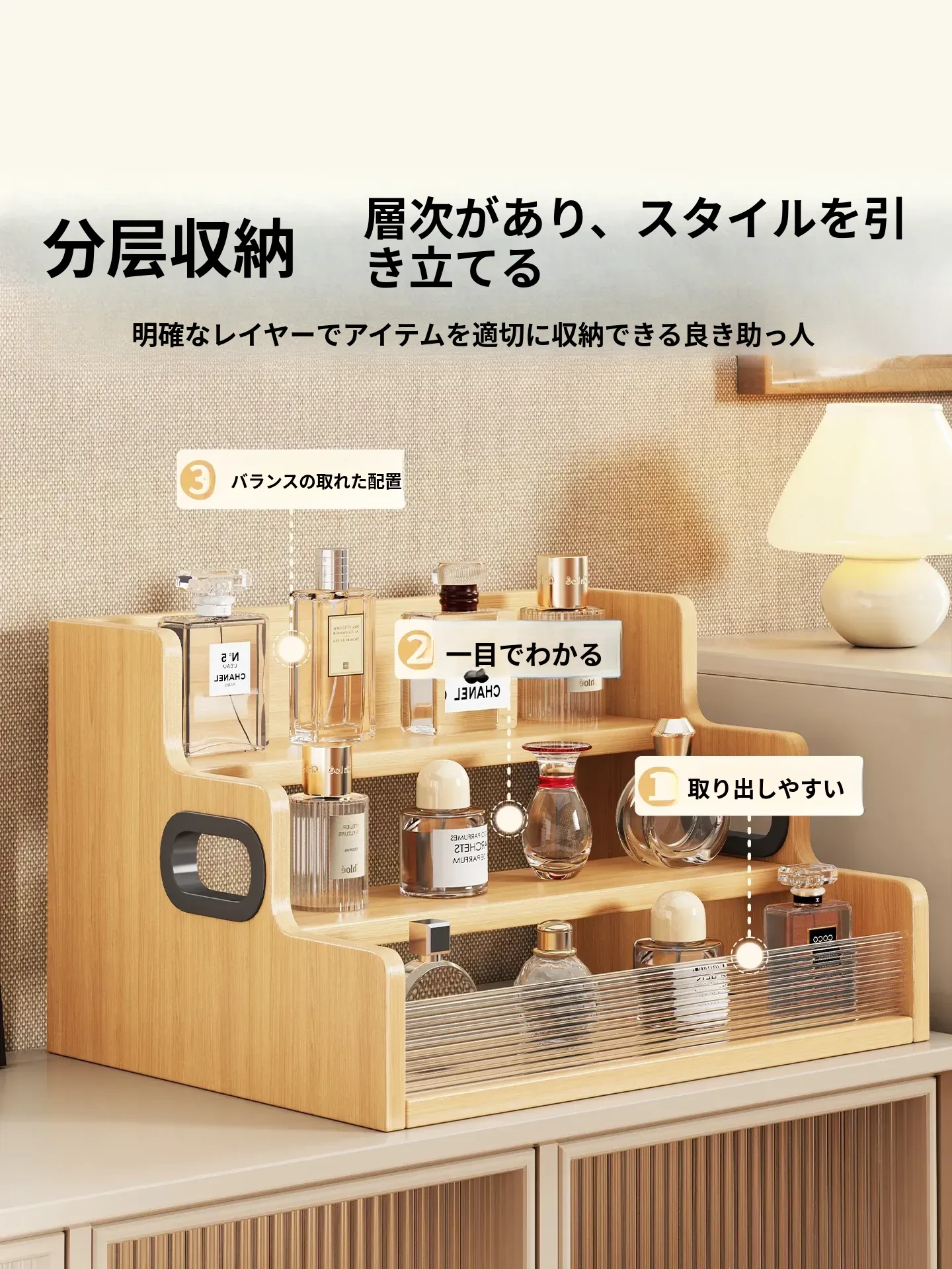 デスクトップ香水ディスプレイスタンド - アクリル化粧品・口紅・階段型展示ラック、玄関やドレッサーに最適な収納アイテム!美しく整理整頓して、毎日のメイクをもっと楽しく!
