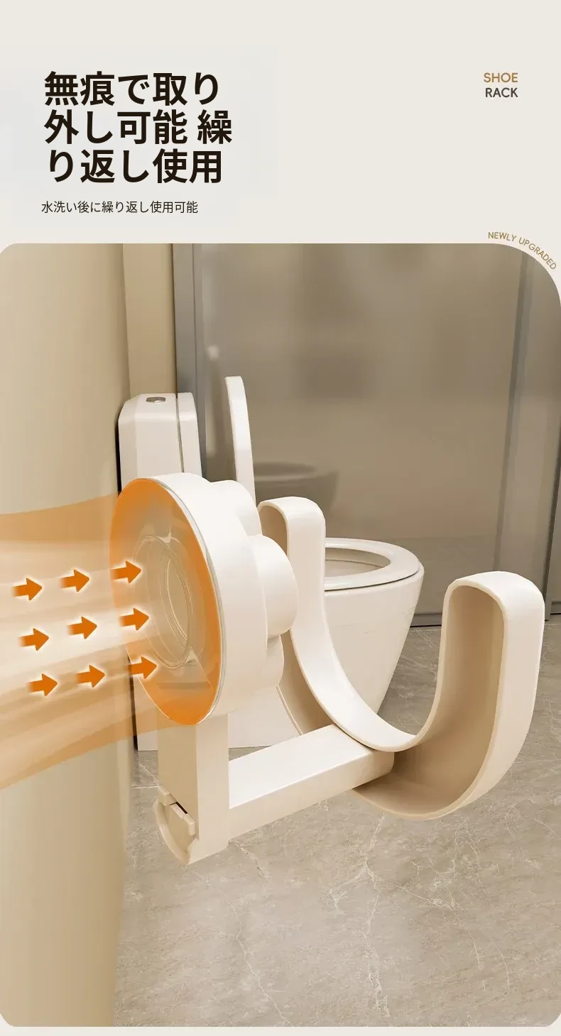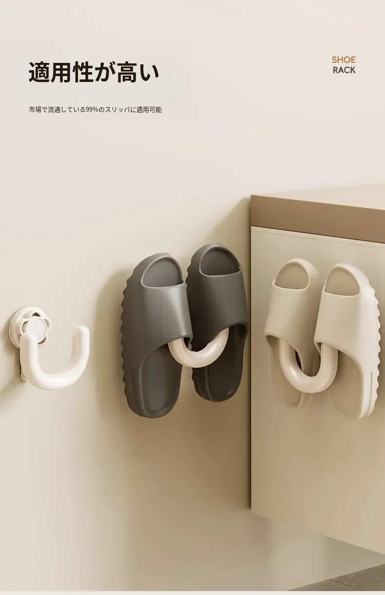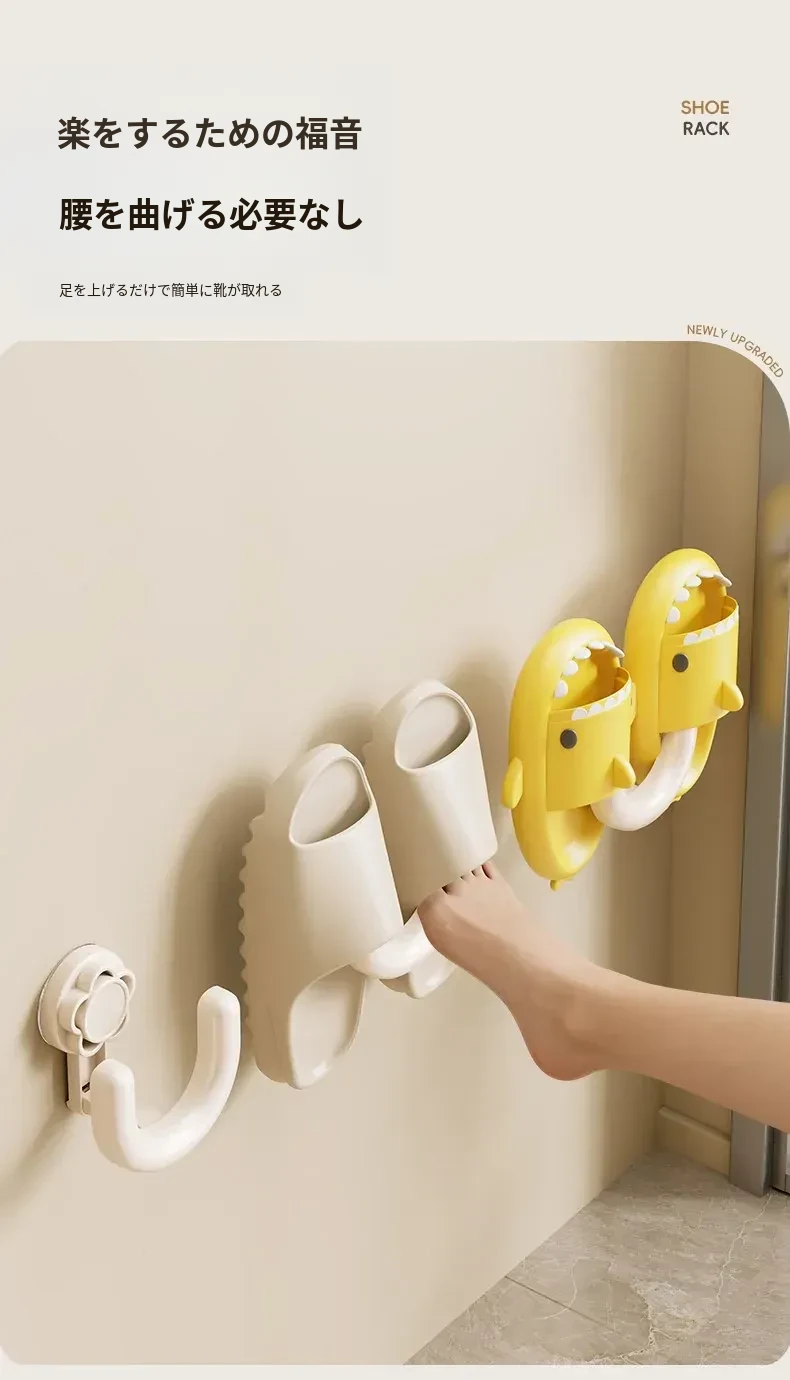 防水・吸盤式バススリッパラック!トイレの壁に取り付けるだけで、靴を清潔に収納。穴あけ不要で簡単設置!水切れも良く、スッキリとした空間を実現。