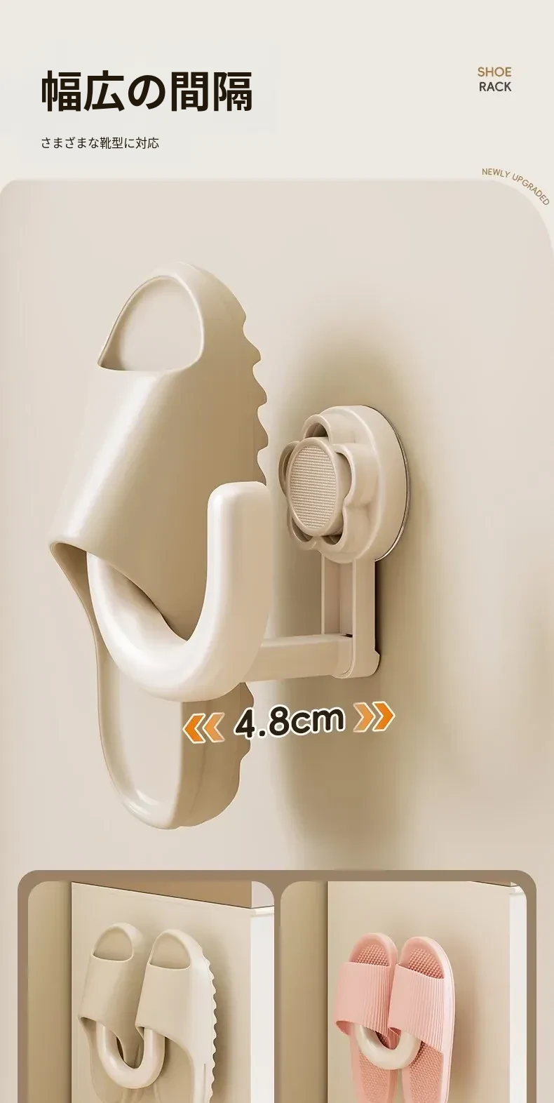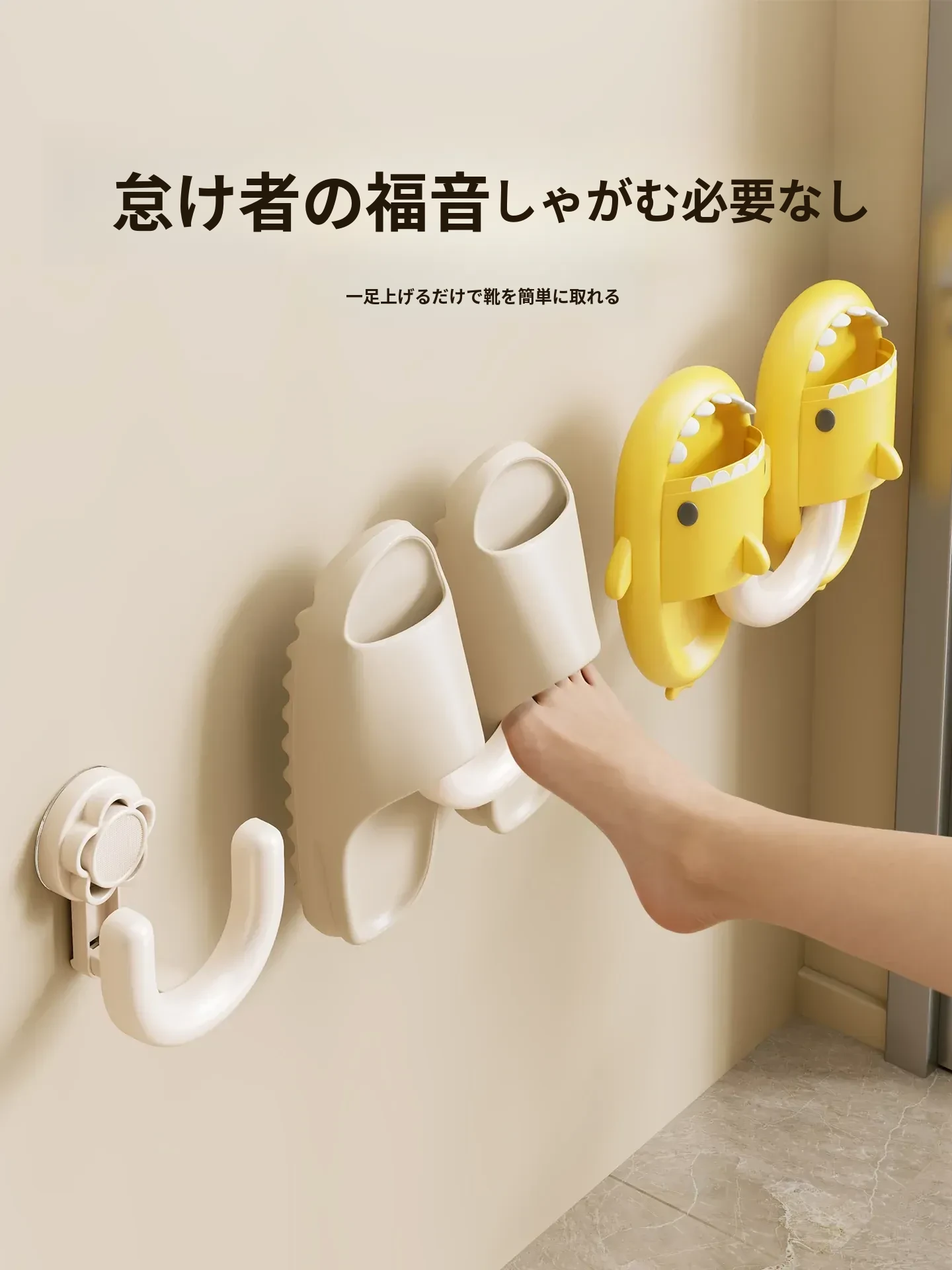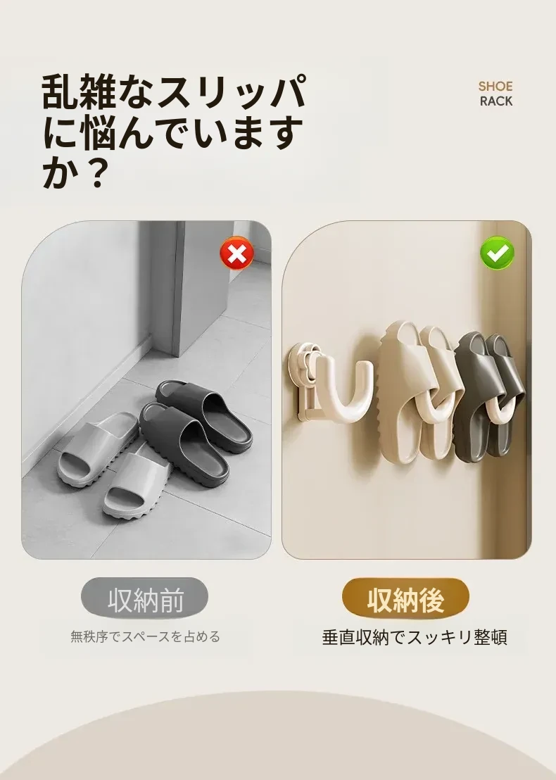 防水・吸盤式バススリッパラック!トイレの壁に取り付けるだけで、靴を清潔に収納。穴あけ不要で簡単設置!水切れも良く、スッキリとした空間を実現。