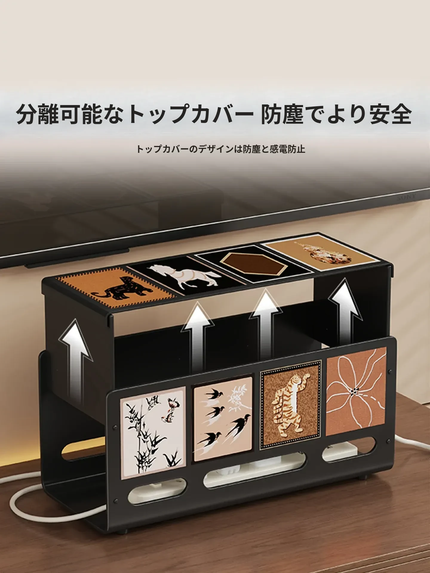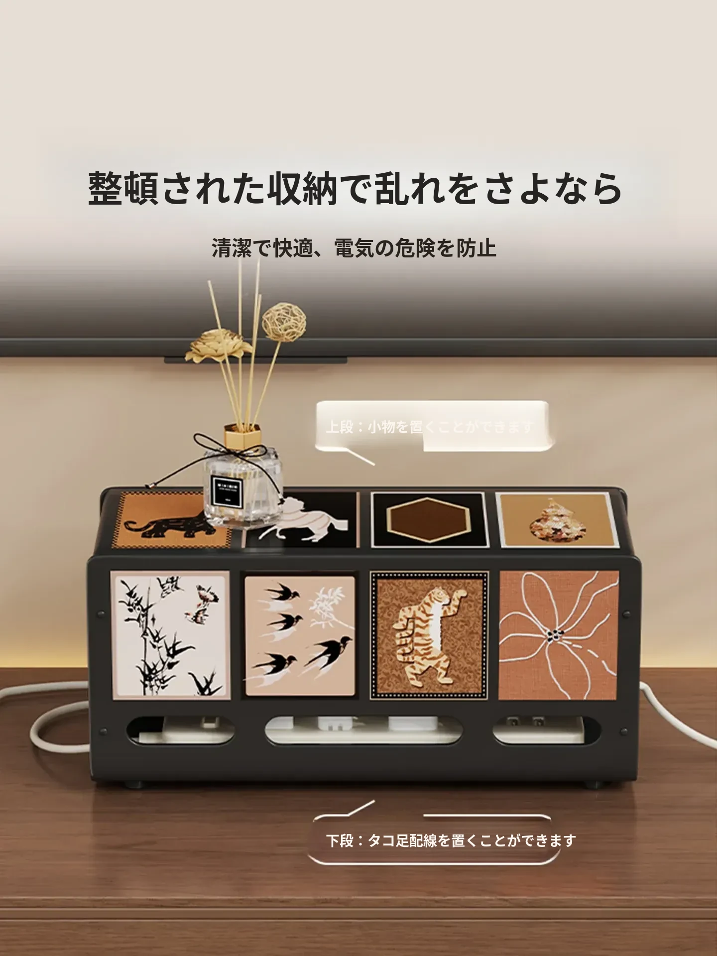デスク周りをスッキリ整理!充電ケーブル収納ボックス - コンセントハブ付き、データケーブルをすっきりまとめる便利アイテム。蓋付きでホコリから守り、スマートにデスクを演出します!