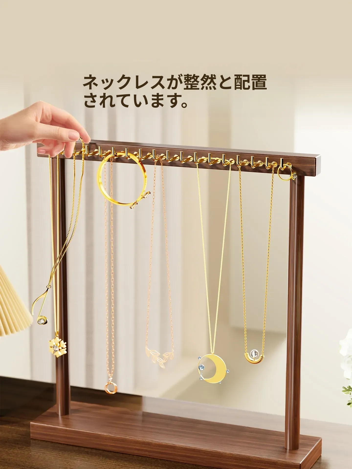デスクトップジュエリーハンガー - ネックレス収納・クリスタルディスプレイ・ブレスレット展示に最適なゴールドアクセサリーラック!美しく整理された空間で、あなたのジュエリーを引き立てます。
