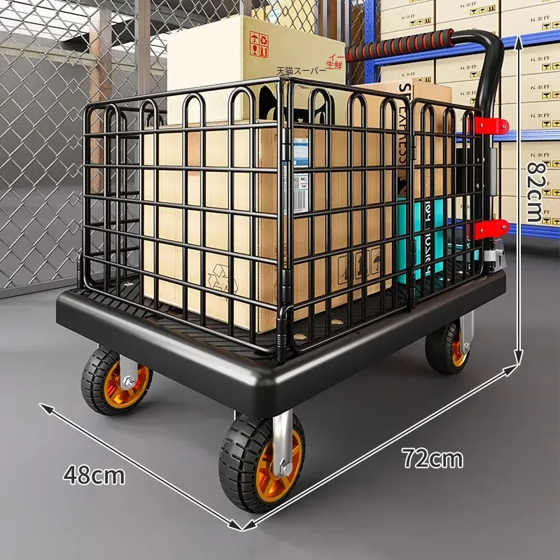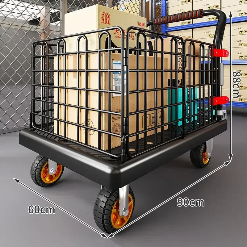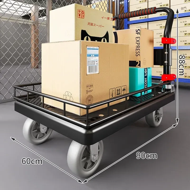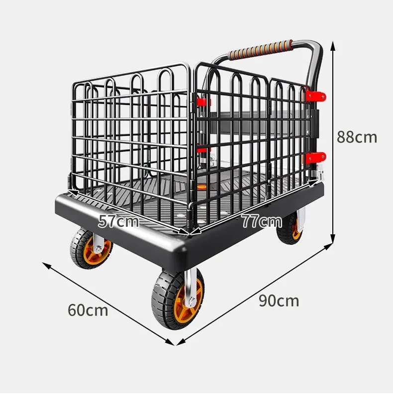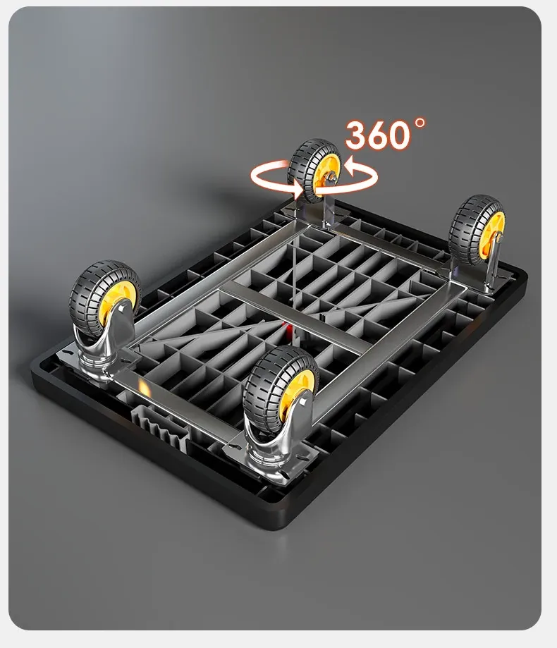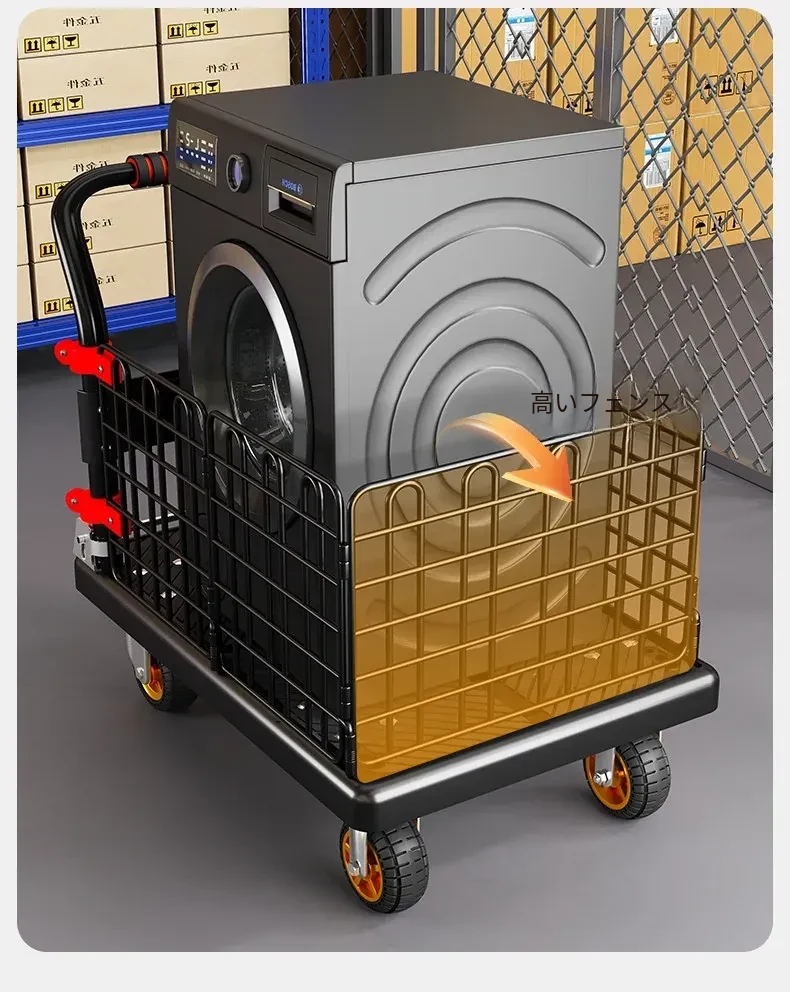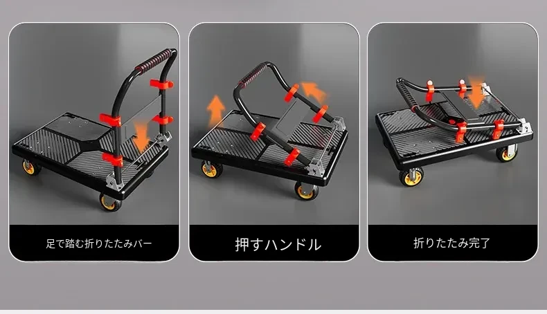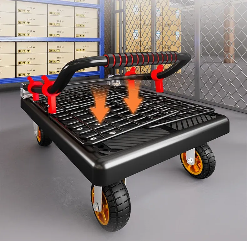 静音・折りたたみ式家庭用平板トレーラー!軽量で便利な運搬車、荷物の配送もラクラク!快適な押し引きで、日常の運搬を楽にサポートします!