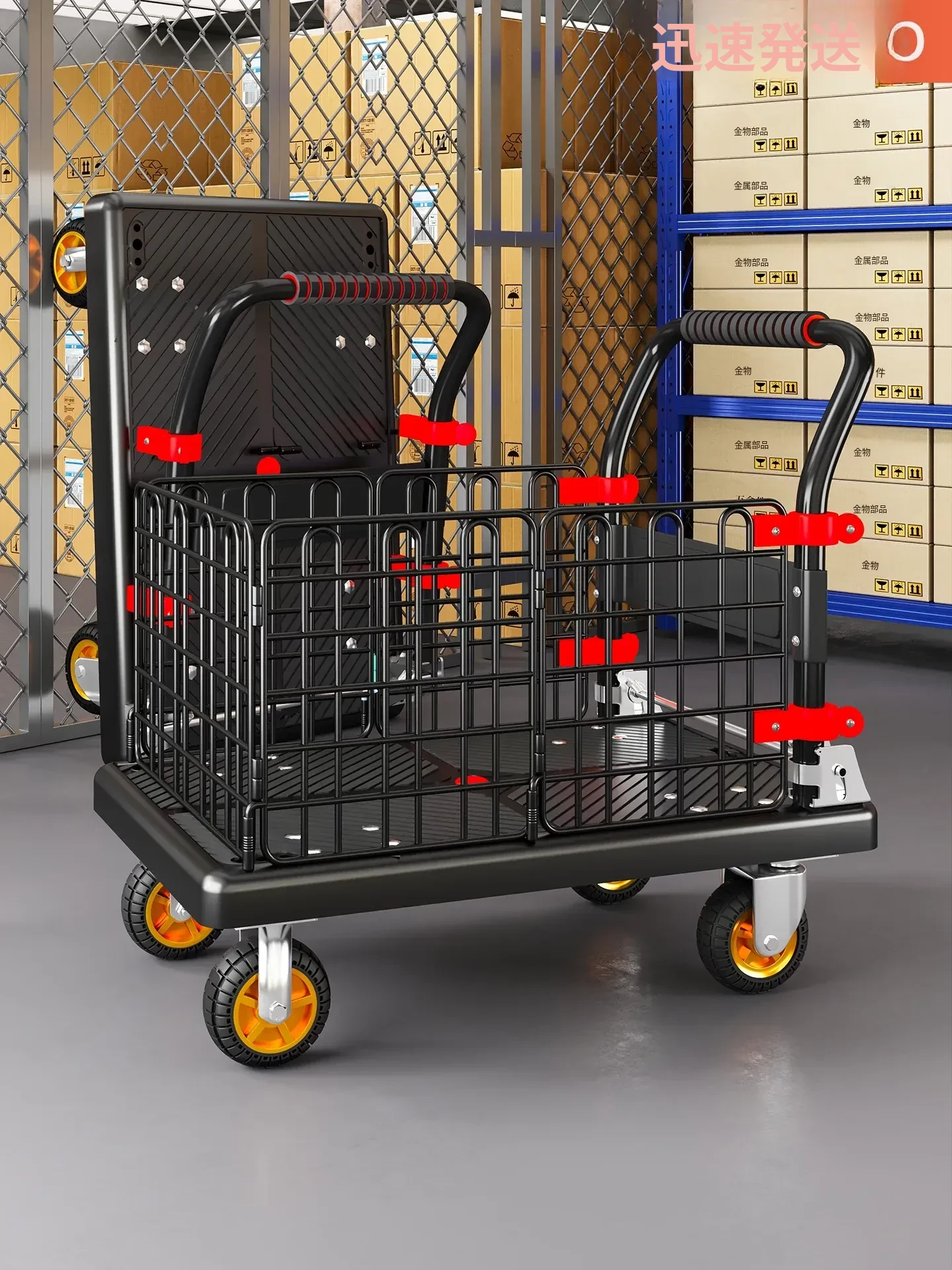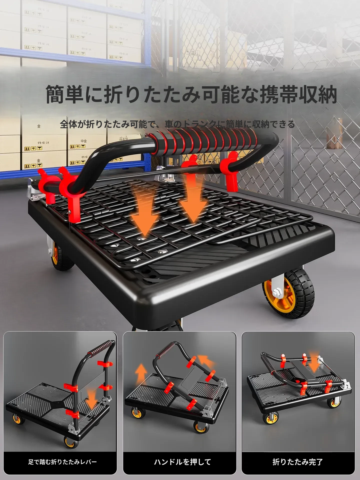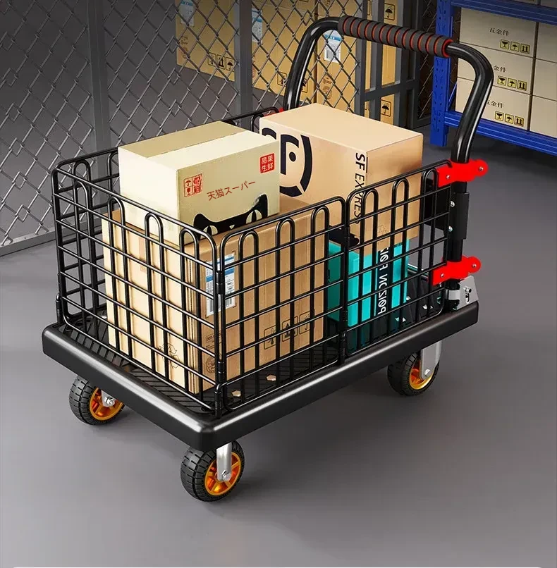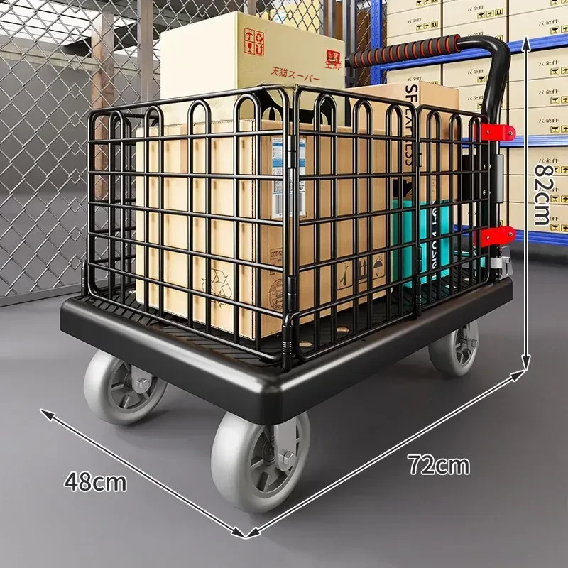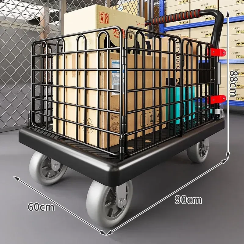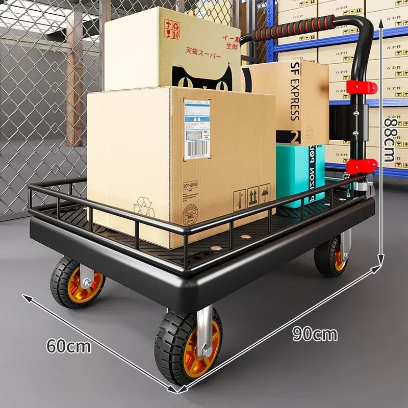 静音・折りたたみ式家庭用平板トレーラー!軽量で便利な運搬車、荷物の配送もラクラク!快適な押し引きで、日常の運搬を楽にサポートします!