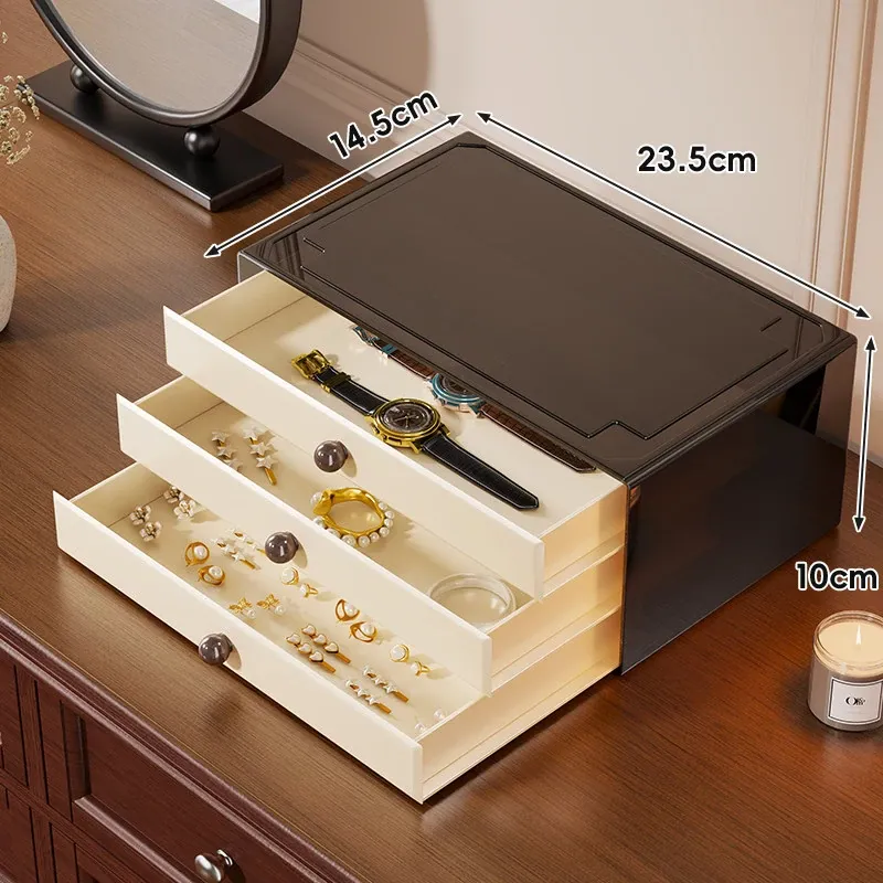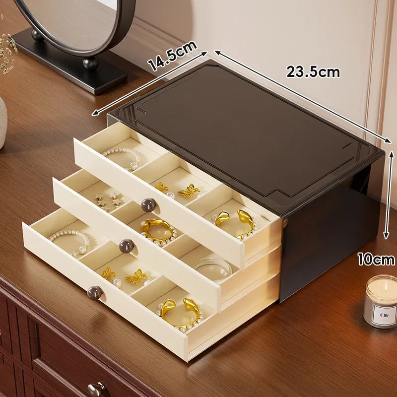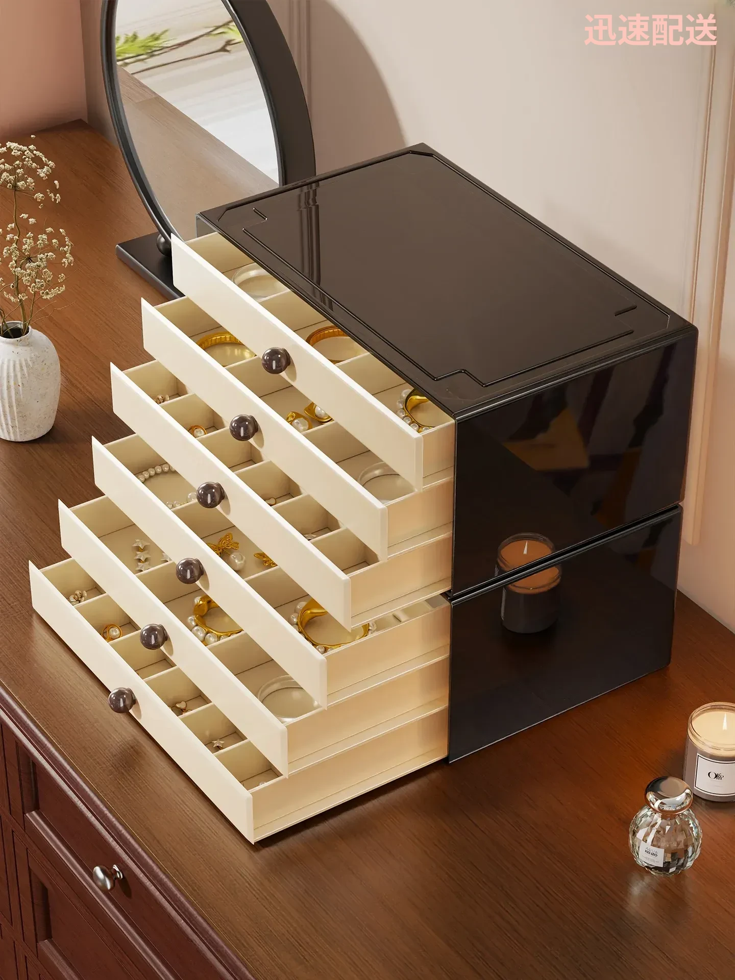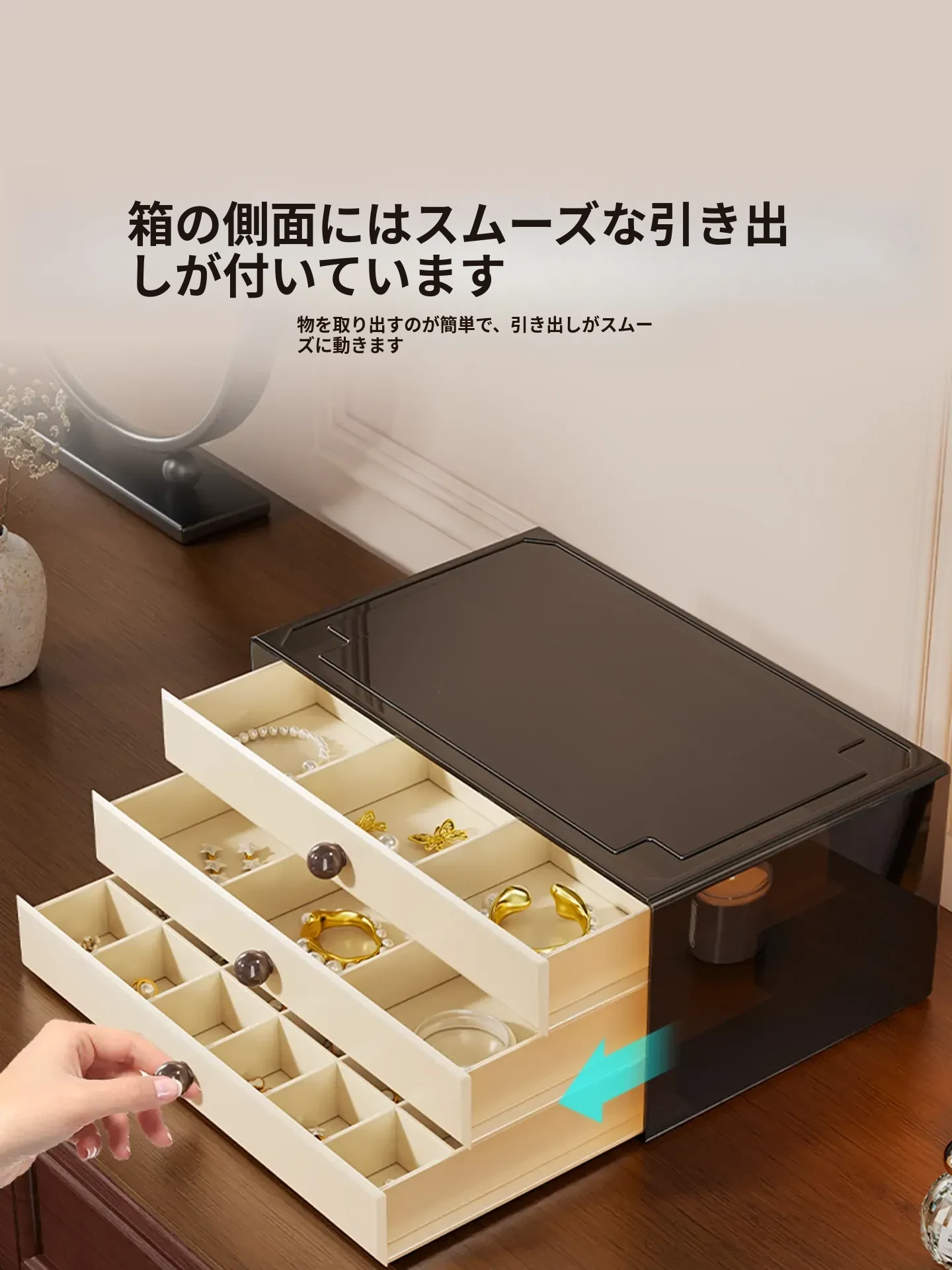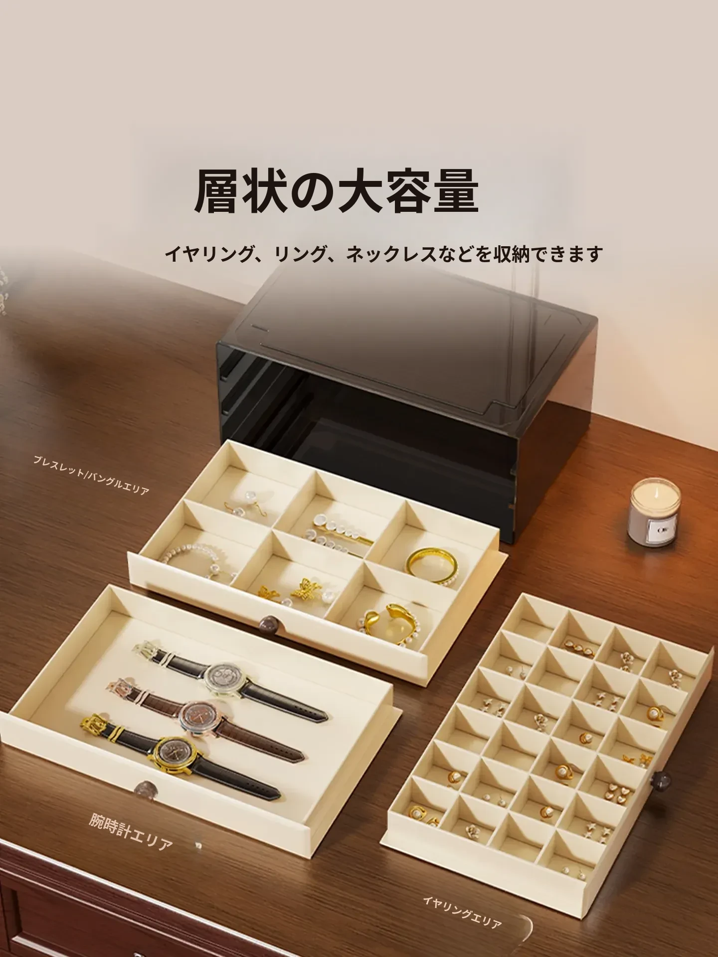 高級多層ジュエリーボックス - デスクトップ用耳飾り・手飾り収納、引き出し式リング・ネックレスディスプレイラック!あなたの宝物を美しく整理し、スタイリッシュに見せる完璧なアイテム!