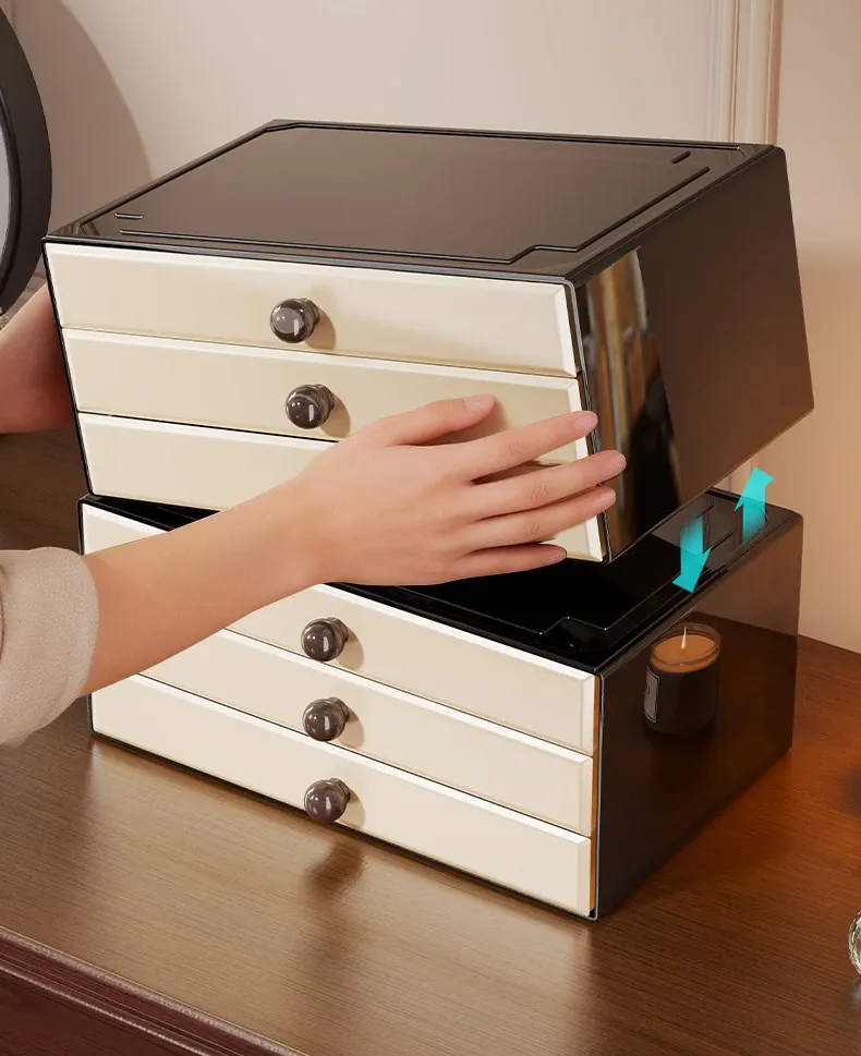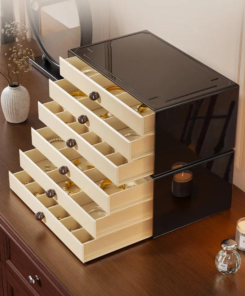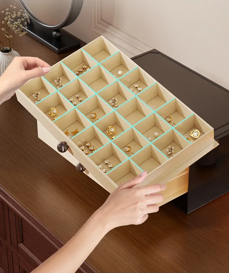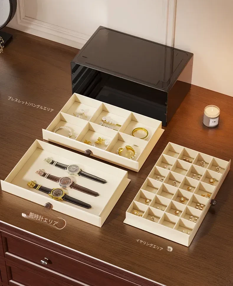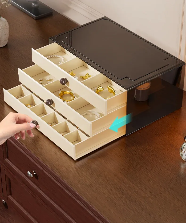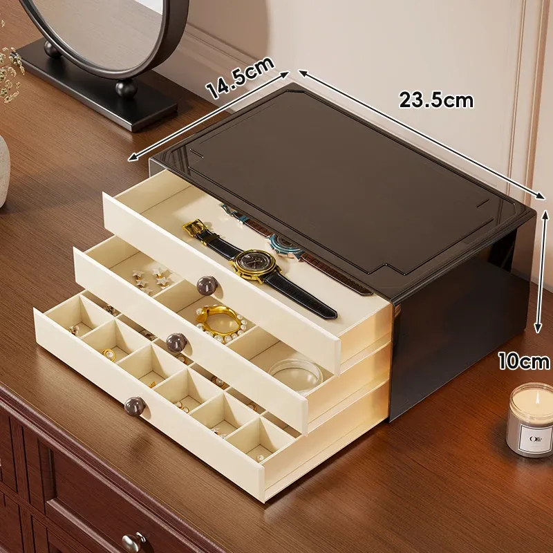 高級多層ジュエリーボックス - デスクトップ用耳飾り・手飾り収納、引き出し式リング・ネックレスディスプレイラック!あなたの宝物を美しく整理し、スタイリッシュに見せる完璧なアイテム!