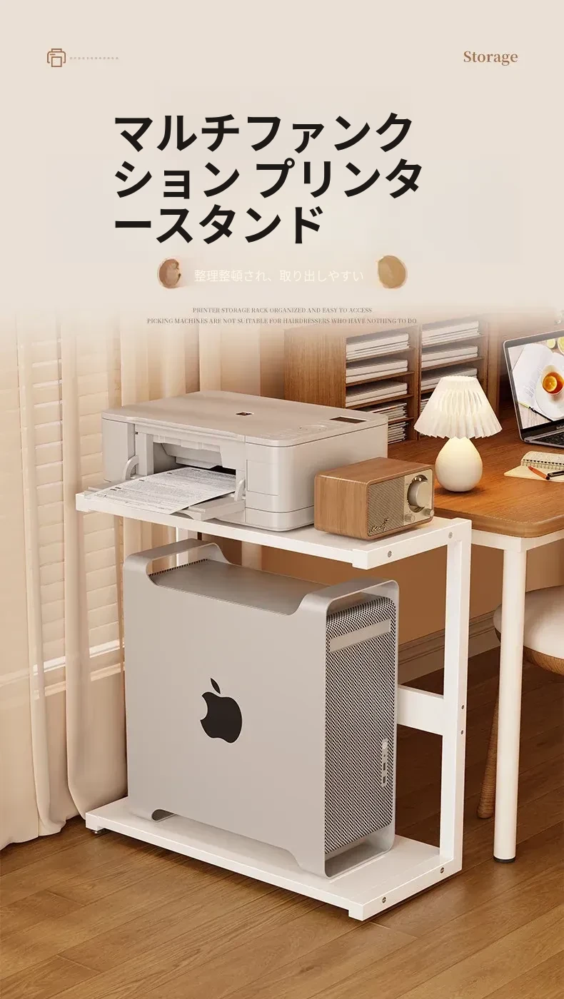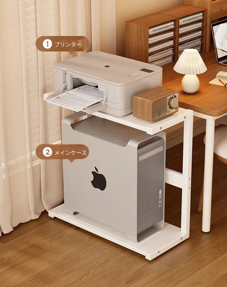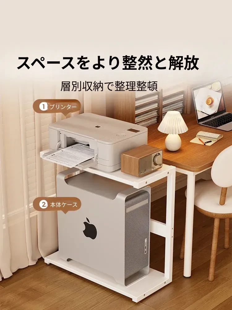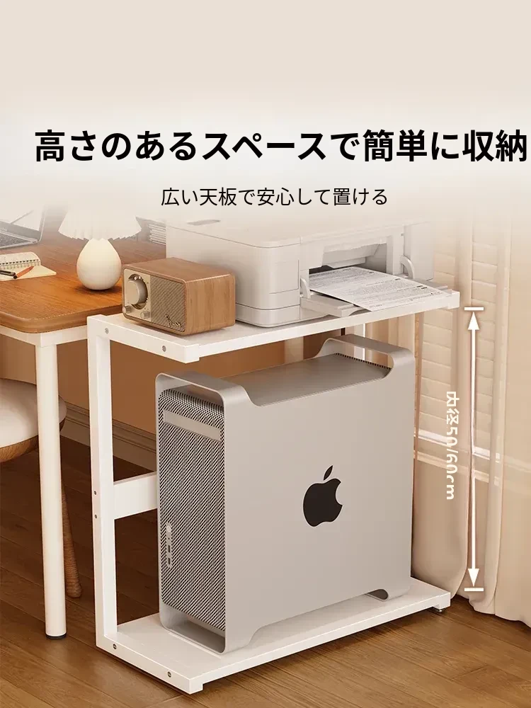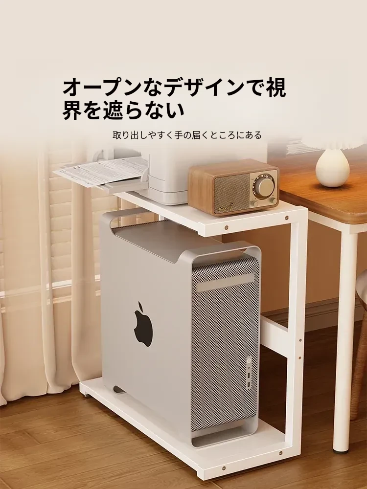 移動可能!デスクトップPC用キャビネット、オフィスや家庭に最適なキャスター付き収納ラック。整理整頓を実現し、作業スペースをスッキリ!