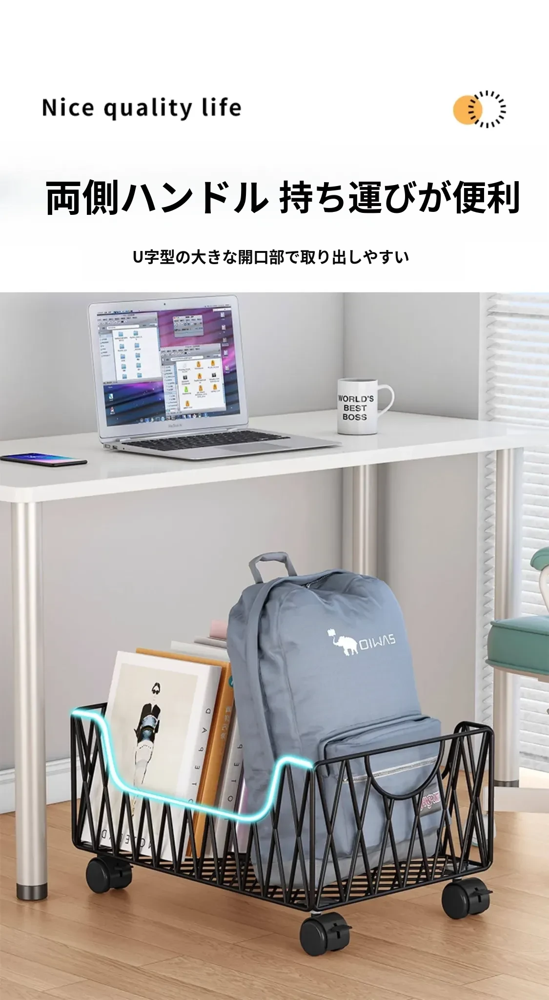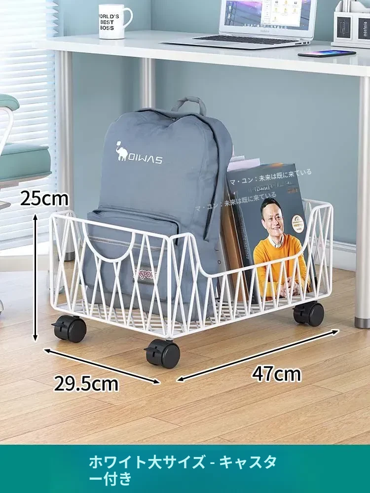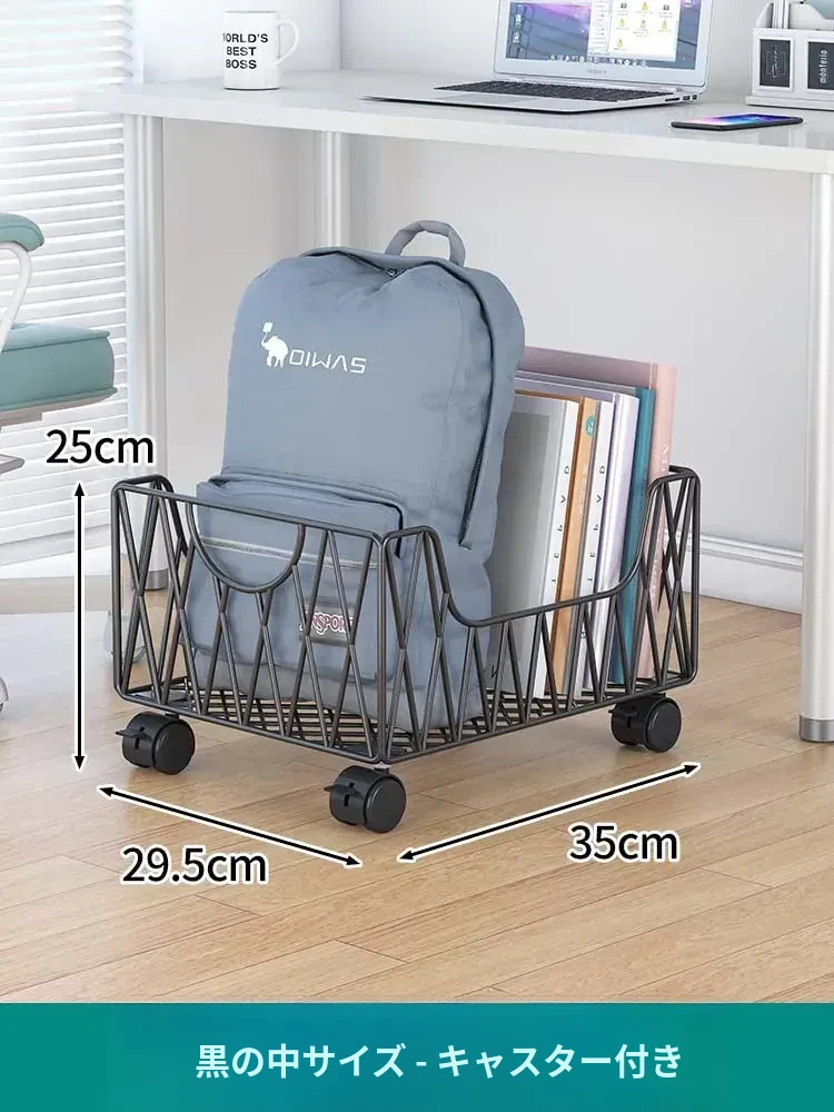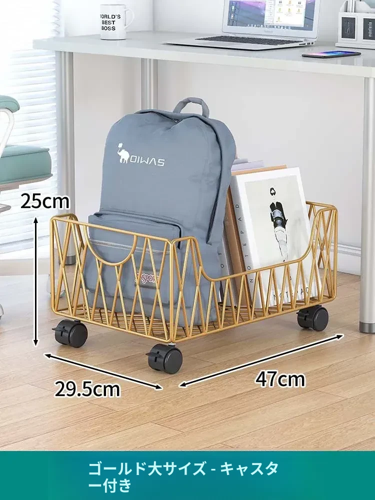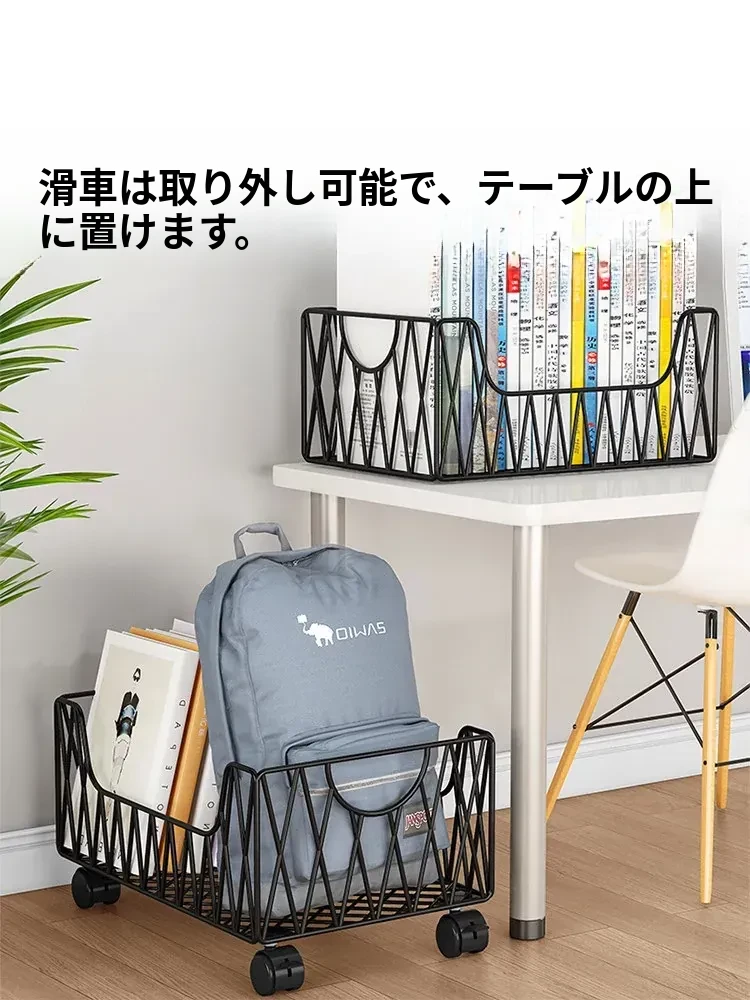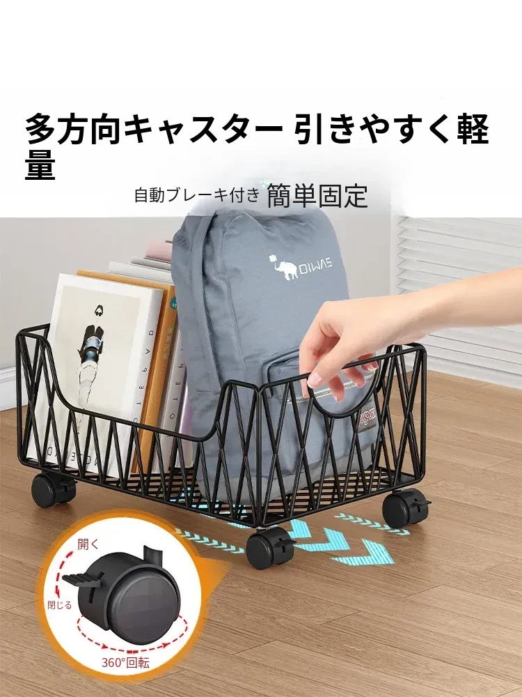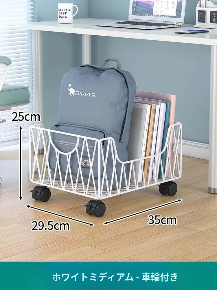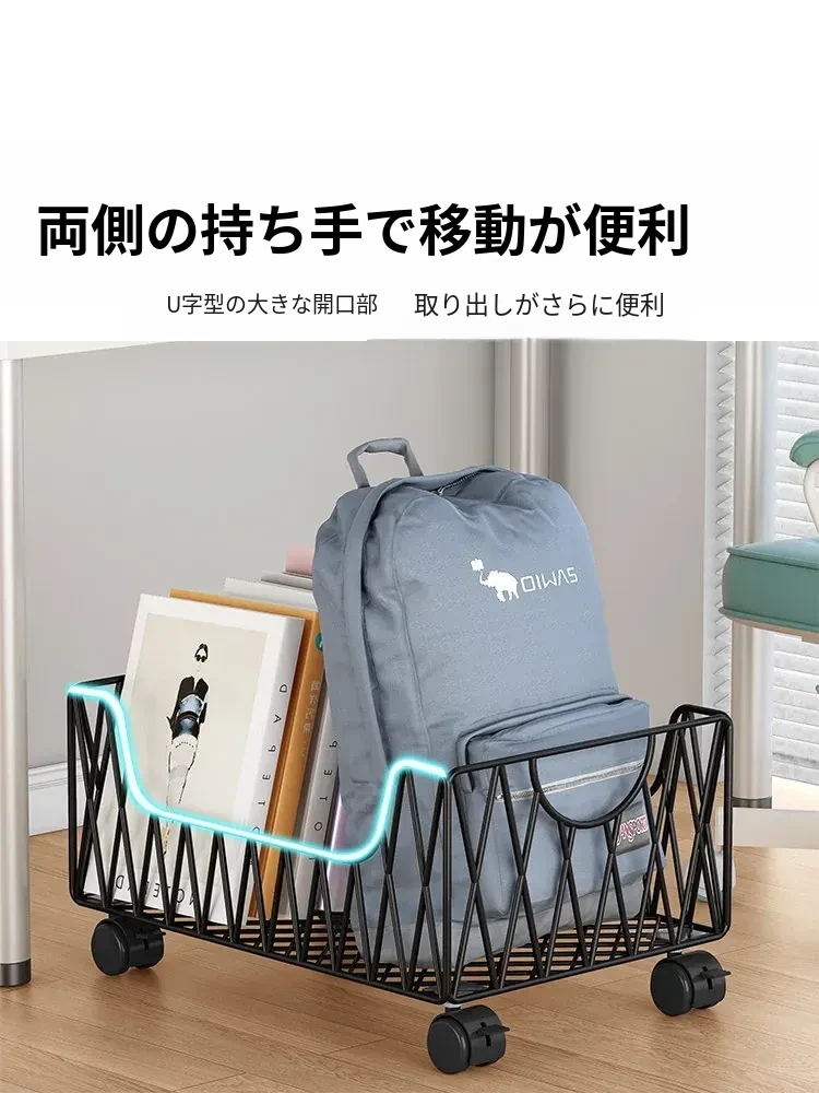 デスク周りスッキリ!移動可能なキャスター付き収納バスケット - オフィスの書籍やバッグを整理整頓する最適アイテム。デスク下にぴったり収まる便利な収納ボックス。