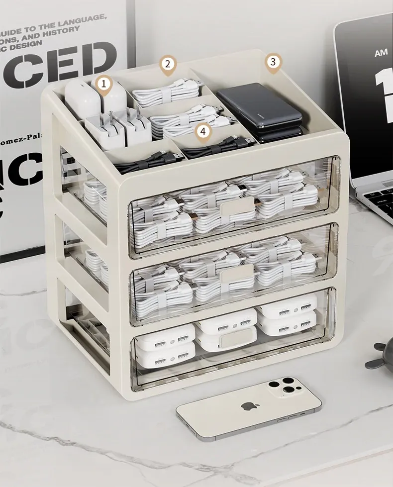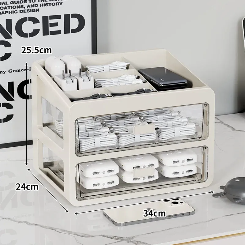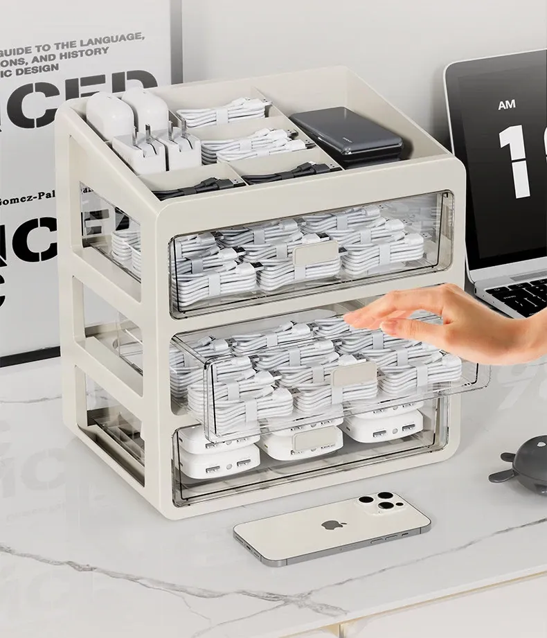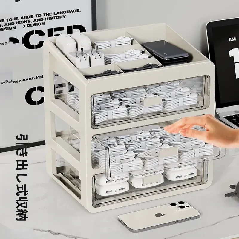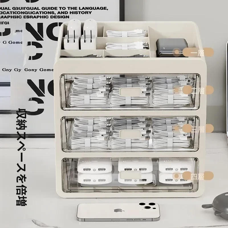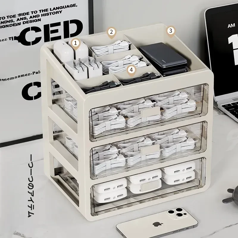 データケーブル収納ボックス 家庭用スマホ充電器・モバイルバッテリー 多機能大容量デスクハブ ケーブル整理ボックスで、快適な作業環境を実現!すっきりとしたデザインで、デスク周りを整頓しましょう。