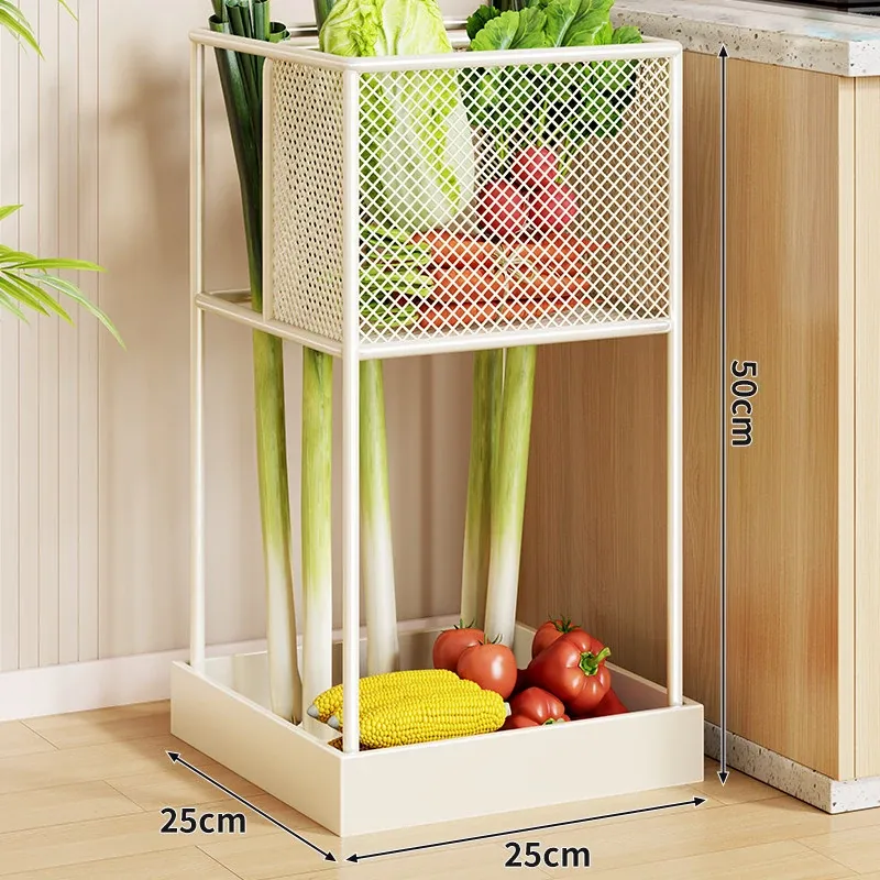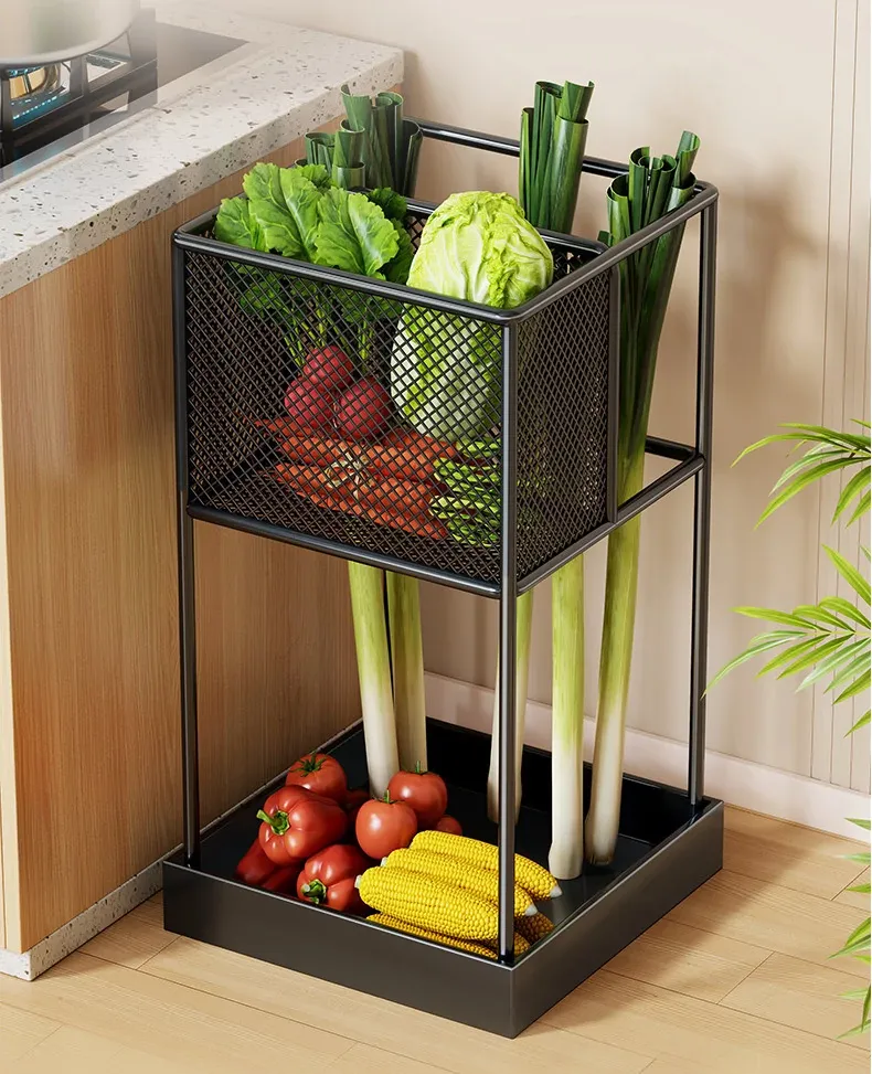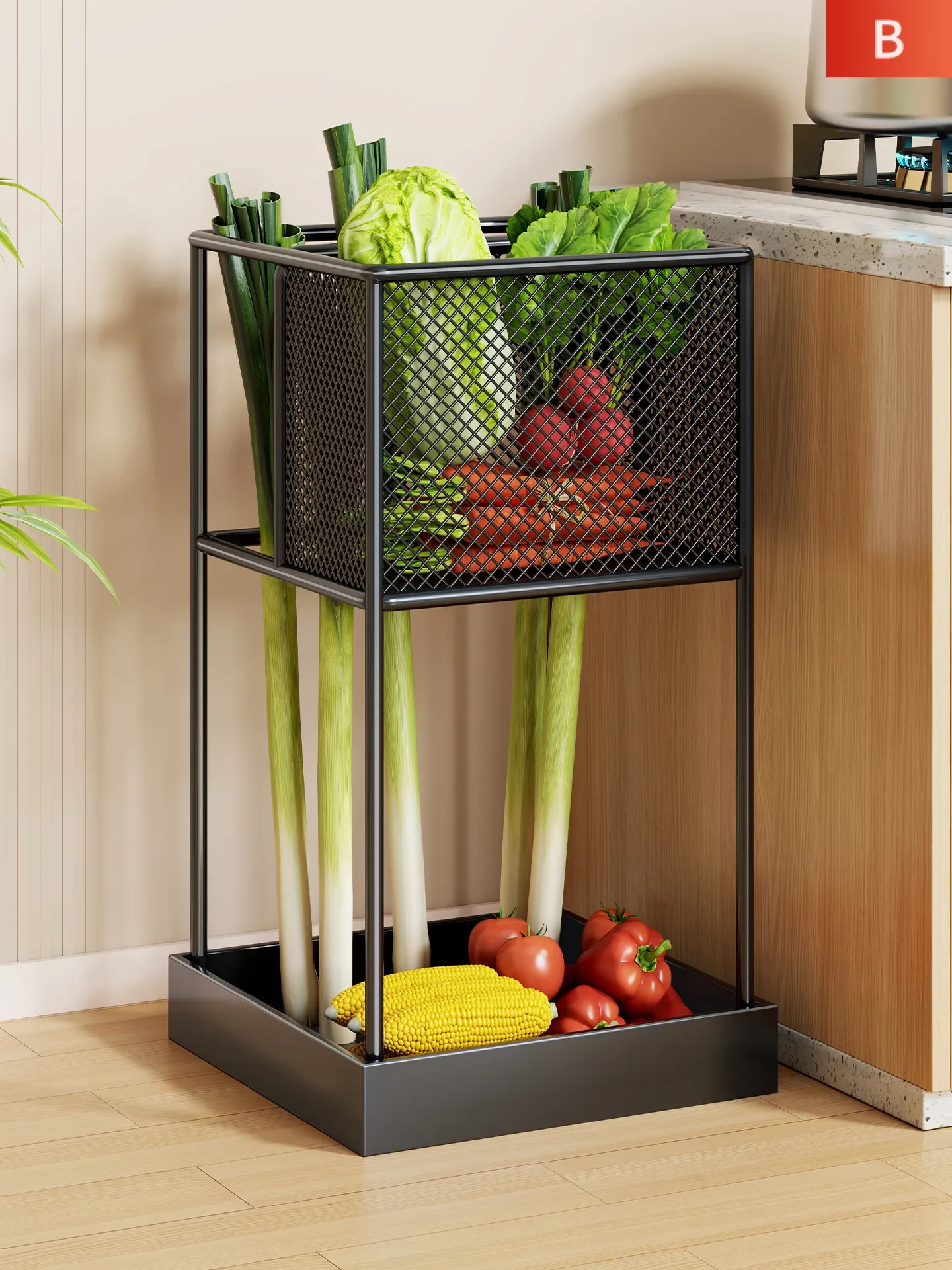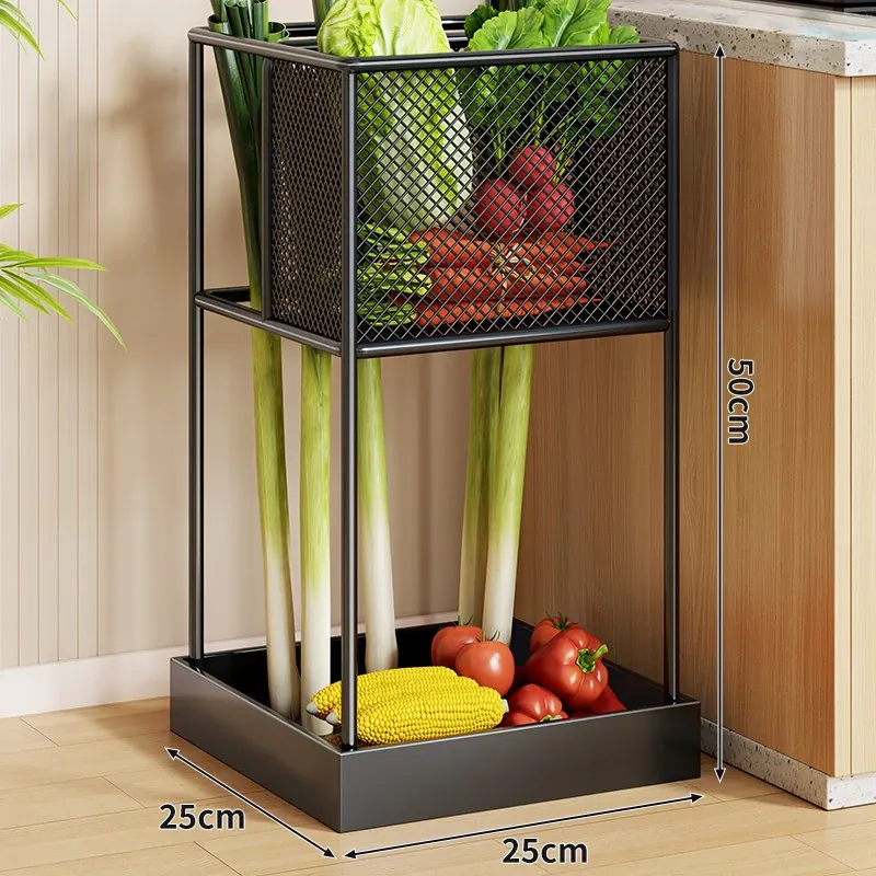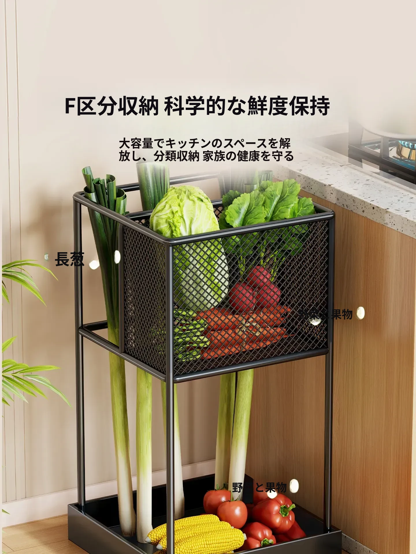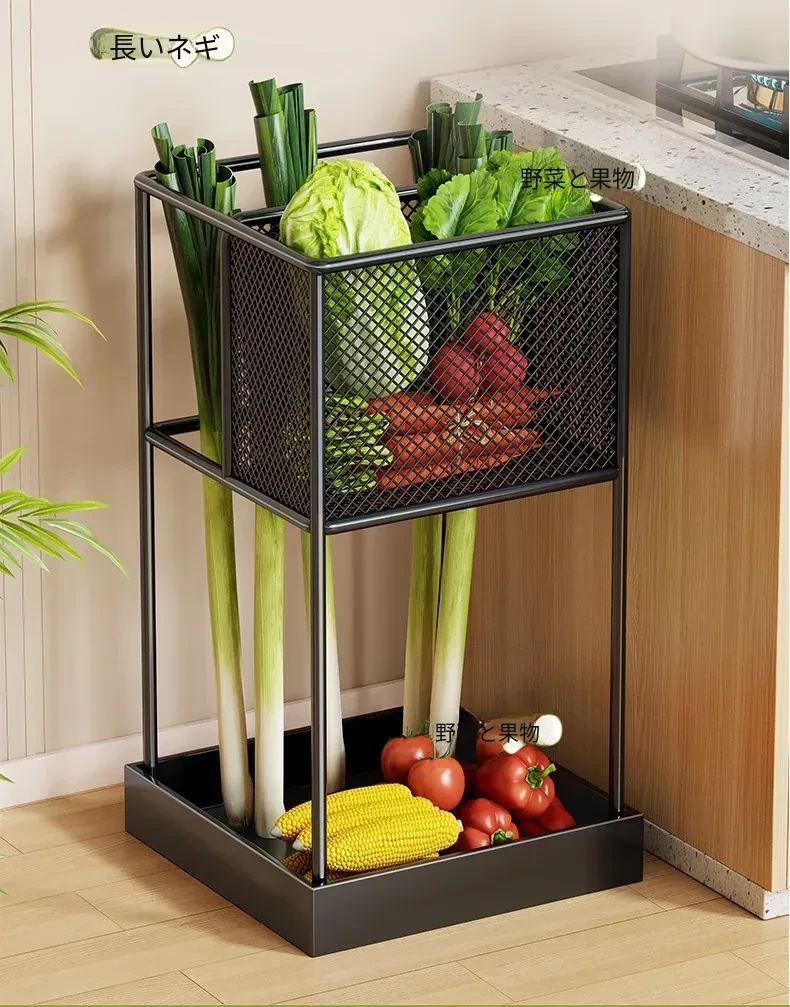 キッチンに最適!ネギ、ショウガ、ニンニクの収納ラック - 家庭用多機能フルーツスタンド、山芋や長ネギもスッキリ収納できる便利な野菜整理バスケット!