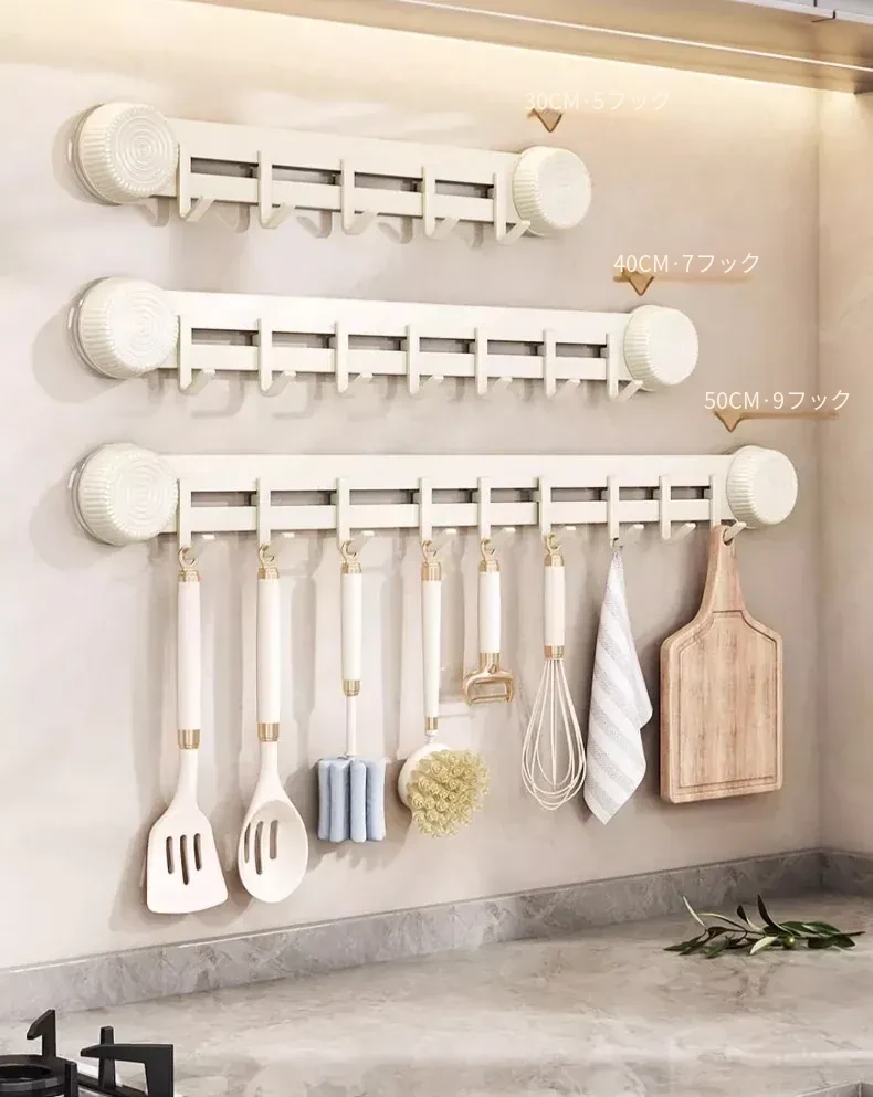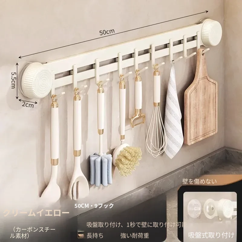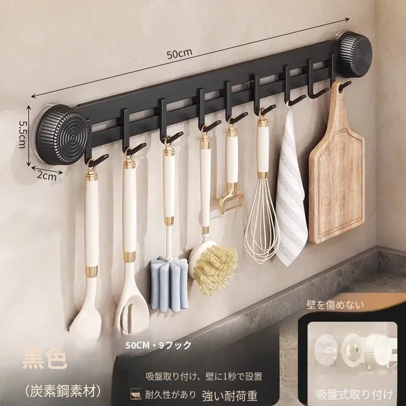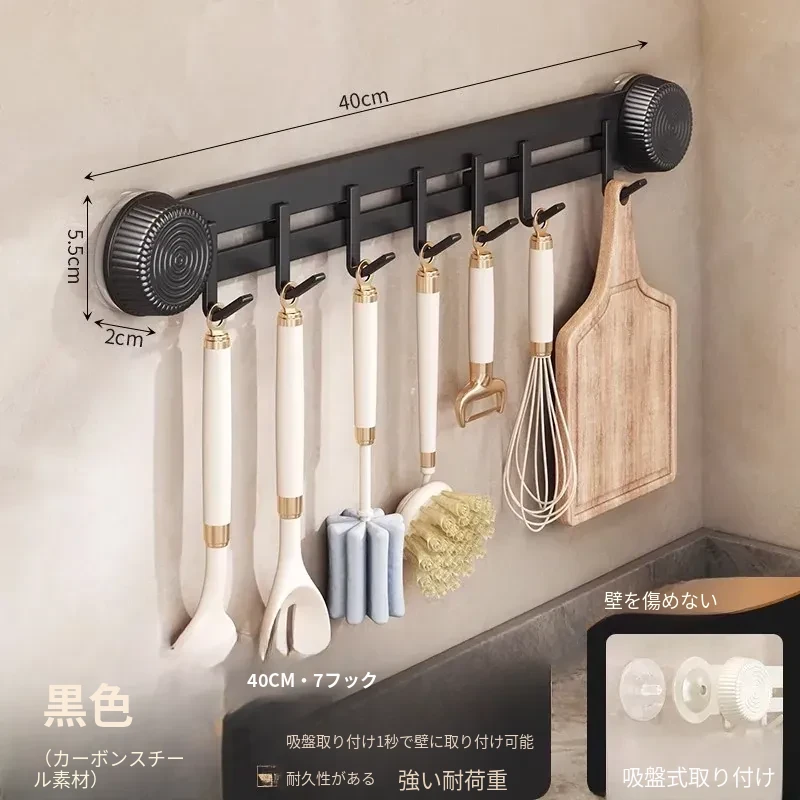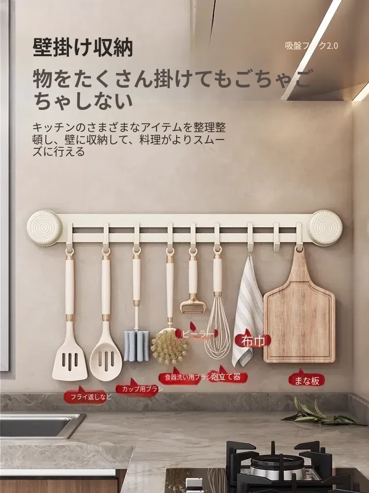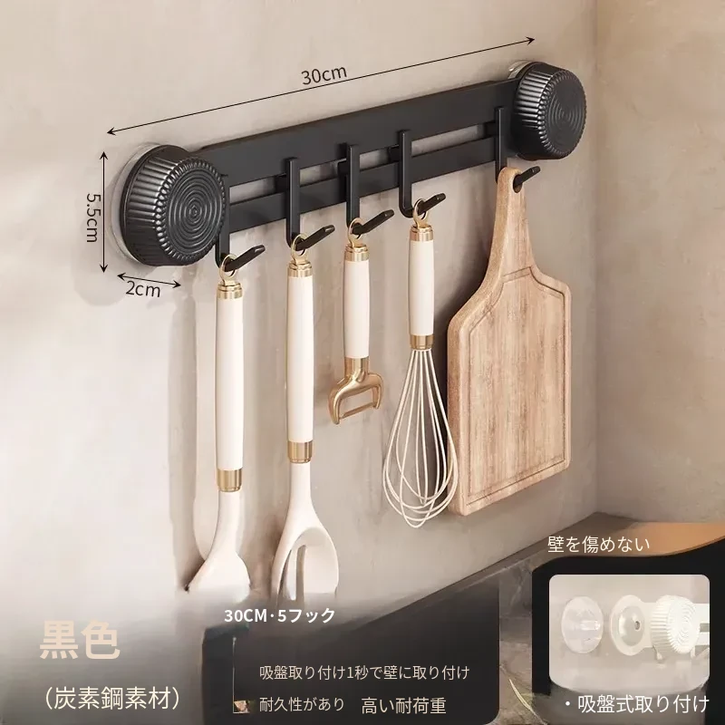 ドア裏収納!多機能壁掛けラック 吸盤式キッチンフック 釘なし簡単取り付け 鍋・スプーン・ヘラをスッキリ収納!あなたのキッチンをもっと便利に!