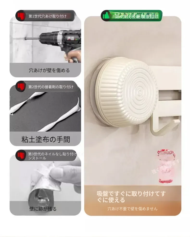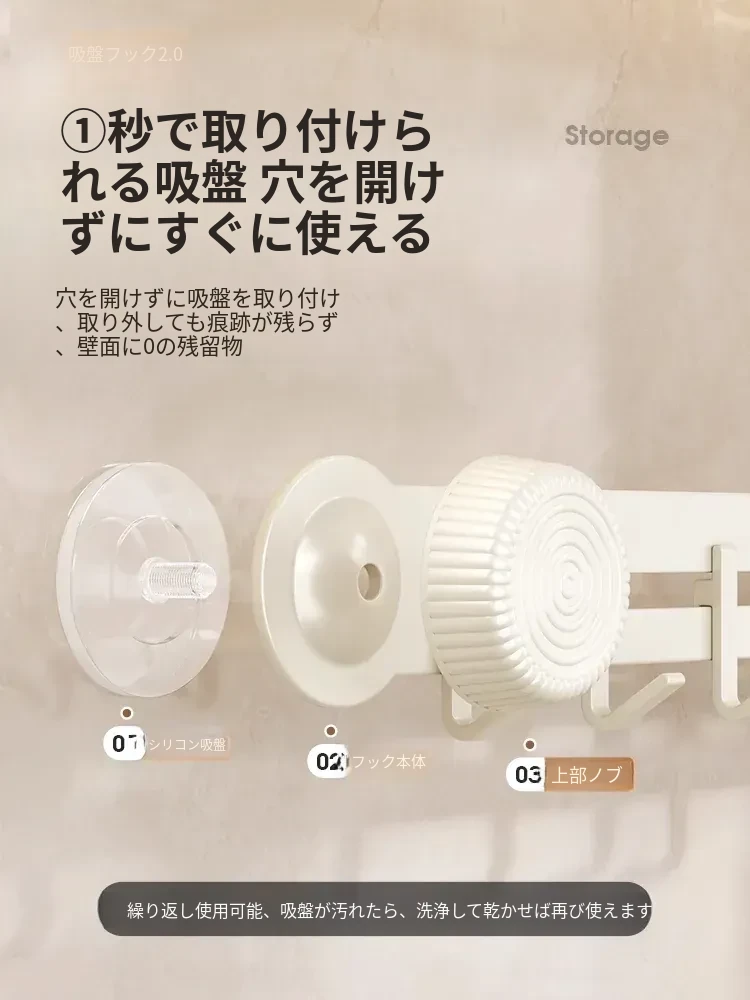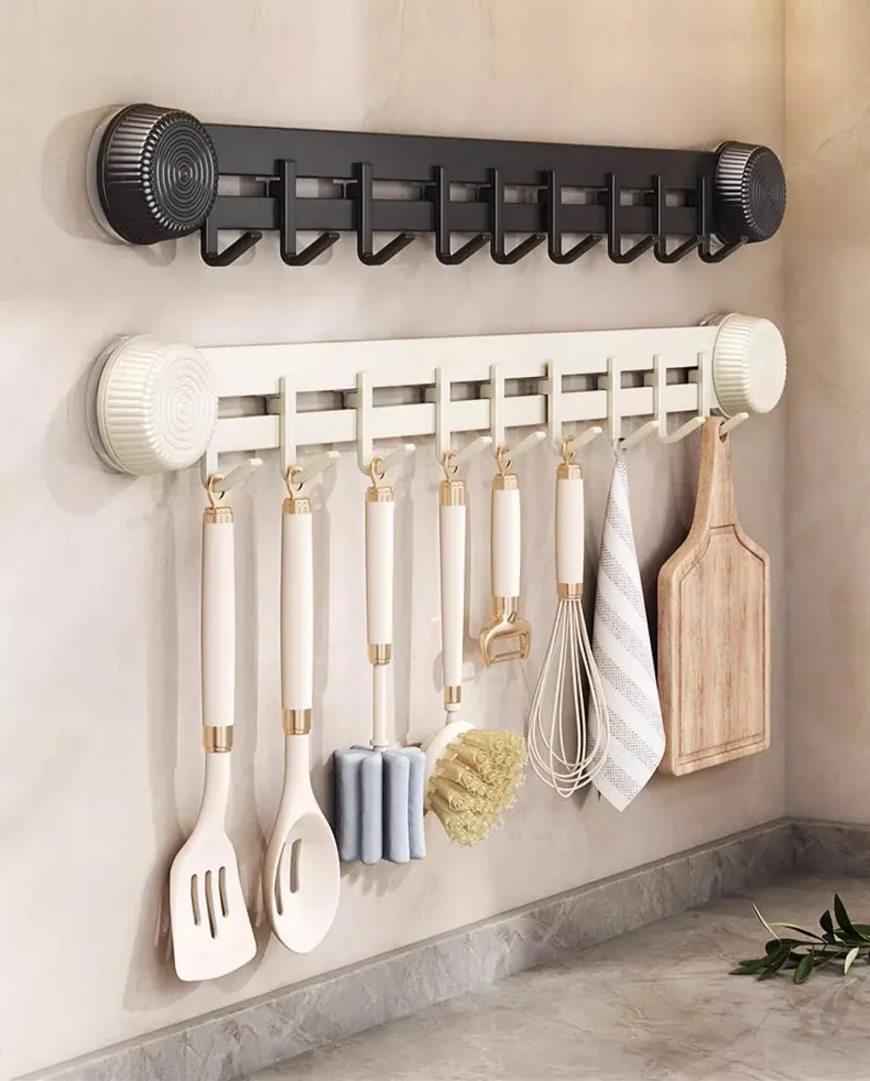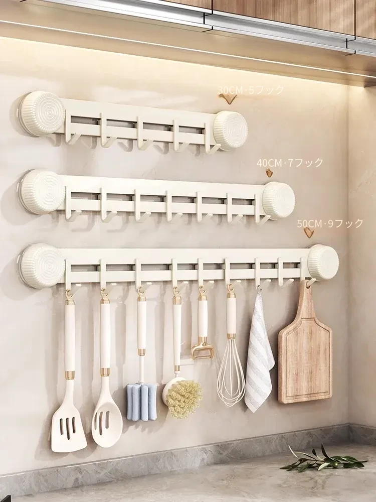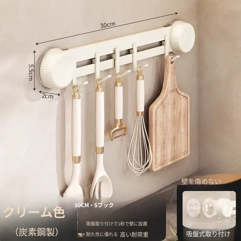 ドア裏収納!多機能壁掛けラック 吸盤式キッチンフック 釘なし簡単取り付け 鍋・スプーン・ヘラをスッキリ収納!あなたのキッチンをもっと便利に!