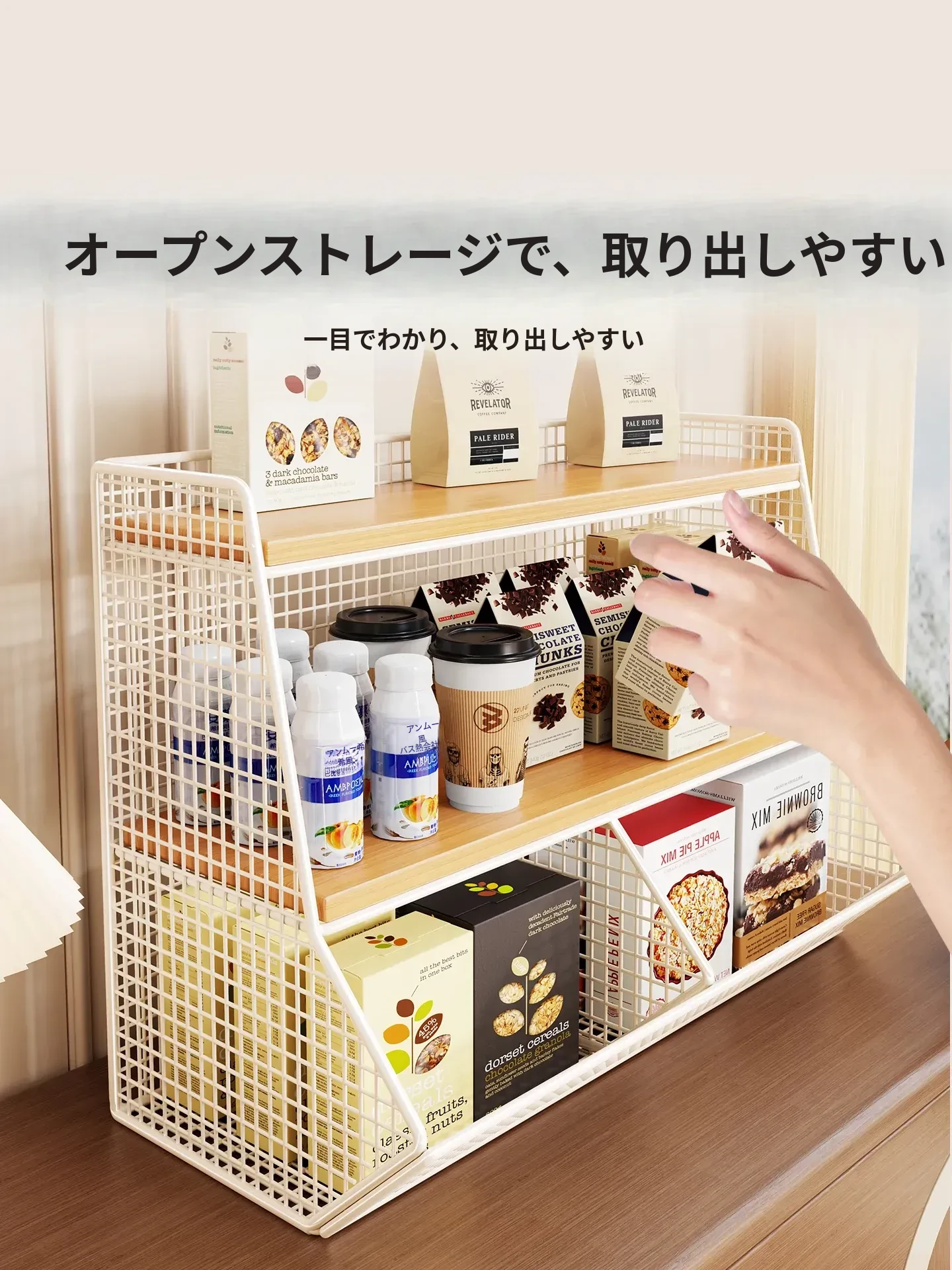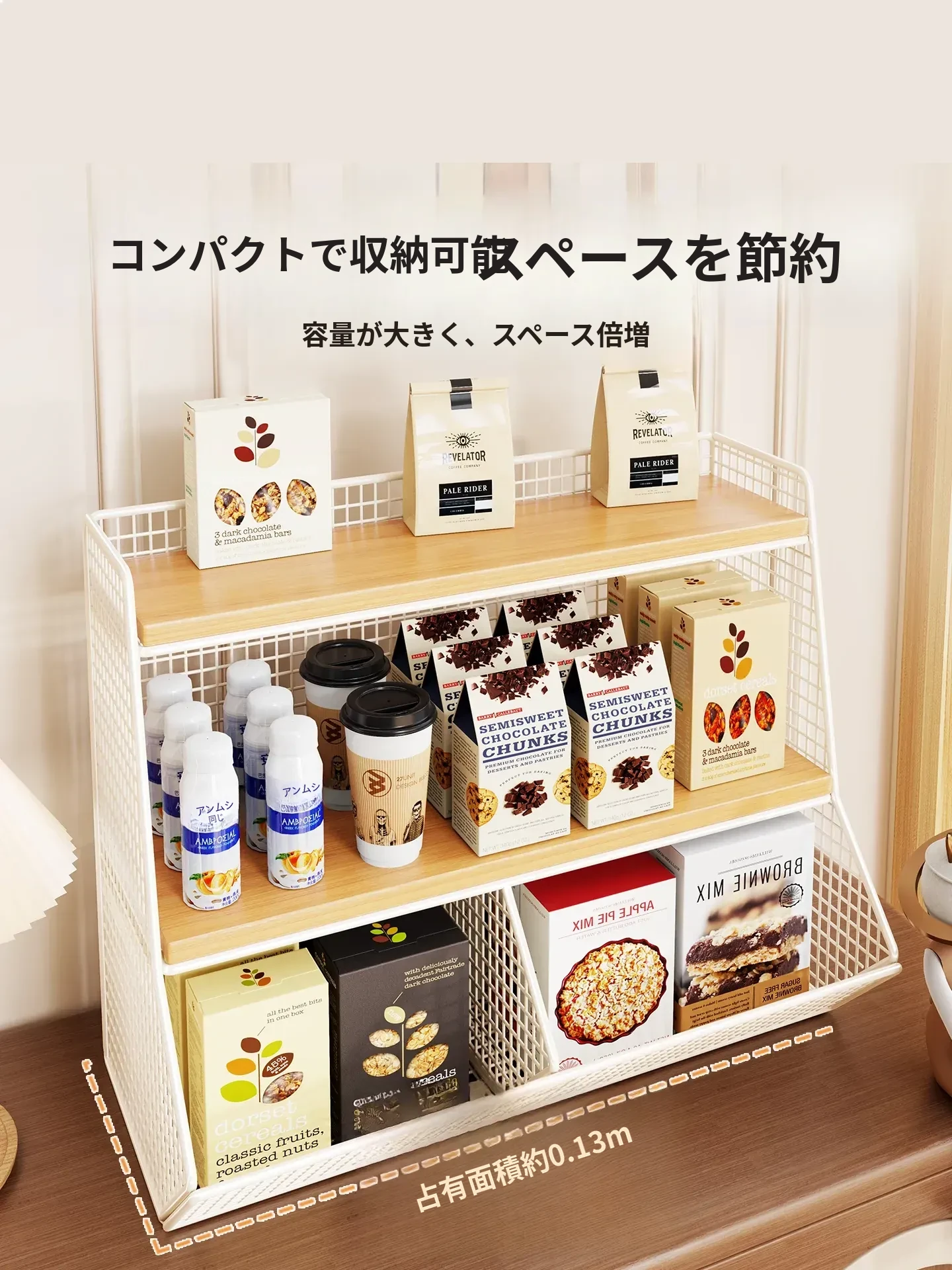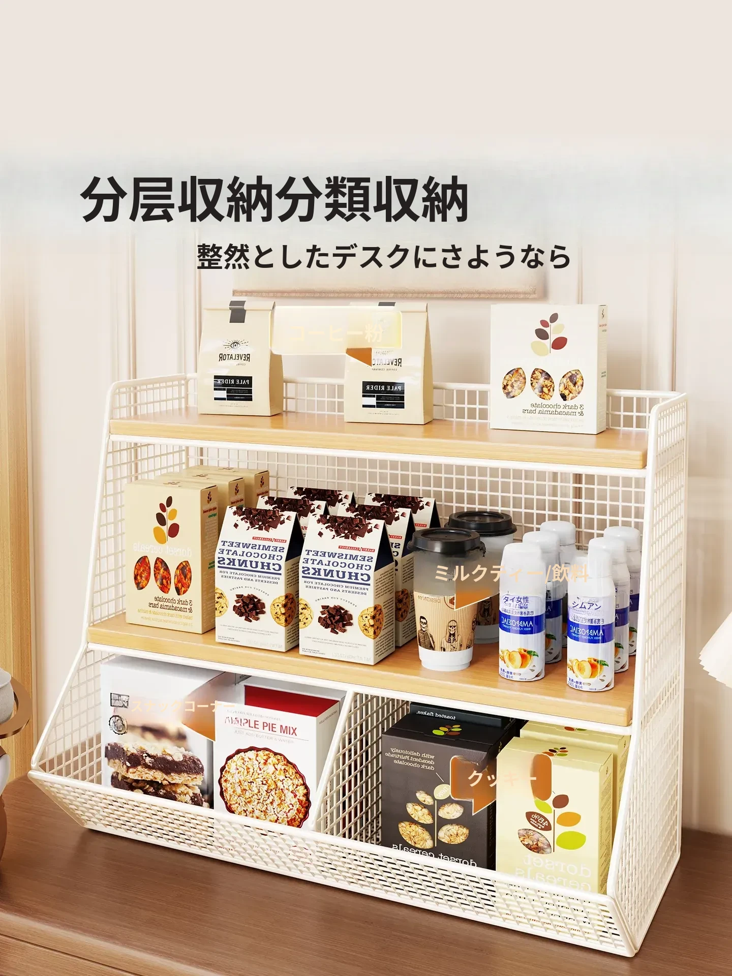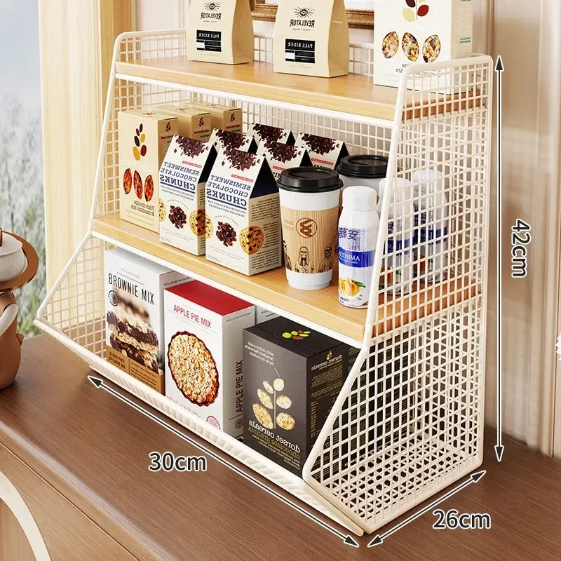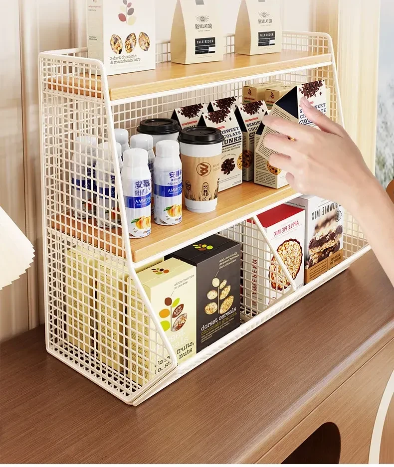 キッチン&ダイニングに最適!多層収納デスクオーガナイザー - スナック、ティーパック、マグカップをすっきり整理!省スペースでスタイリッシュなデザイン、あなたのテーブルを美しく整えます。
