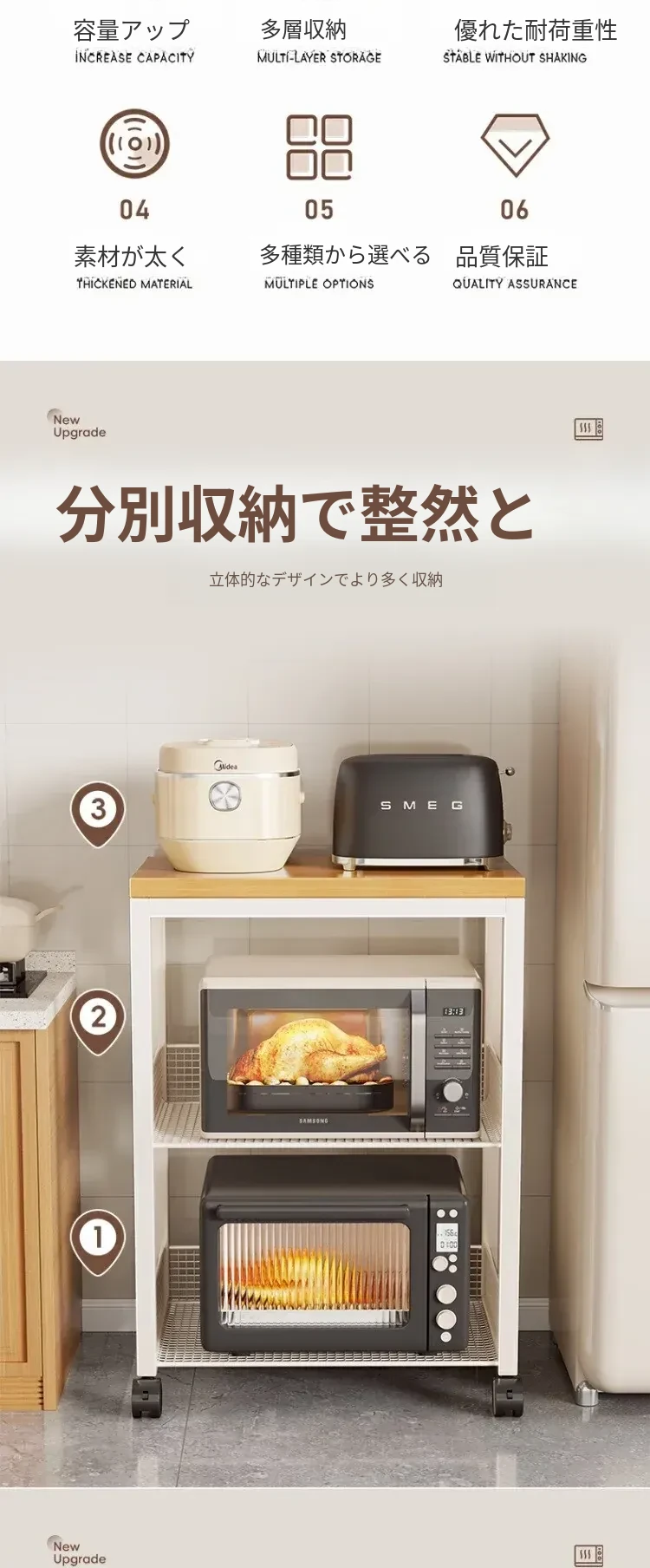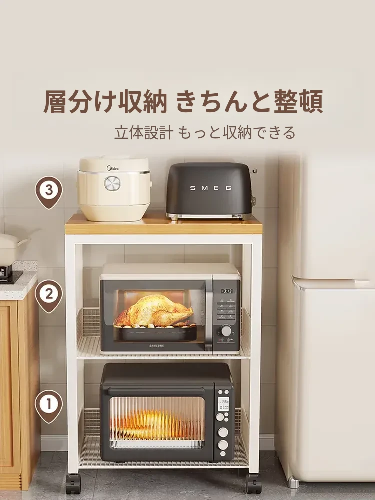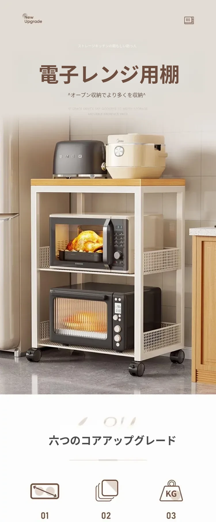 キッチン用多機能ラック - 簡単組み立ての多層スタンド、電子レンジや調味料も収納可能!家庭の収納スペースを有効活用するための理想的なアイテムです。