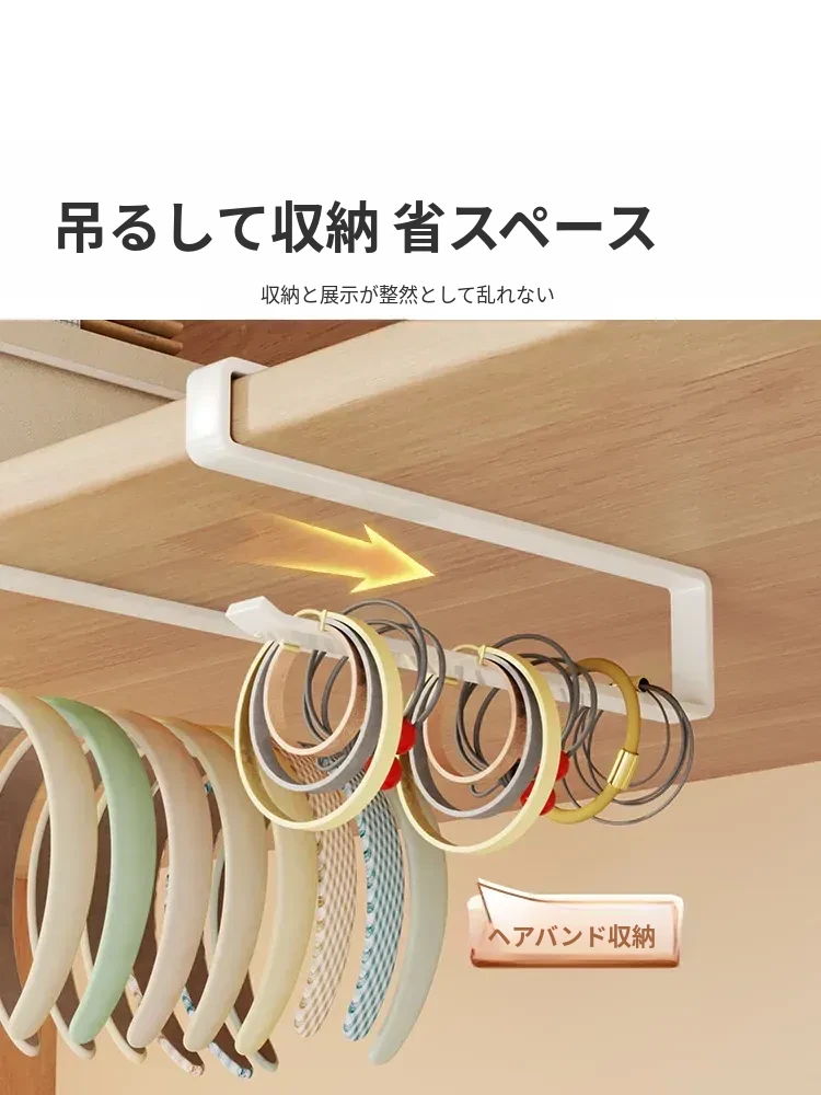 髪飾り収納ハンガー - ネックレスやヘアゴムもスッキリ整理!穴あけ不要で簡単設置、子供の髪飾りもすっきり収納できる便利アイテム!
