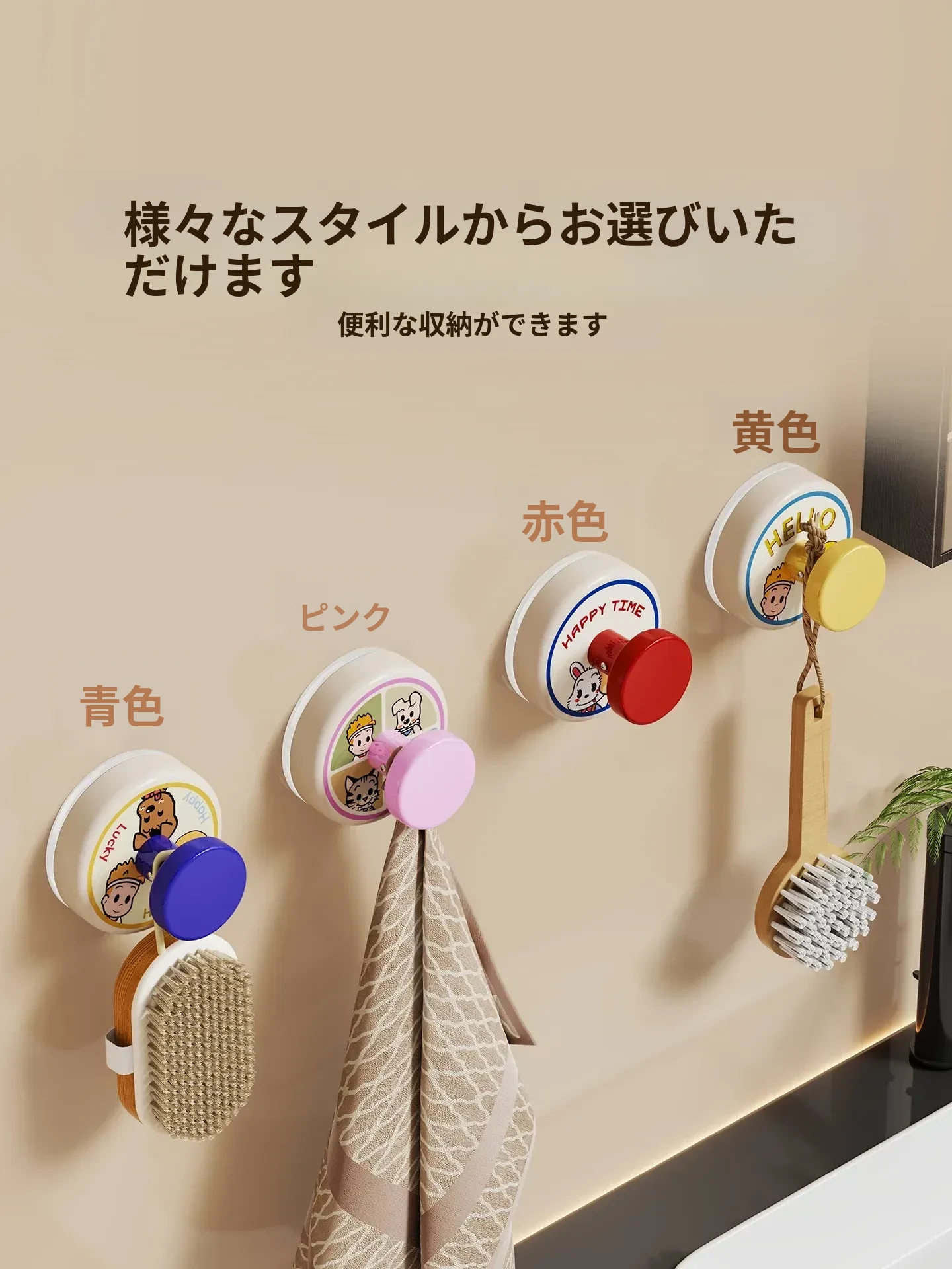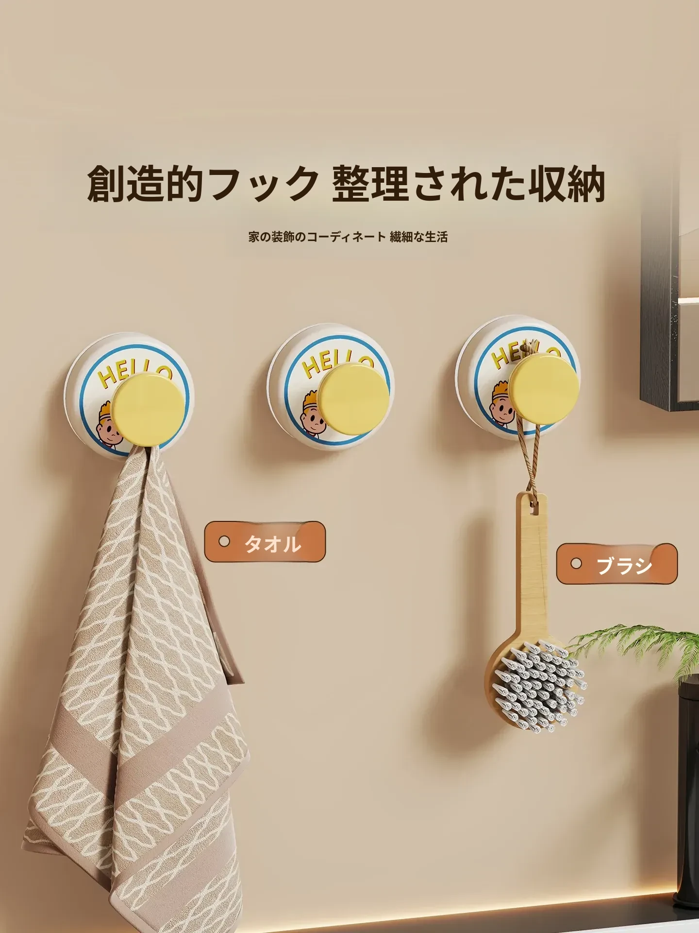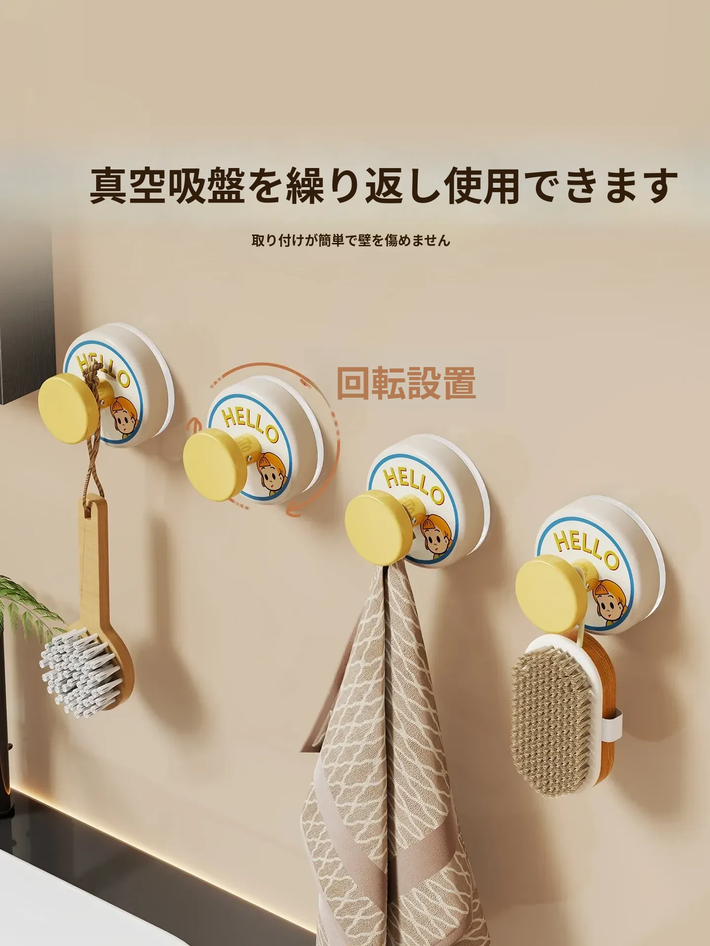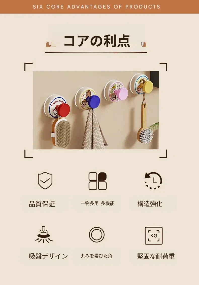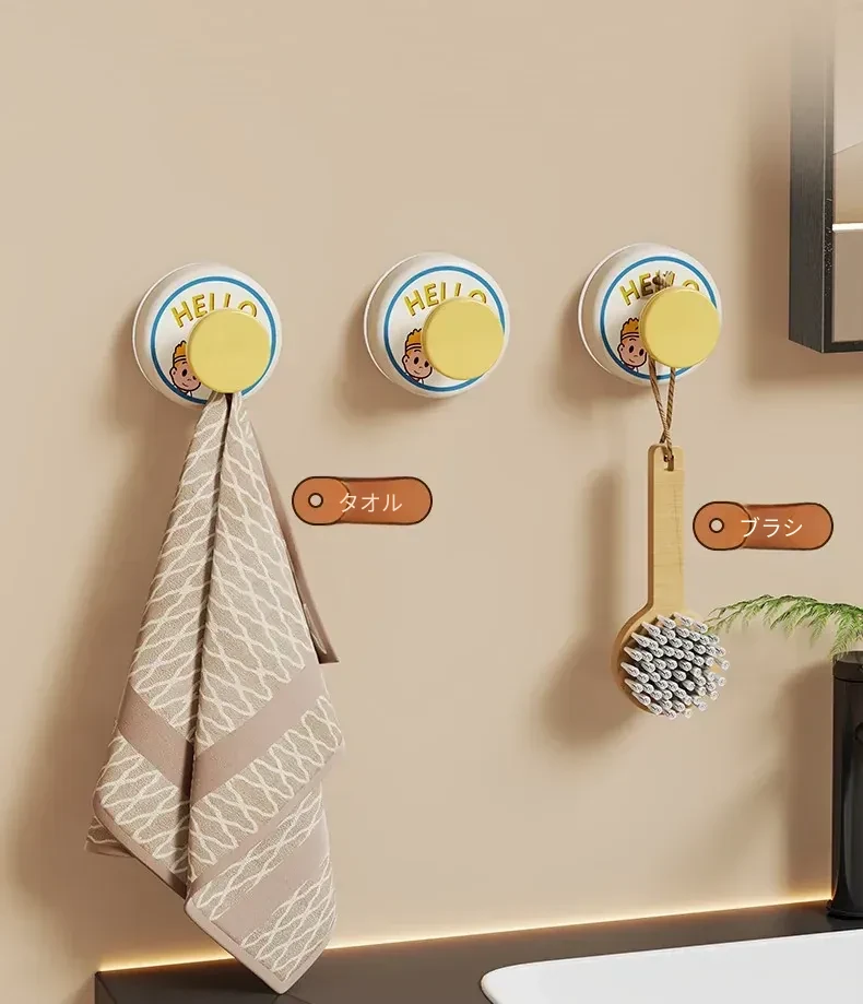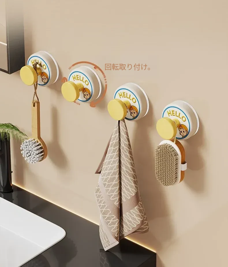 穴あけ不要!強力吸盤フック - バスルームやトイレの壁にぴったり!傷跡なしで簡単取り付け、しっかりとした耐荷重で安心の家用フック。おしゃれで機能的な収納を実現!