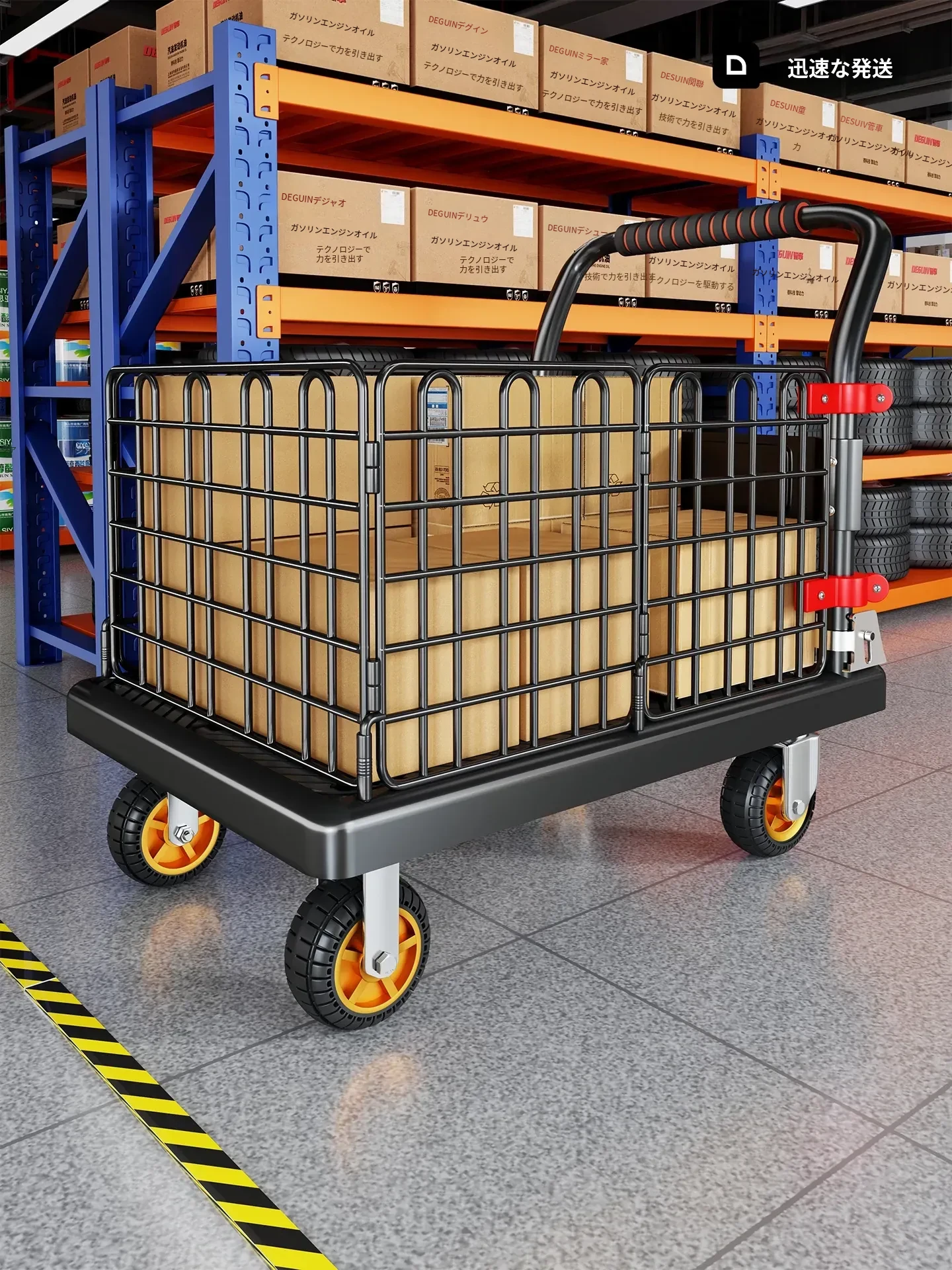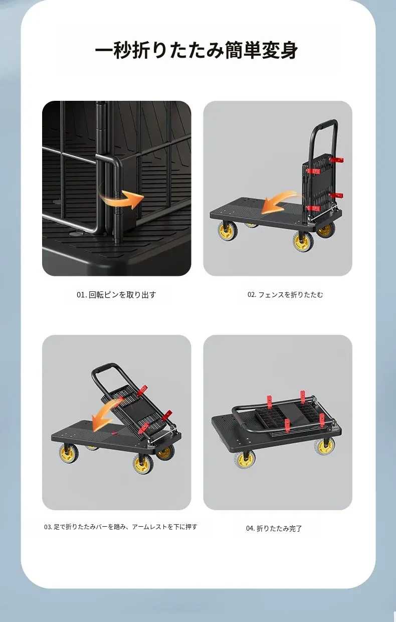 折りたたみ式静音小型トロリー - 家庭用・倉庫用の便利な運搬車!持ち運びラクラク、宅配や荷物運びに最適!