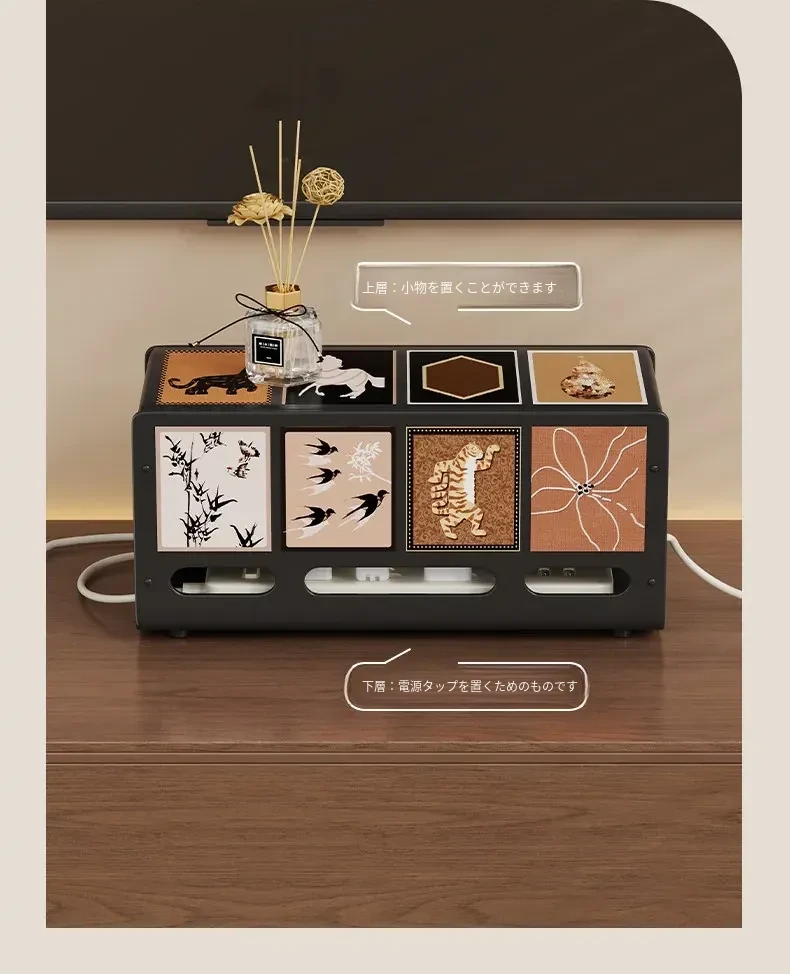 デスク周りをスッキリ整理!コンセントボックス付き電源タップ収納ケース - ケーブルや充電器をスマートにまとめる便利アイテム。あなたの作業スペースを快適に!