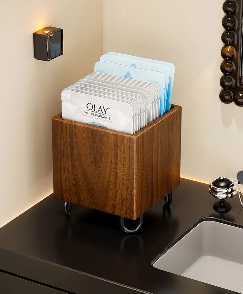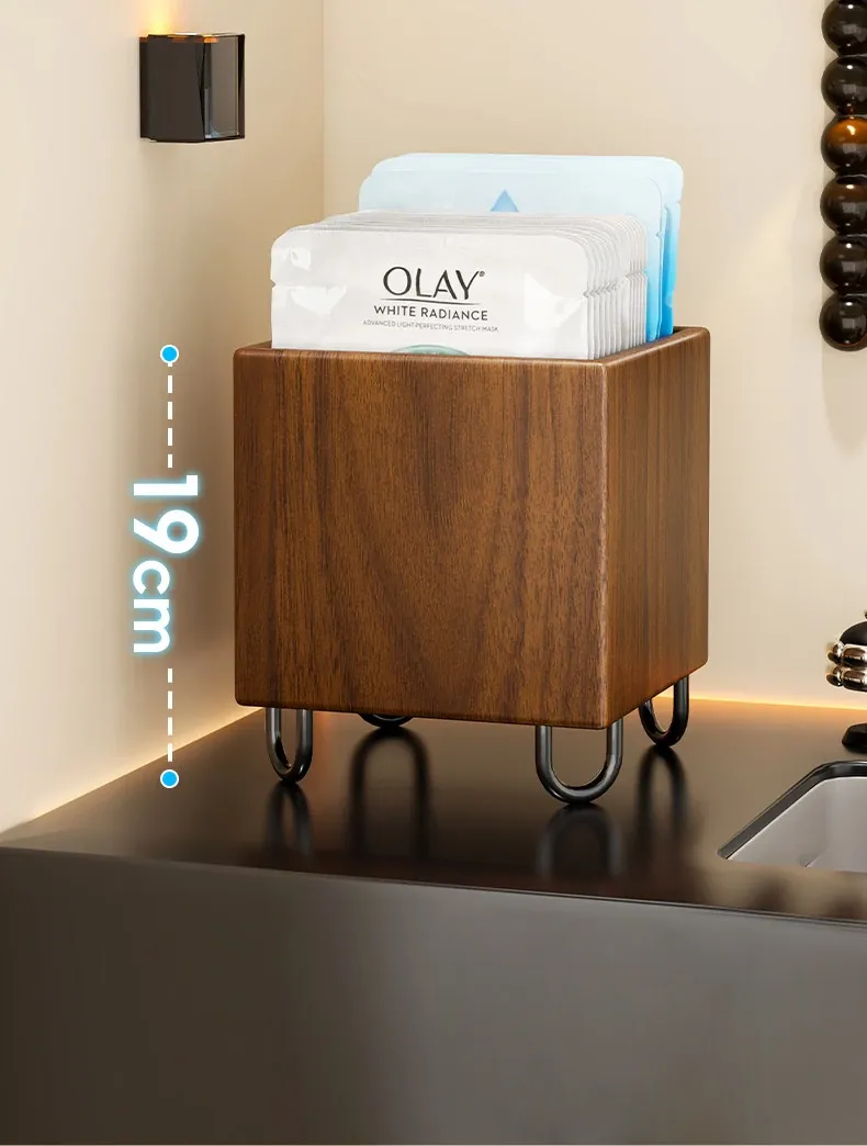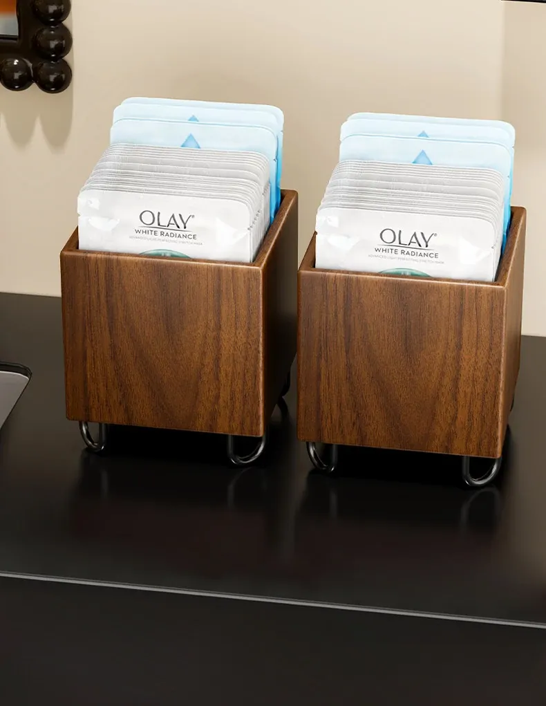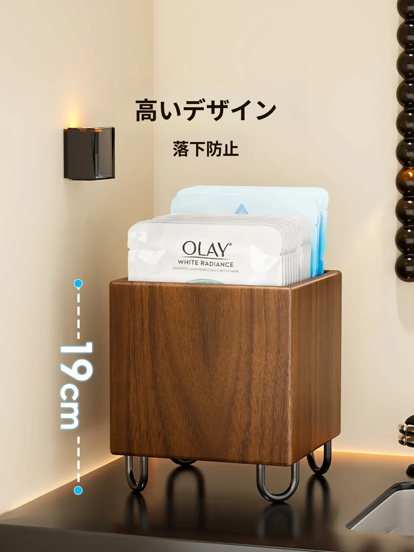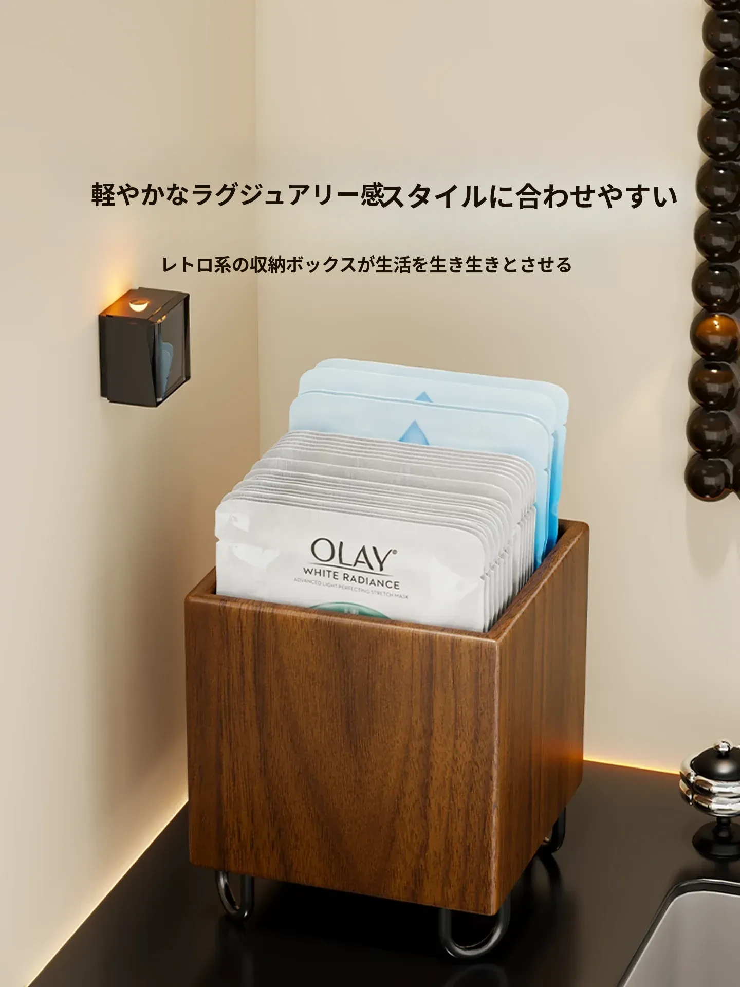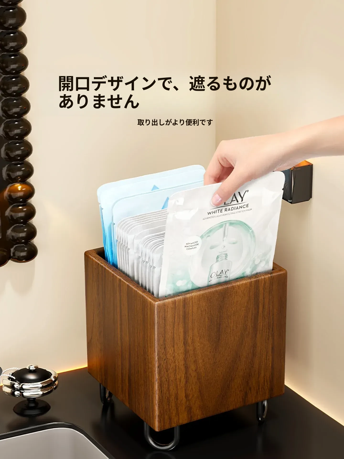 高級天然木製フェイスマスク収納ボックス | オフィスや寮に最適な大容量化粧品・小物整理ラック | スキンケアアイテムもすっきり整理!