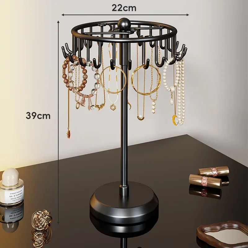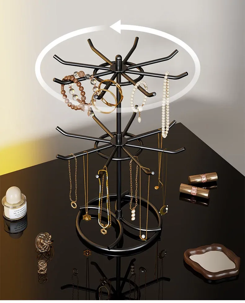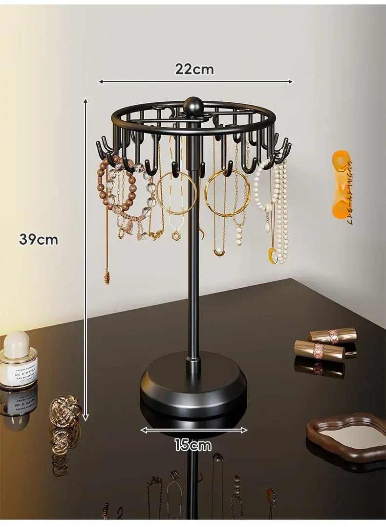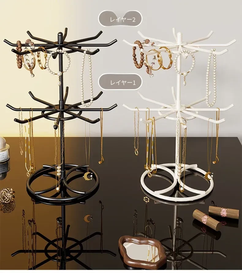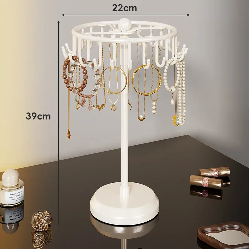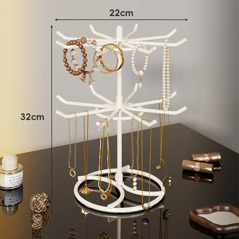 回転式ネックレス収納スタンド - デスクトップ用のブレスレット・イヤリング・小物ディスプレイラック、スマホチェーンも掛けられるおしゃれな整理整頓アイテム!