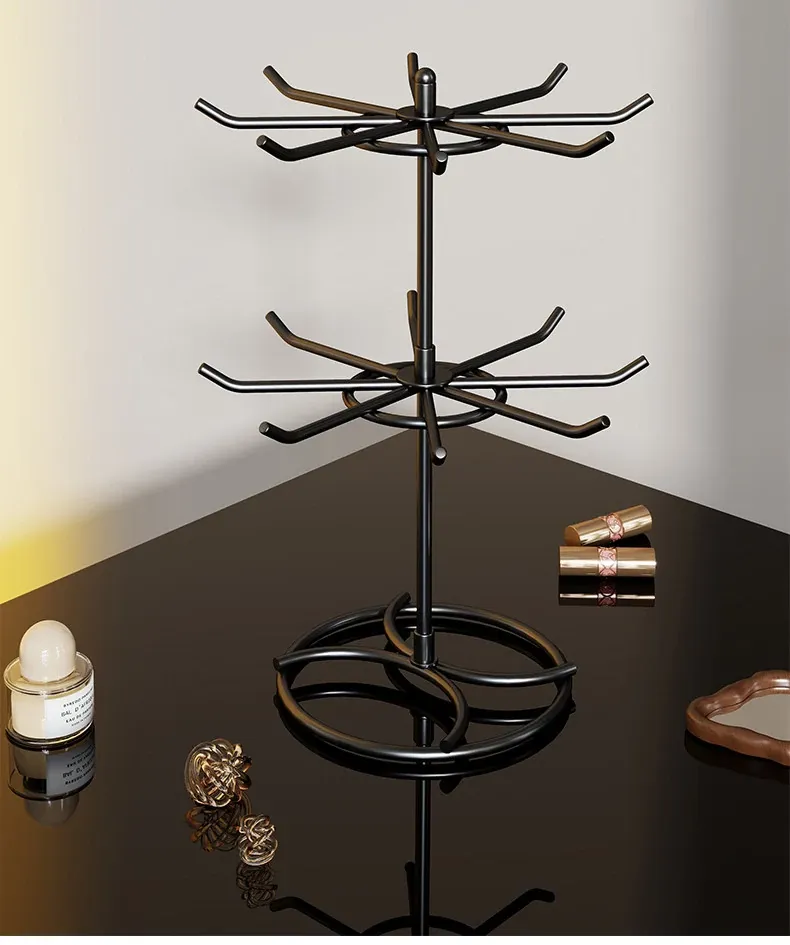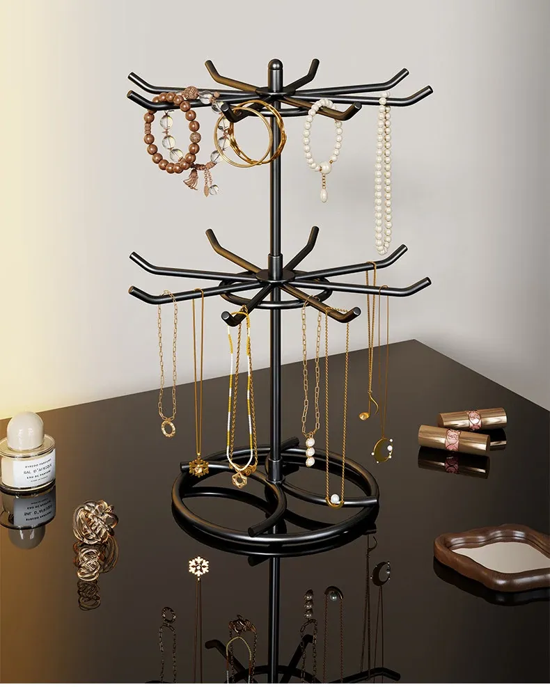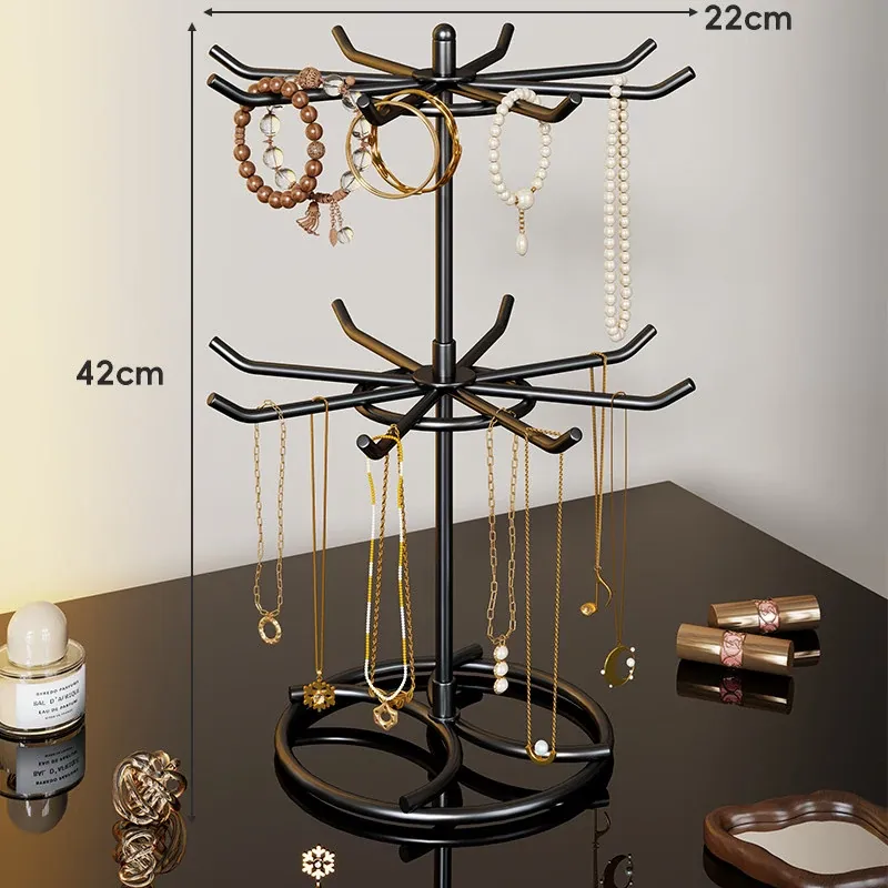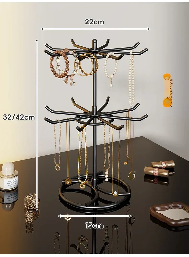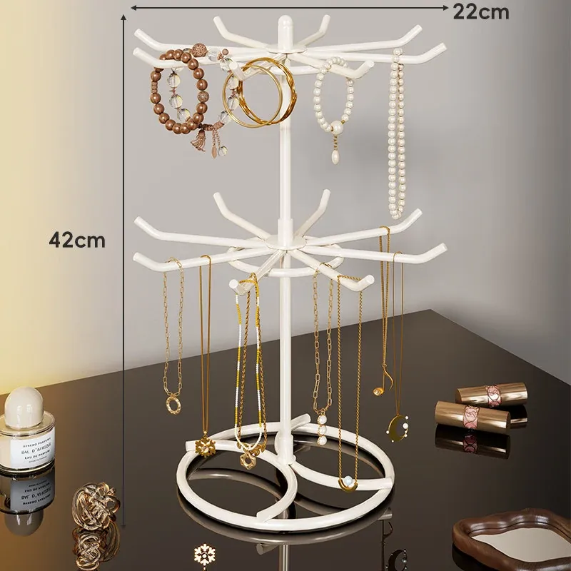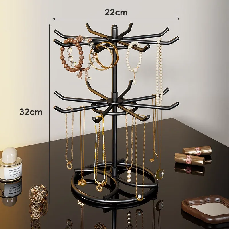 回転式ネックレス収納スタンド - デスクトップ用のブレスレット・イヤリング・小物ディスプレイラック、スマホチェーンも掛けられるおしゃれな整理整頓アイテム!