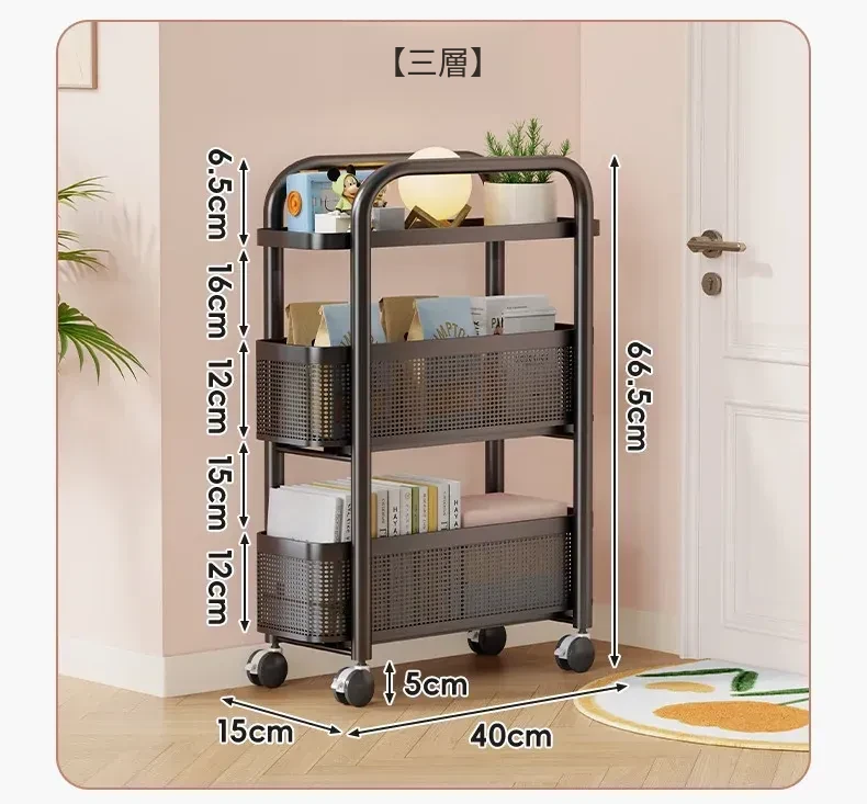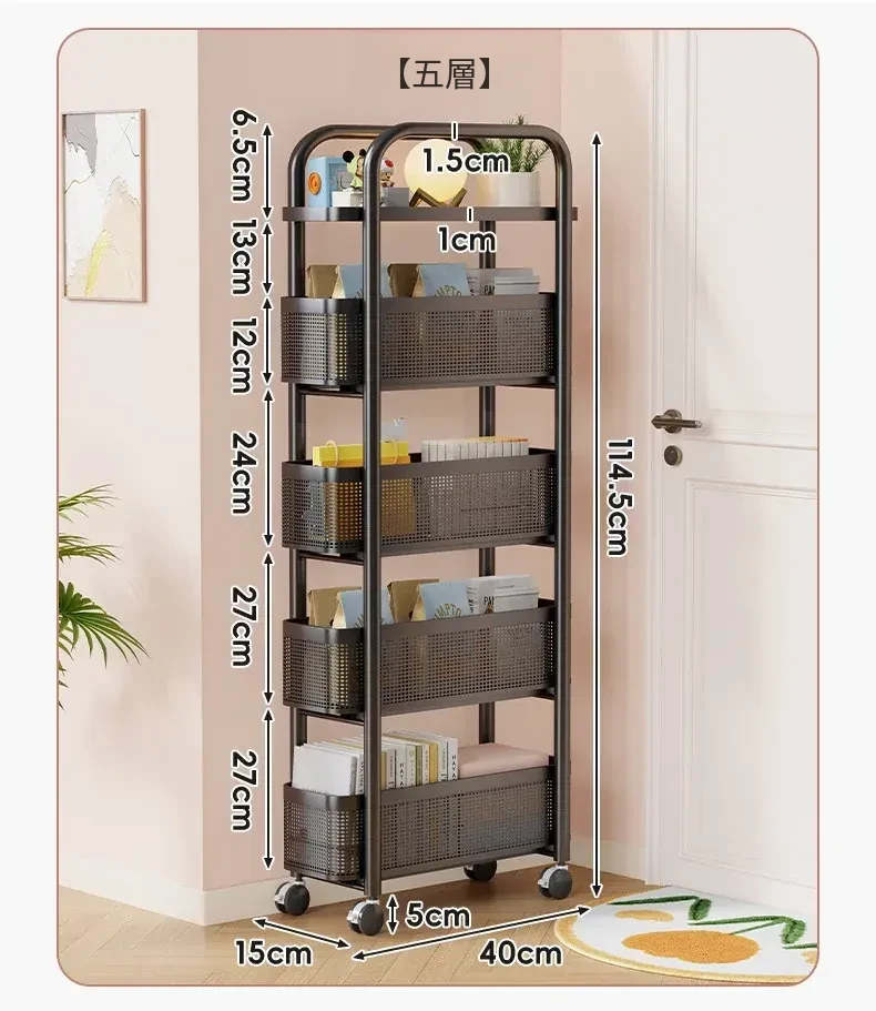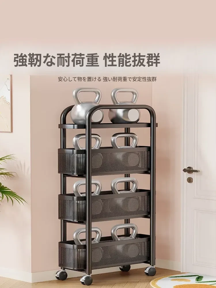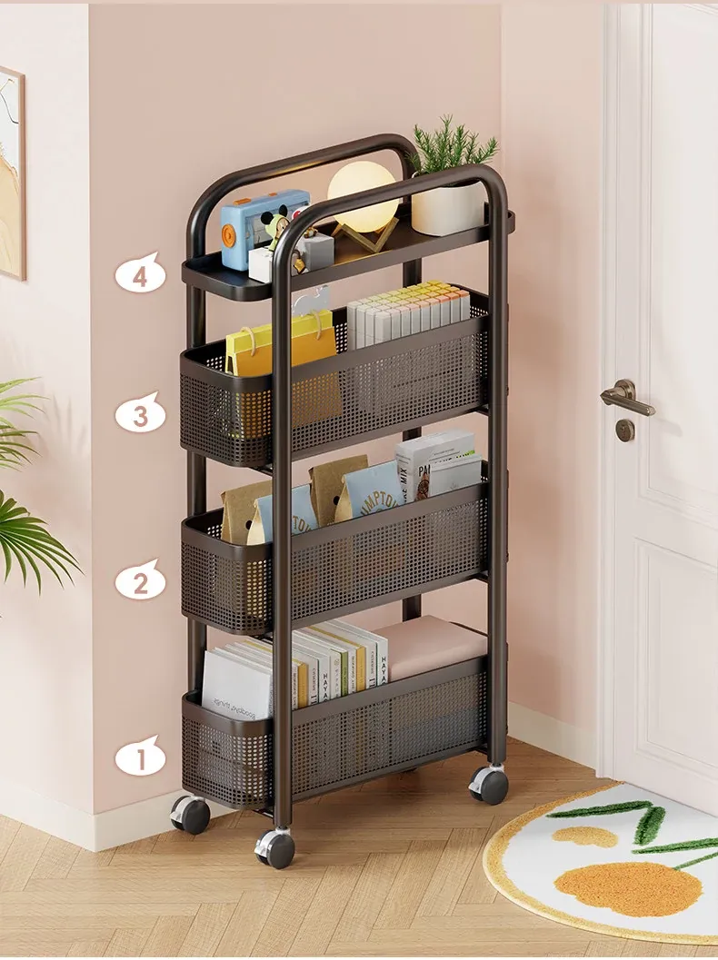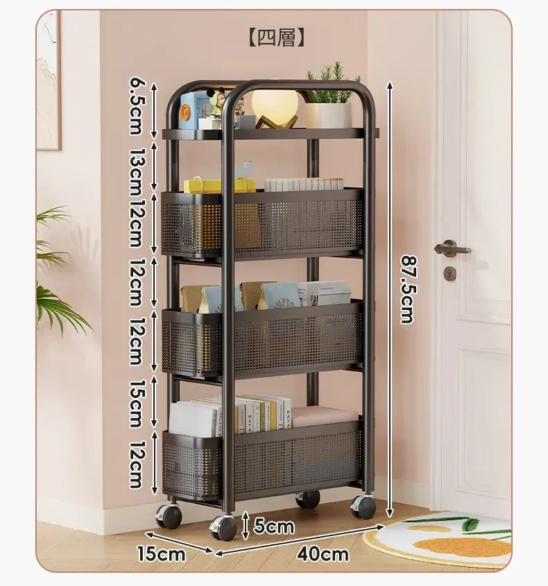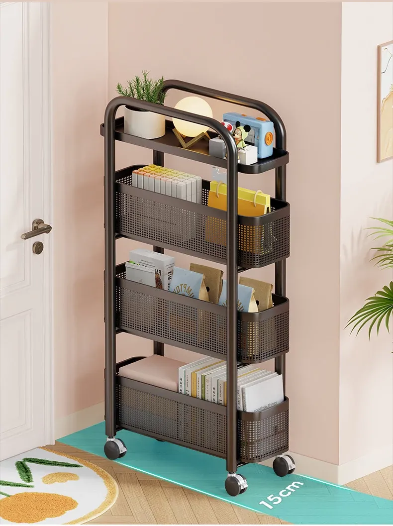 隙間収納ラック - 寝室やキッチン、洗面所のドアの後ろにぴったりフィット!スリムなデザインで引き出し式のカゴ付き、スナックや小物をスッキリ収納!省スペースでおしゃれな小推車です。
