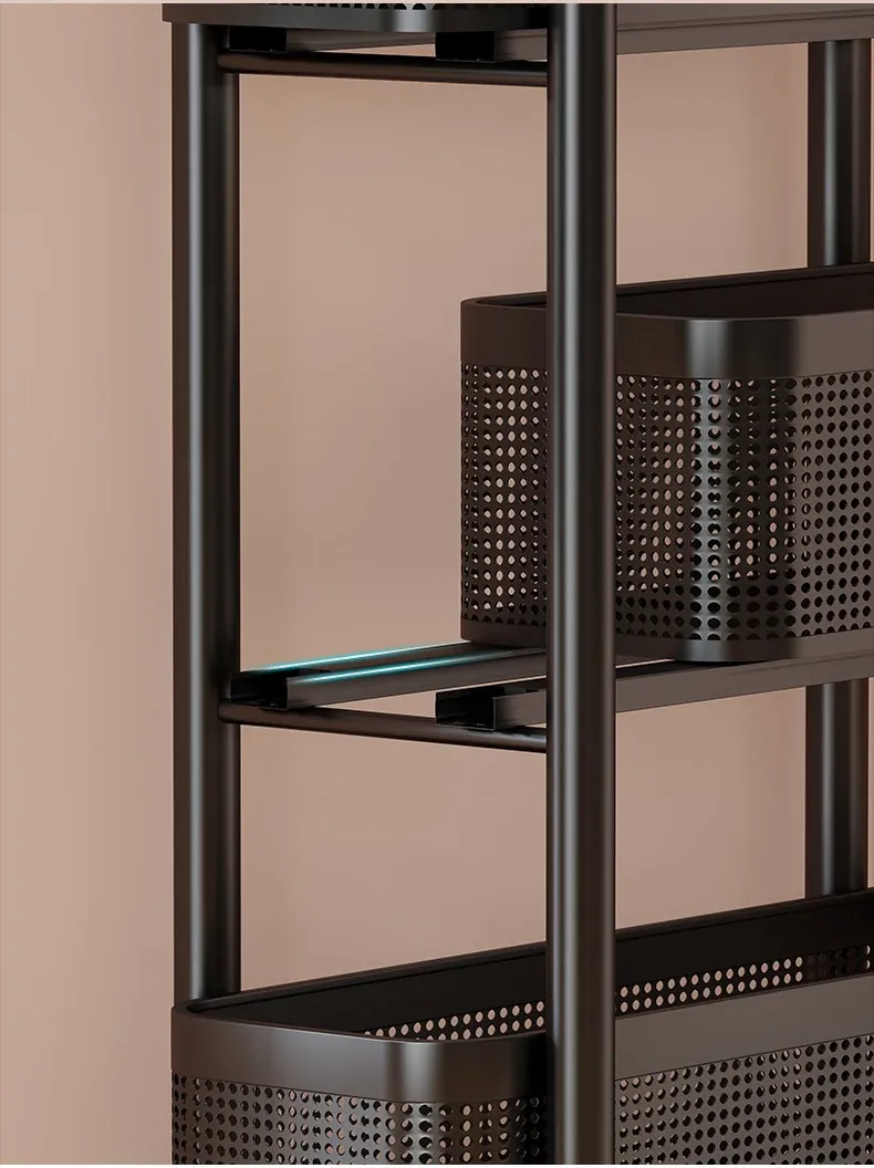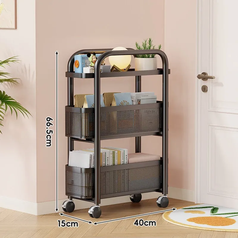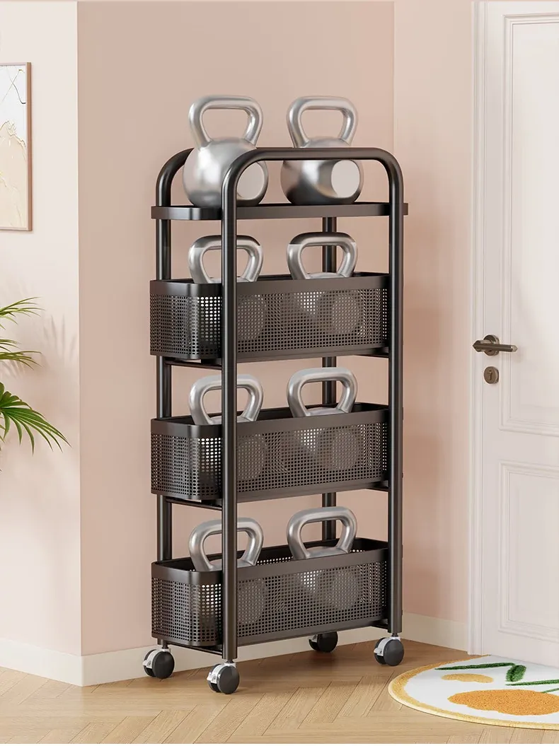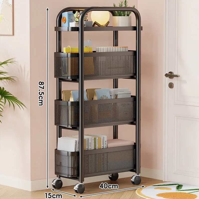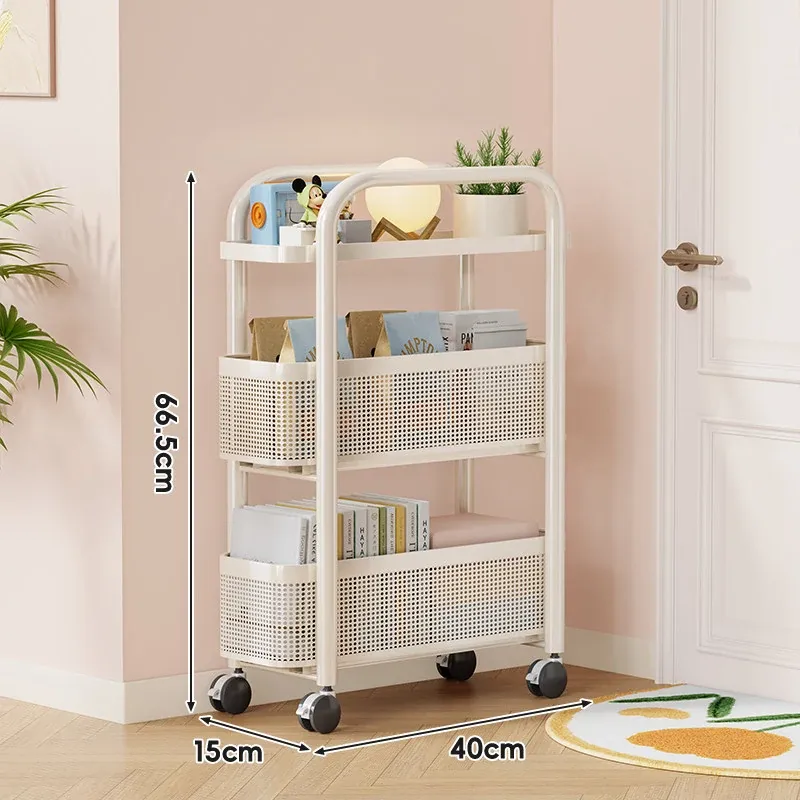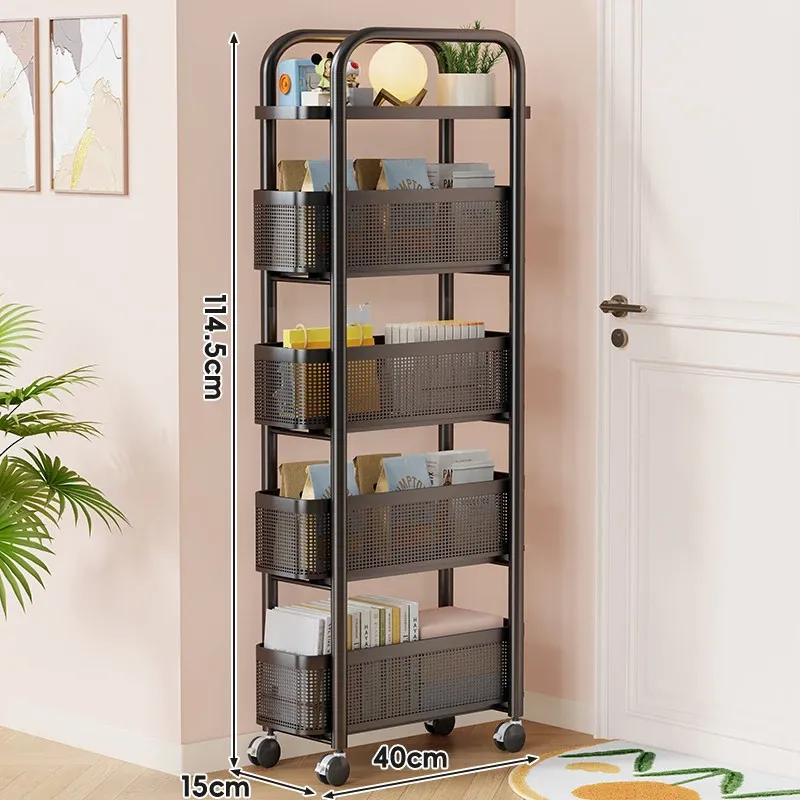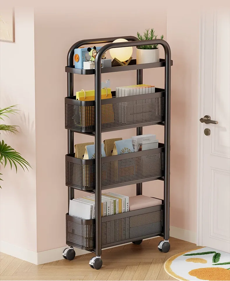 隙間収納ラック - 寝室やキッチン、洗面所のドアの後ろにぴったりフィット!スリムなデザインで引き出し式のカゴ付き、スナックや小物をスッキリ収納!省スペースでおしゃれな小推車です。