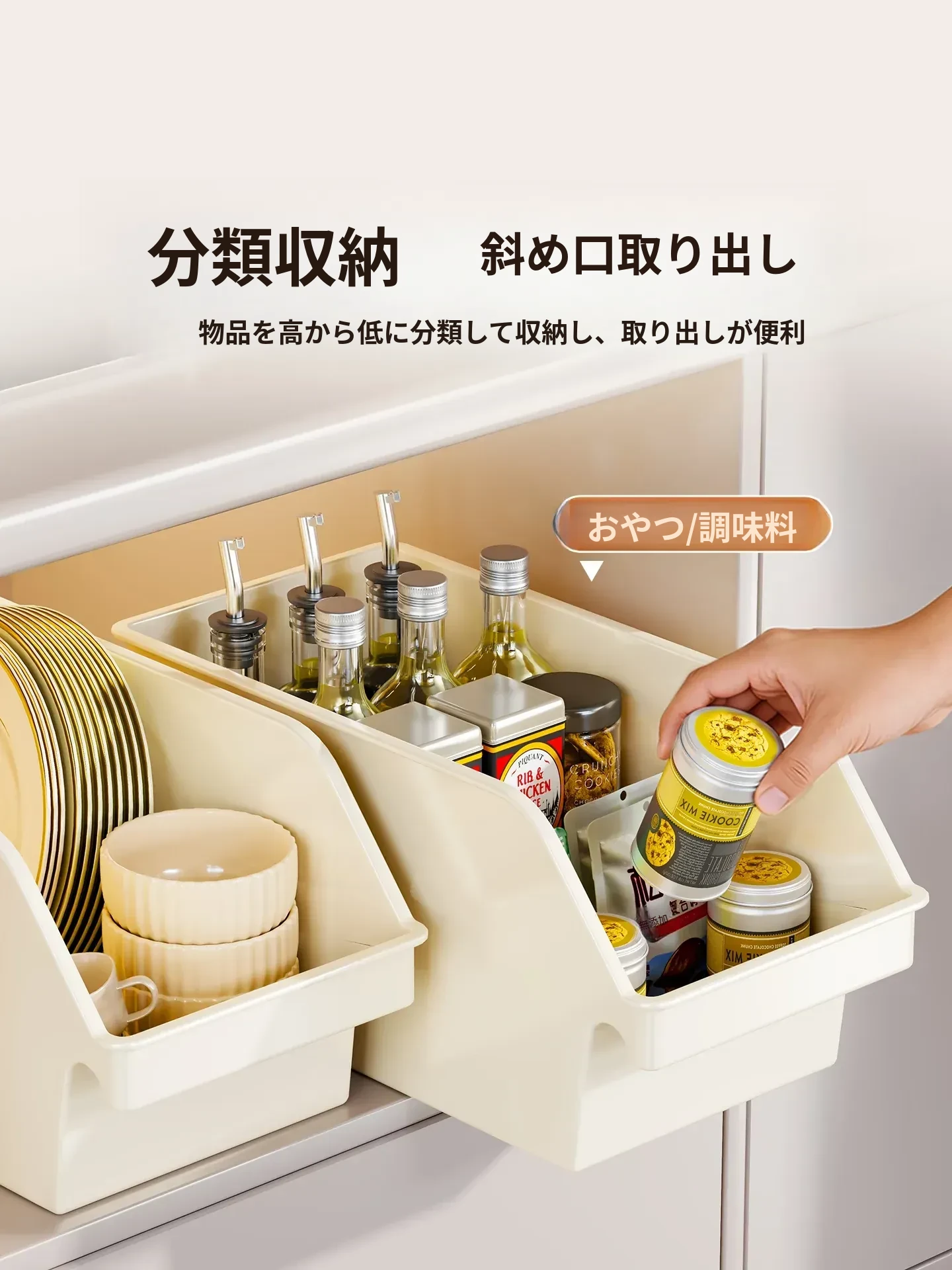 キッチン収納ボックス 引き出し式スナックラック 大容量長方形整理バスケット テーブル上の雑貨整理に最適!おしゃれで実用的な収納ソリューションで、キッチンをスッキリさせましょう!