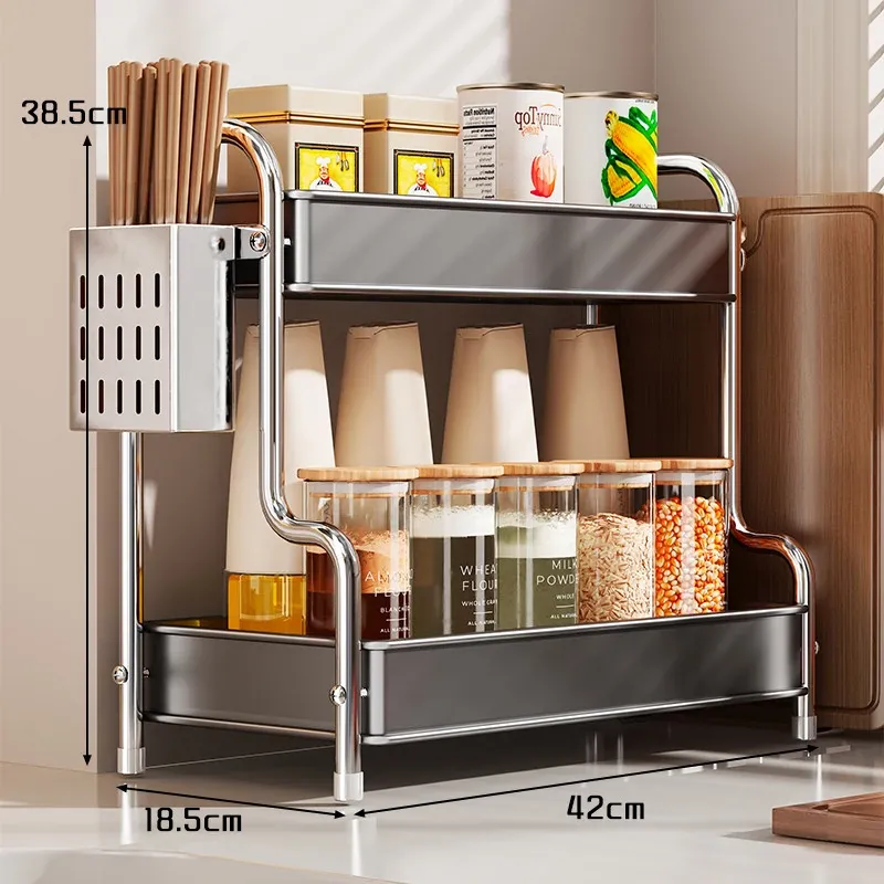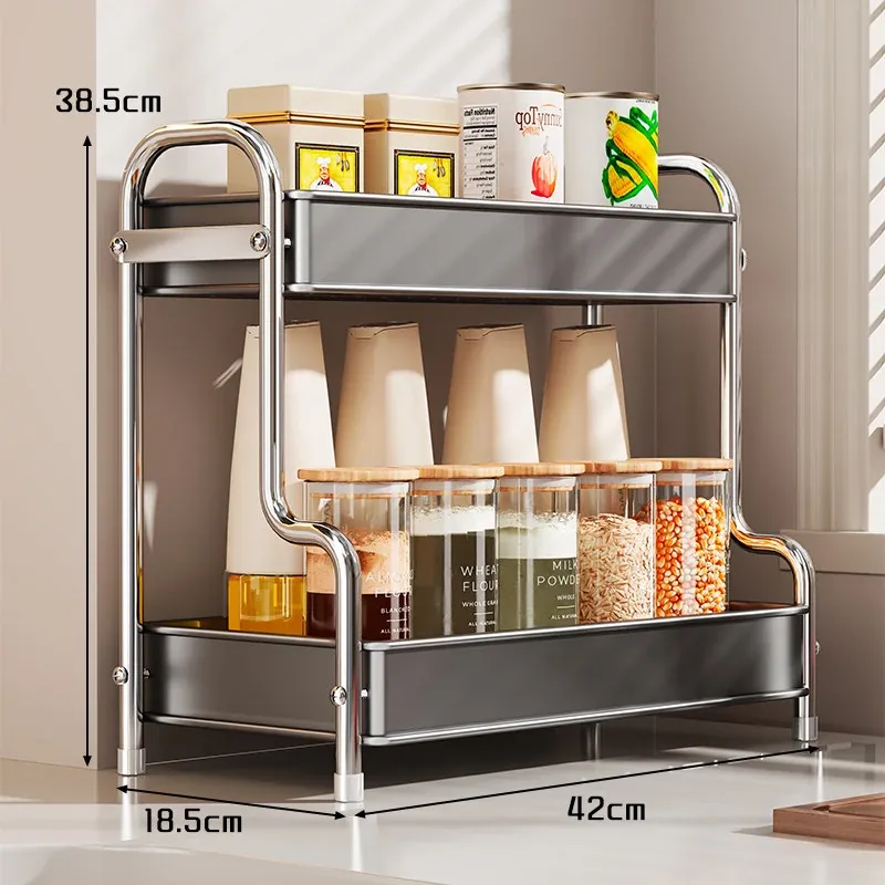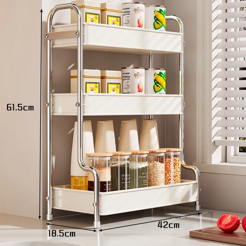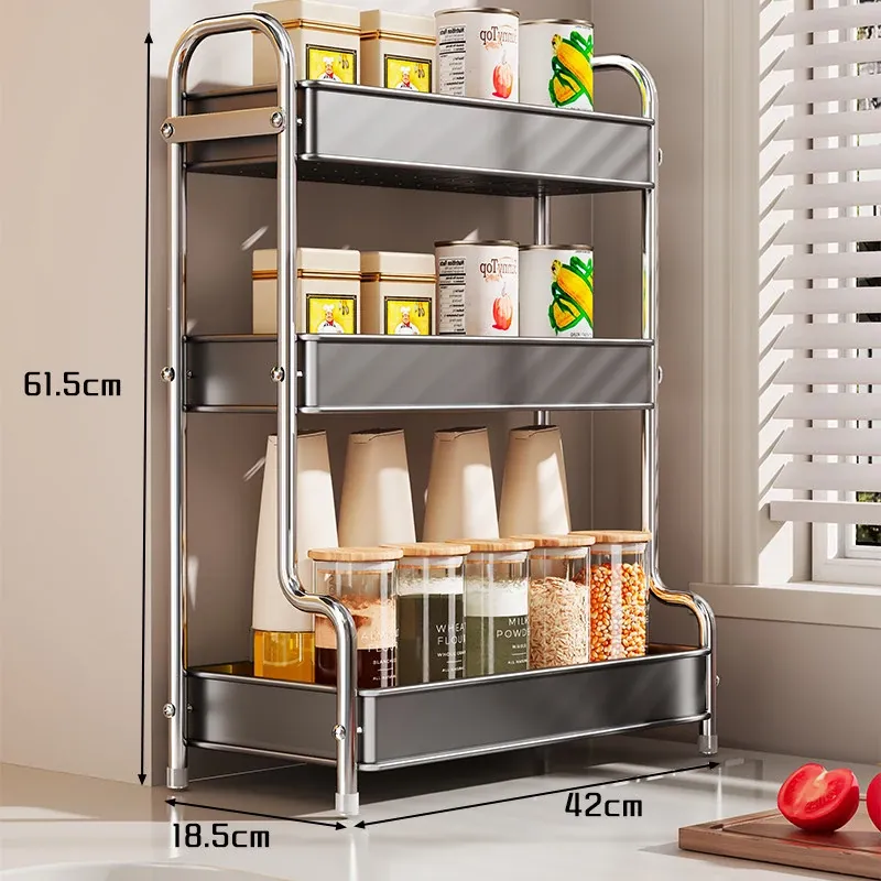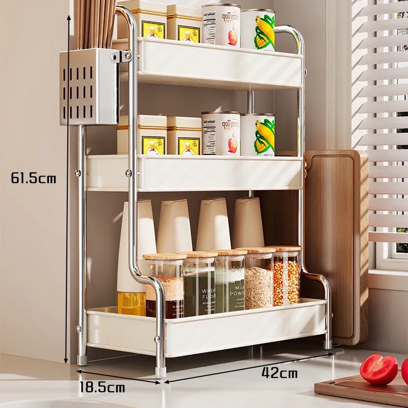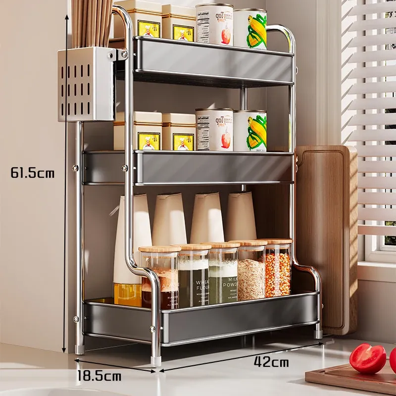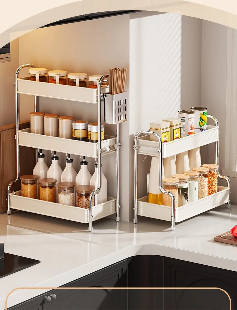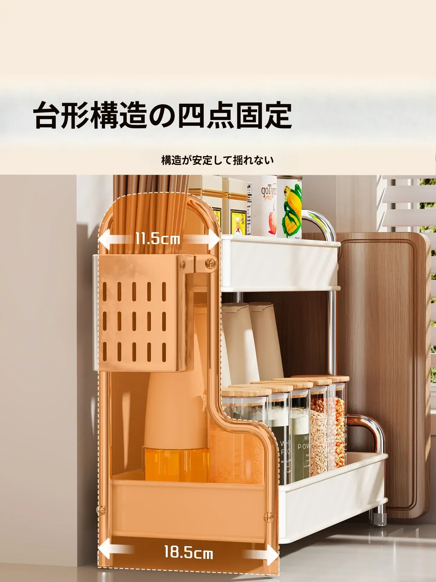 キッチンの調味料ラック|狭いコーナーにもピッタリ!油・塩・醤油・酢をスマートに収納できる家用置き棚。スリムなデザインでスペースを有効活用し、料理をもっと便利に!