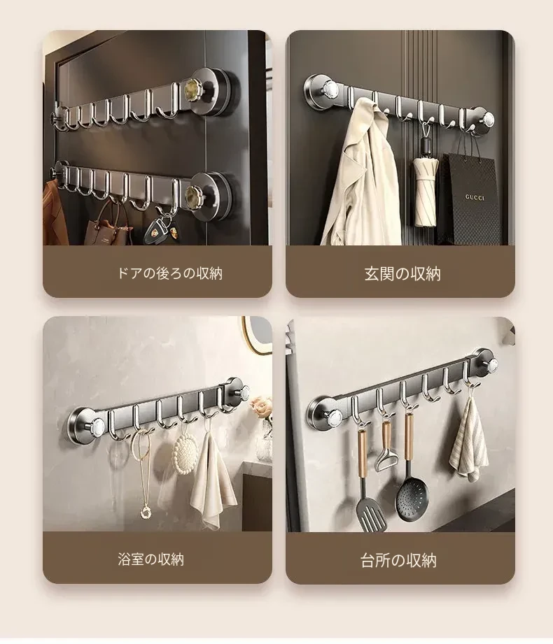ドア裏吸盤フック - 強力耐荷重・粘着式で穴あけ不要!寝室やバスルームに最適なタオル掛け&コートハンガー。入室時の便利な収納アイテム!おしゃれで機能的なインテリアを実現。