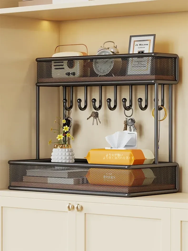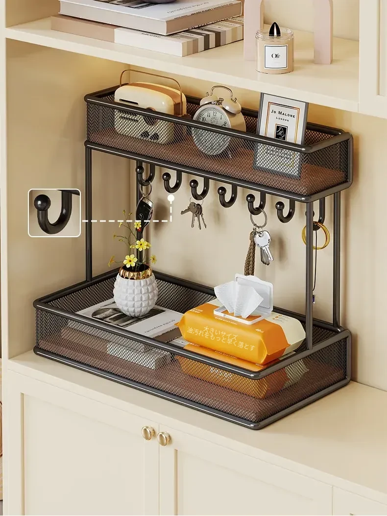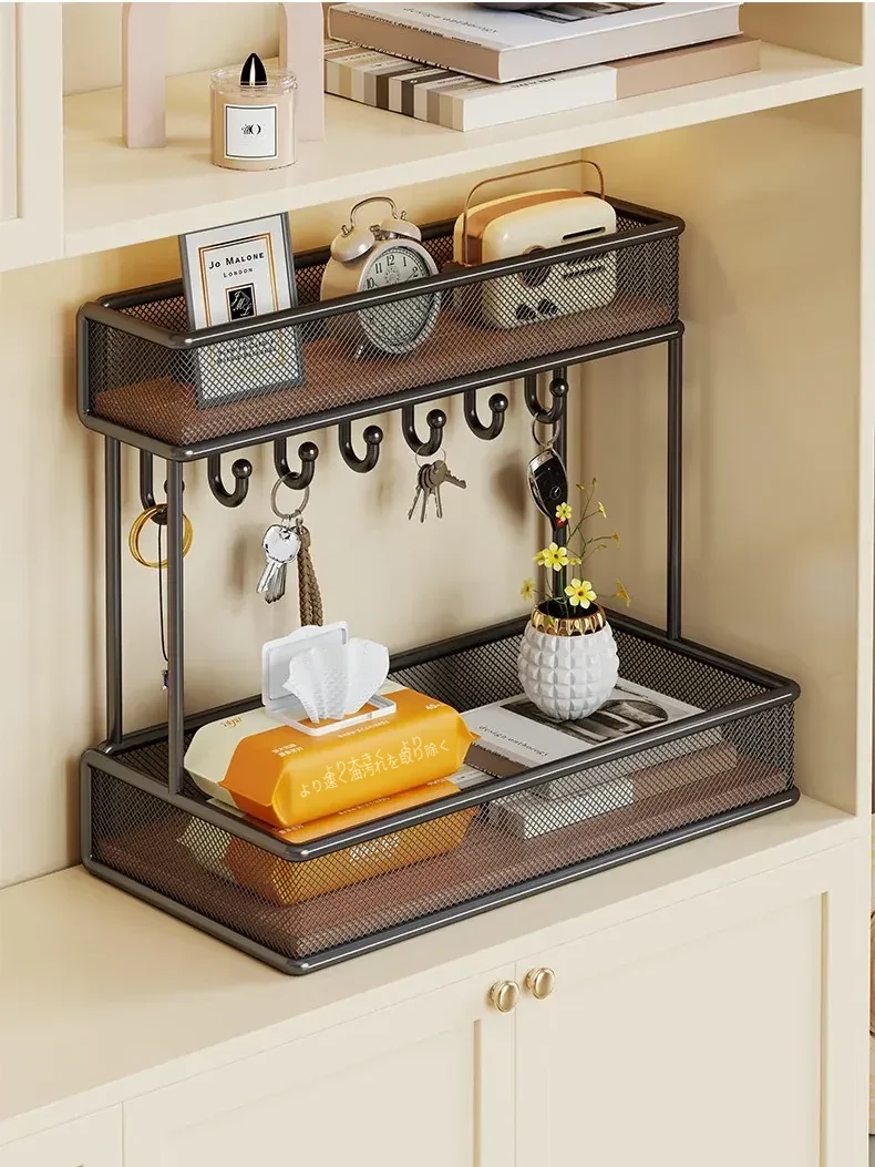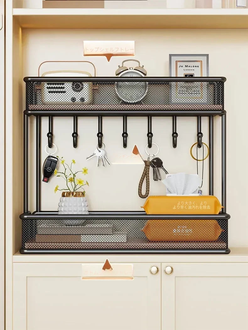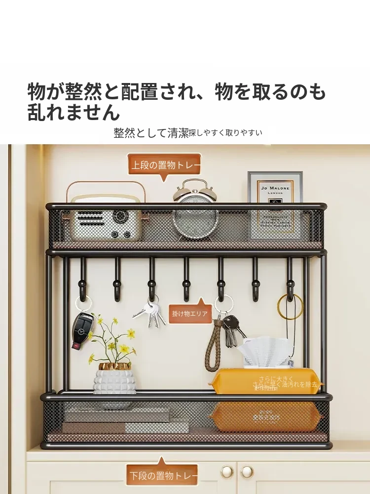 玄関の鍵整理に最適!おしゃれなハンガー付きシューズキャビネット用置き台 - 複数段の収納ラックで、玄関をスッキリ整頓!お客様を迎える素敵な空間を演出します。