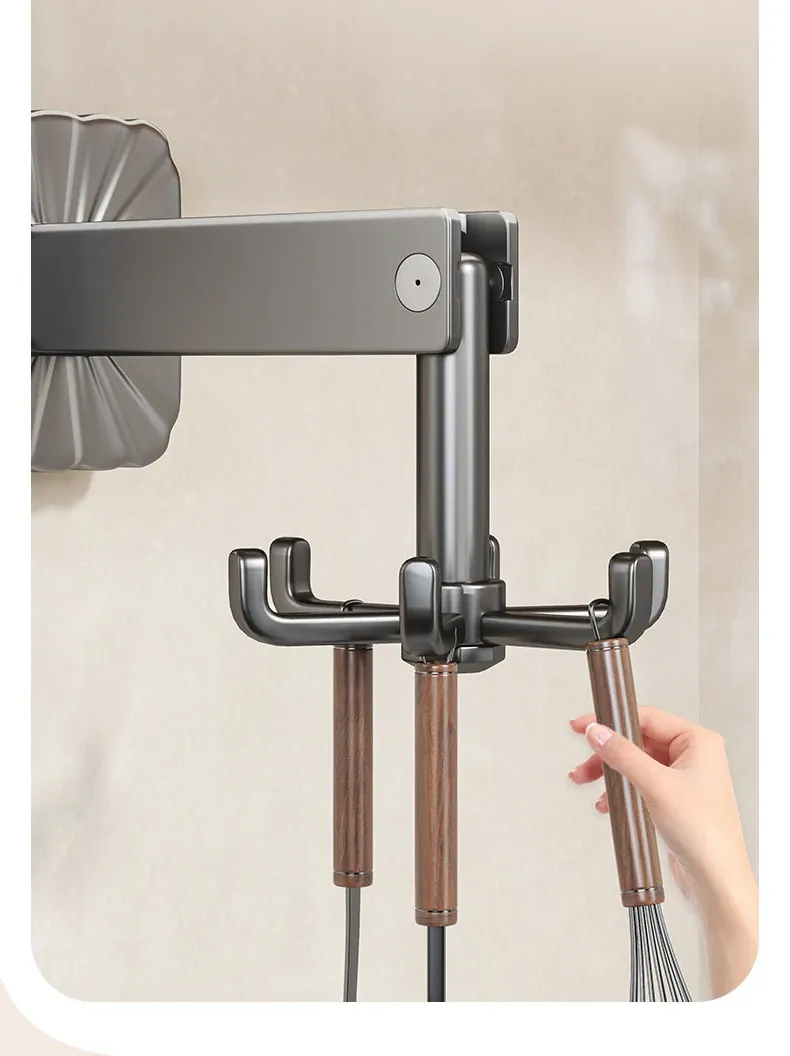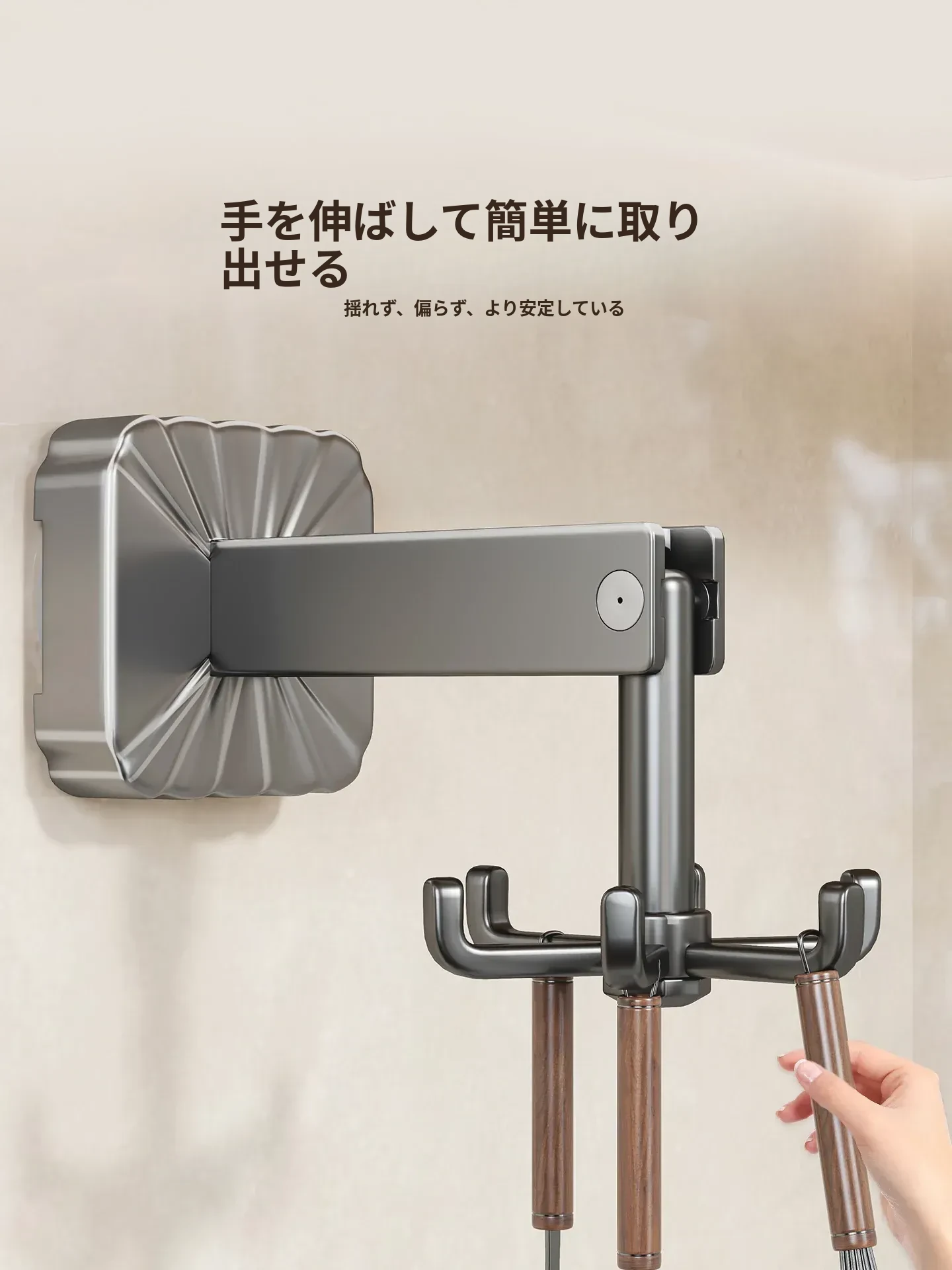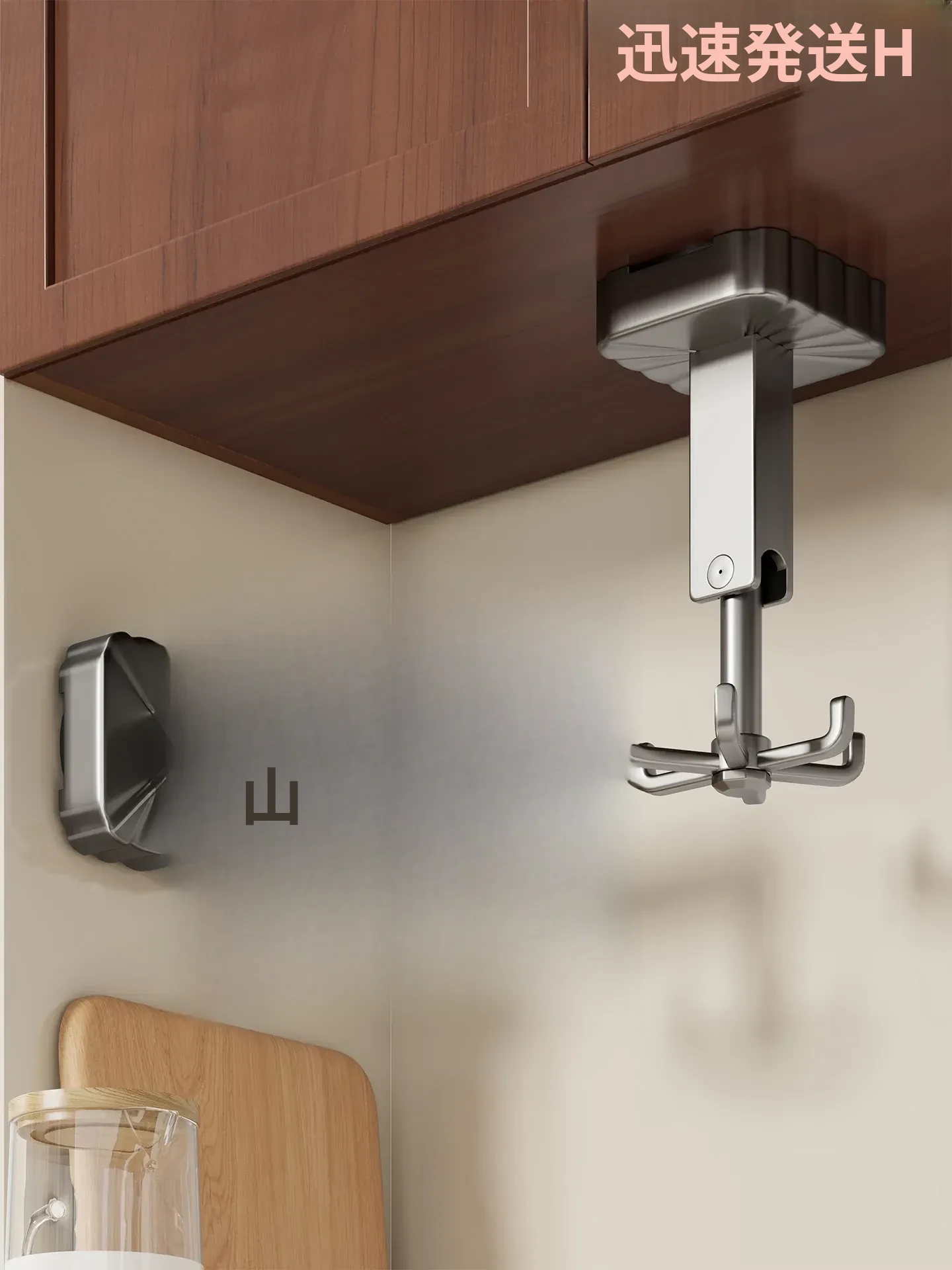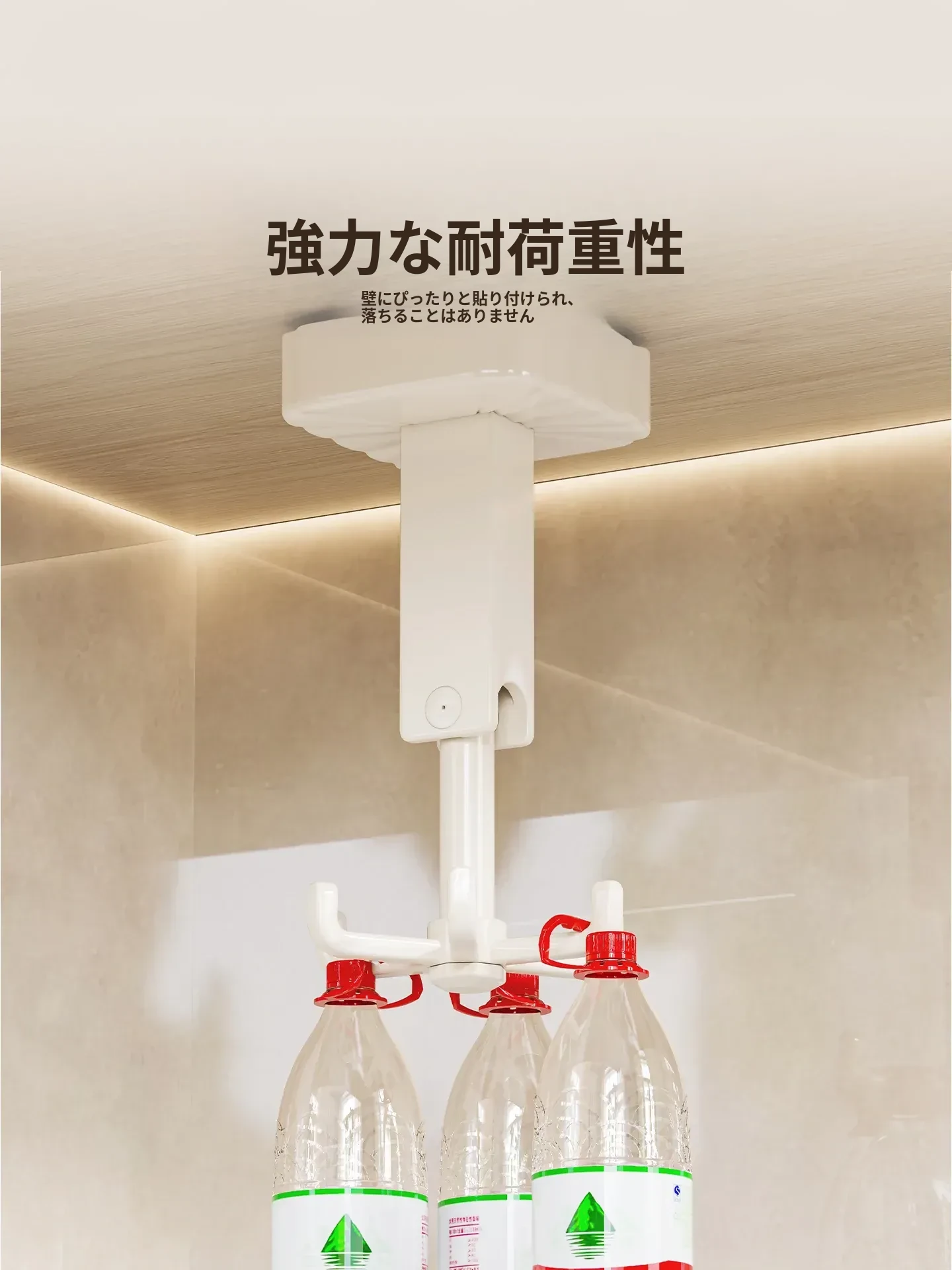 吸盤式キッチン回転フック - 穴なし壁掛け鍋やお玉収納ラック!家事を楽にする便利アイテム、スペースを有効活用してスッキリ整理整頓!