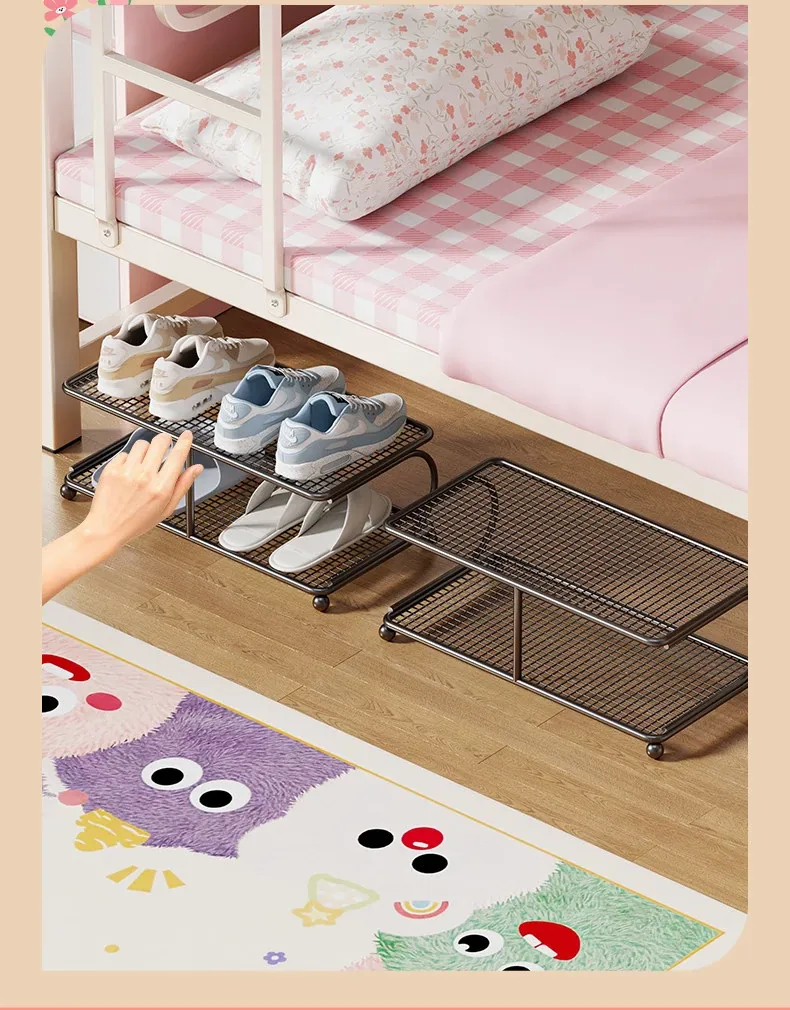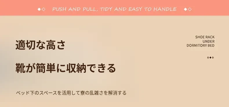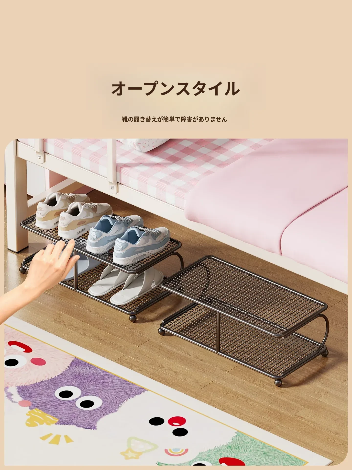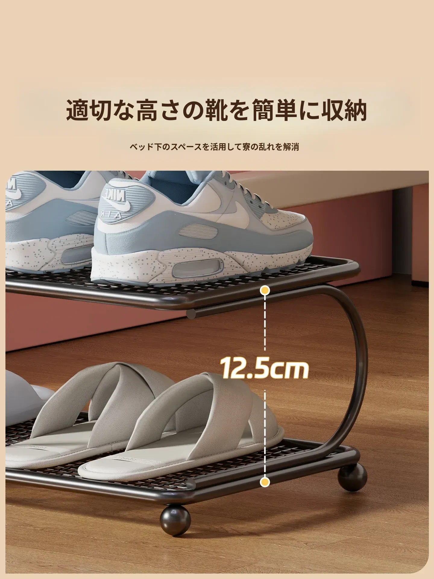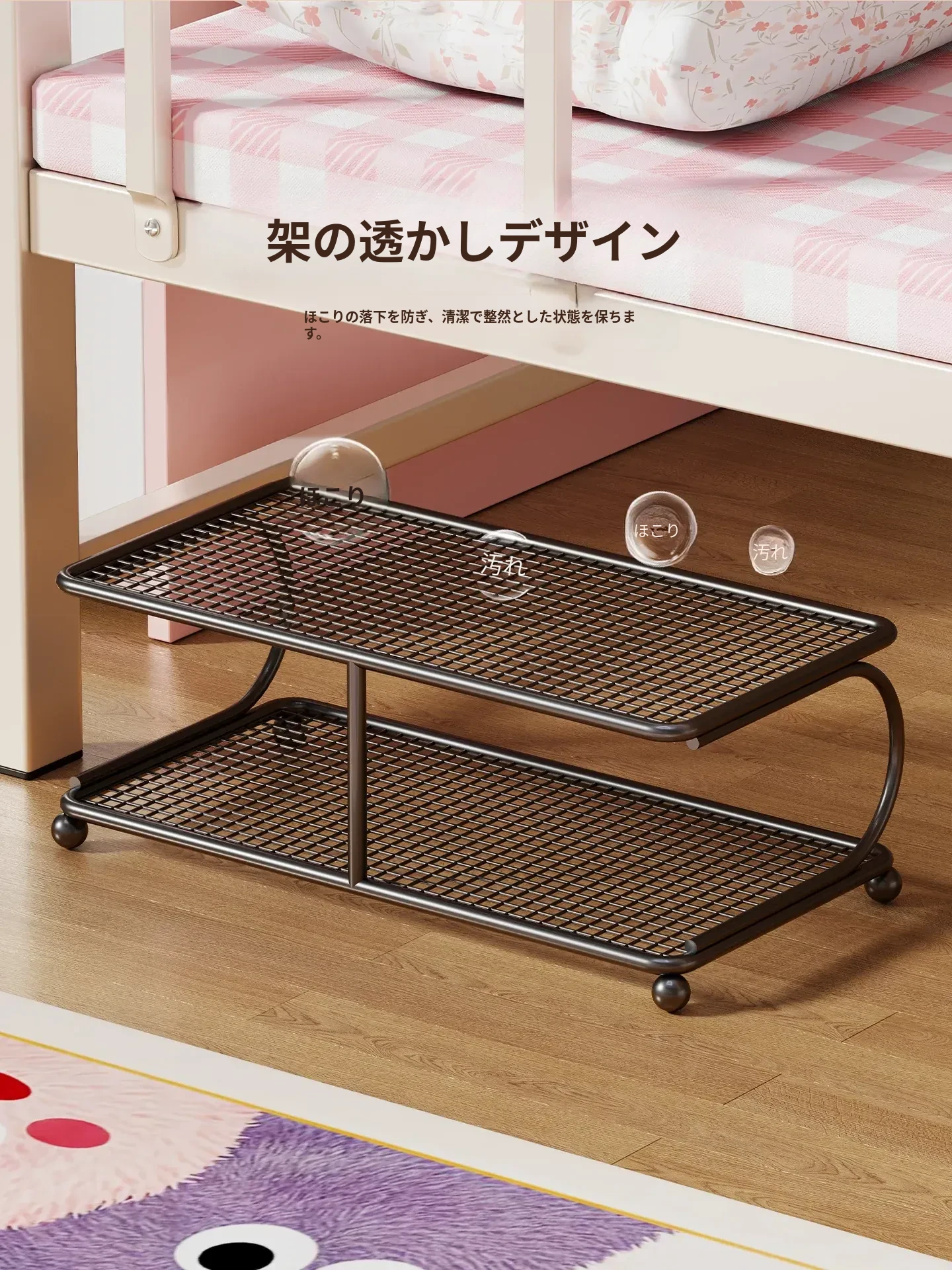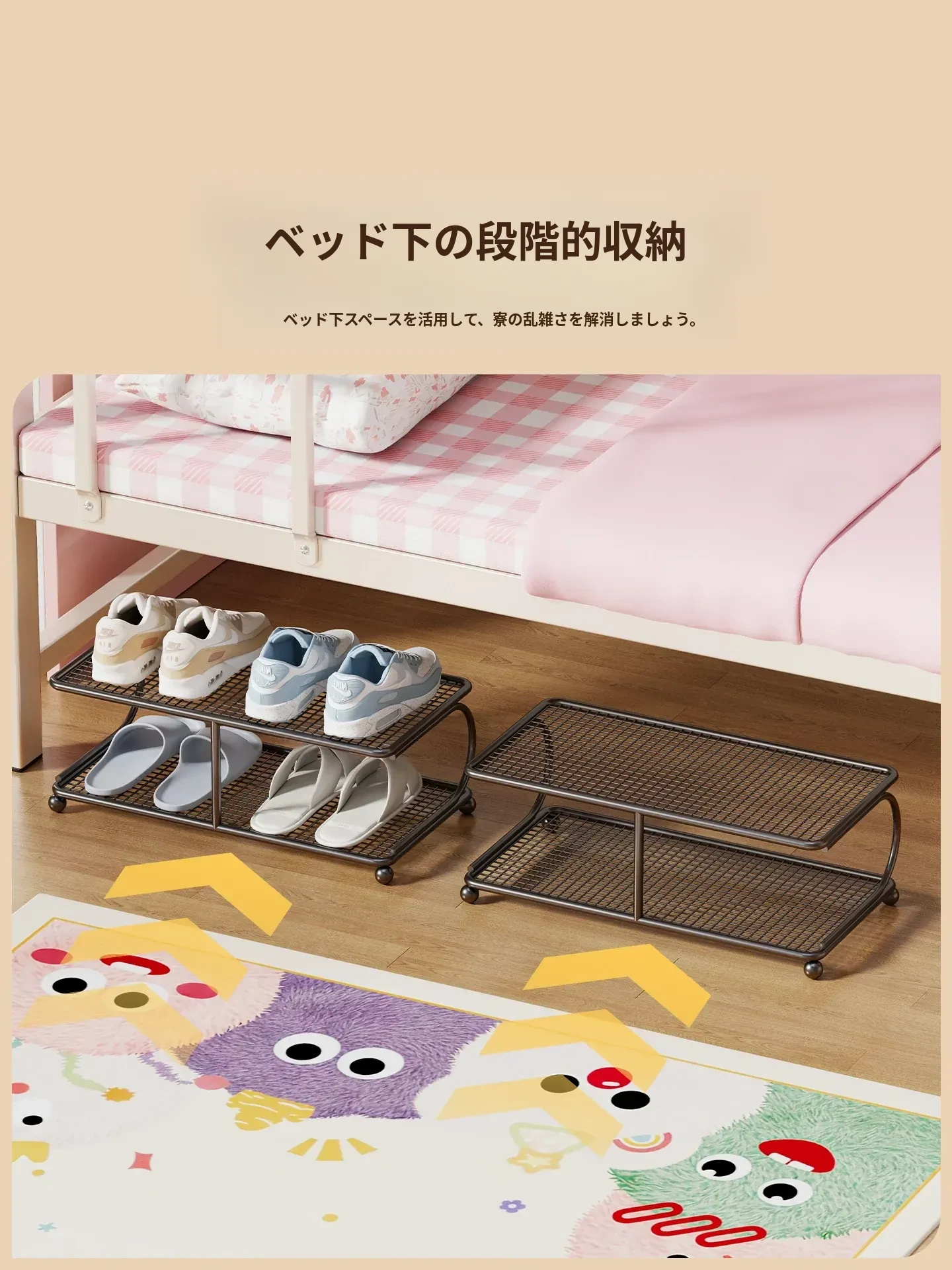 大学生必見!宿舎用ベッド下収納シューズラック - スリムでコンパクトなデザイン、寮生活をスッキリ整理!段階的な収納で、スリッパや靴を簡単に取り出せる便利なシューズキャビネット。
