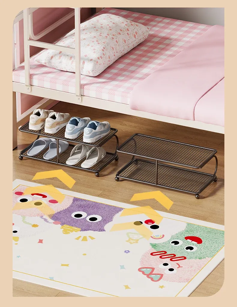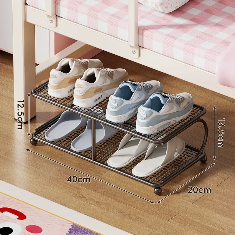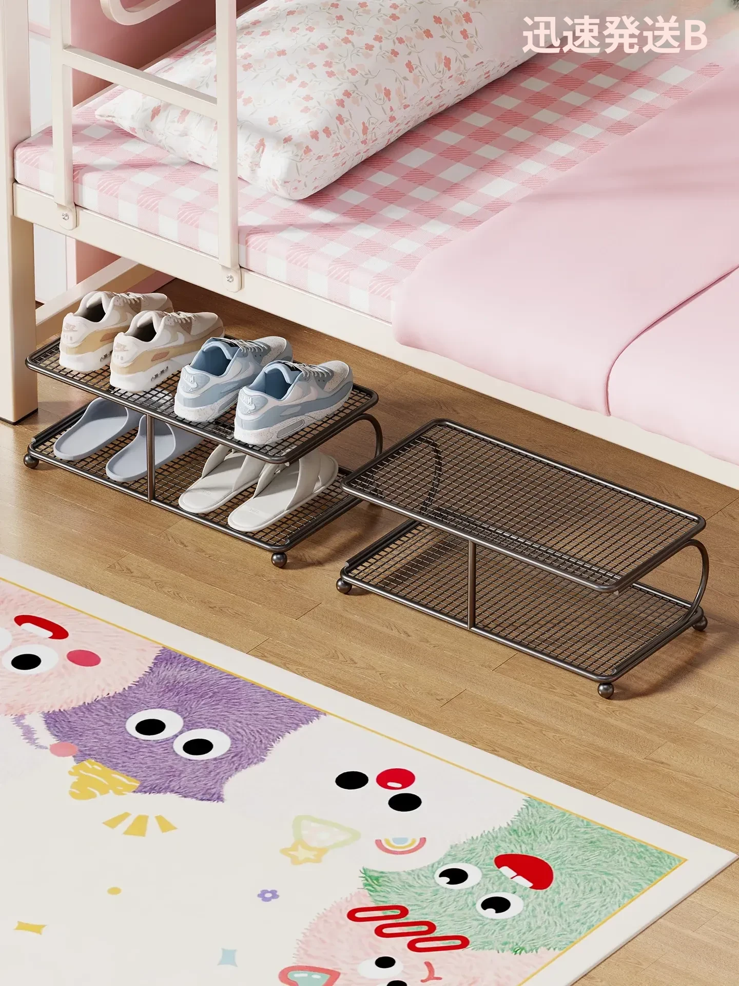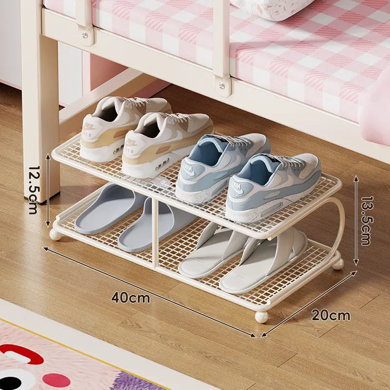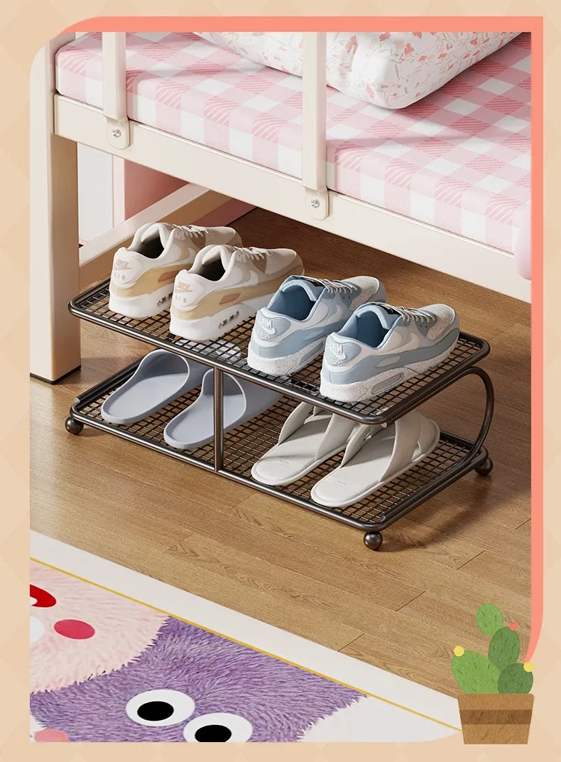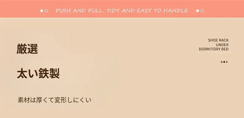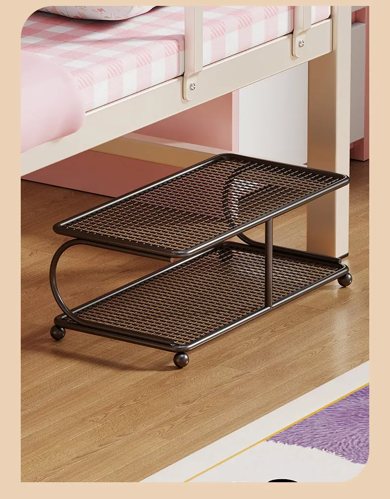 大学生必見!宿舎用ベッド下収納シューズラック - スリムでコンパクトなデザイン、寮生活をスッキリ整理!段階的な収納で、スリッパや靴を簡単に取り出せる便利なシューズキャビネット。