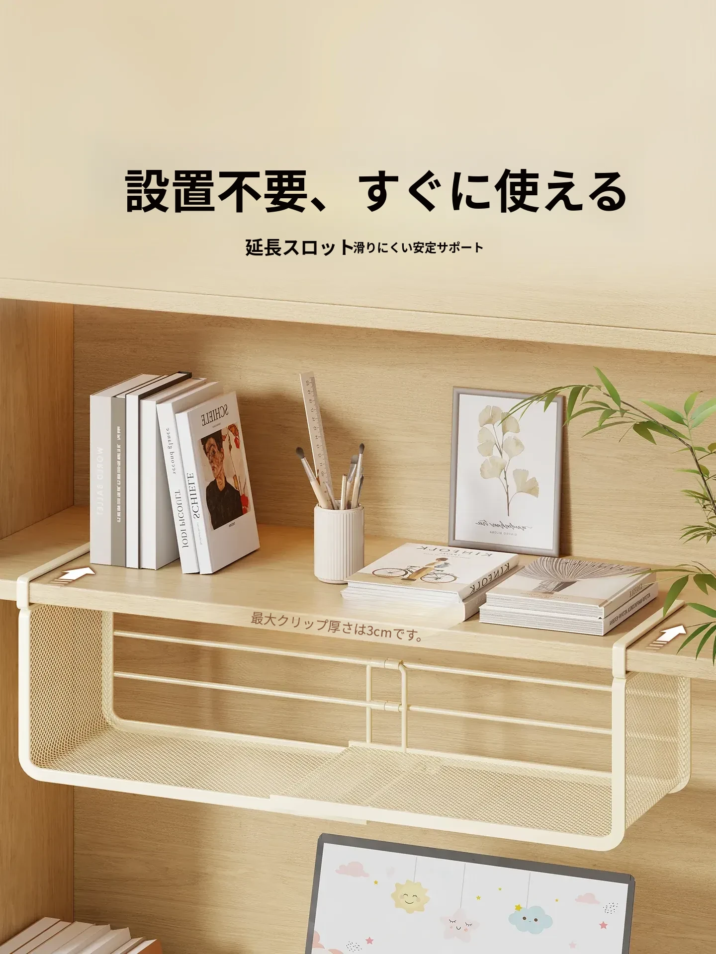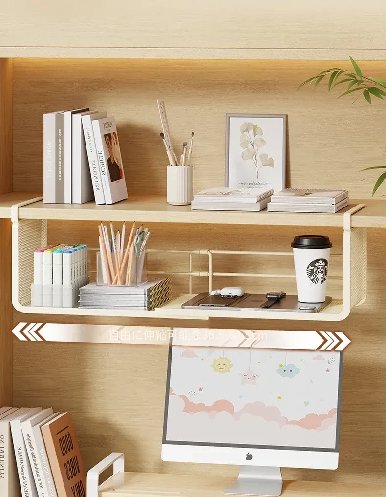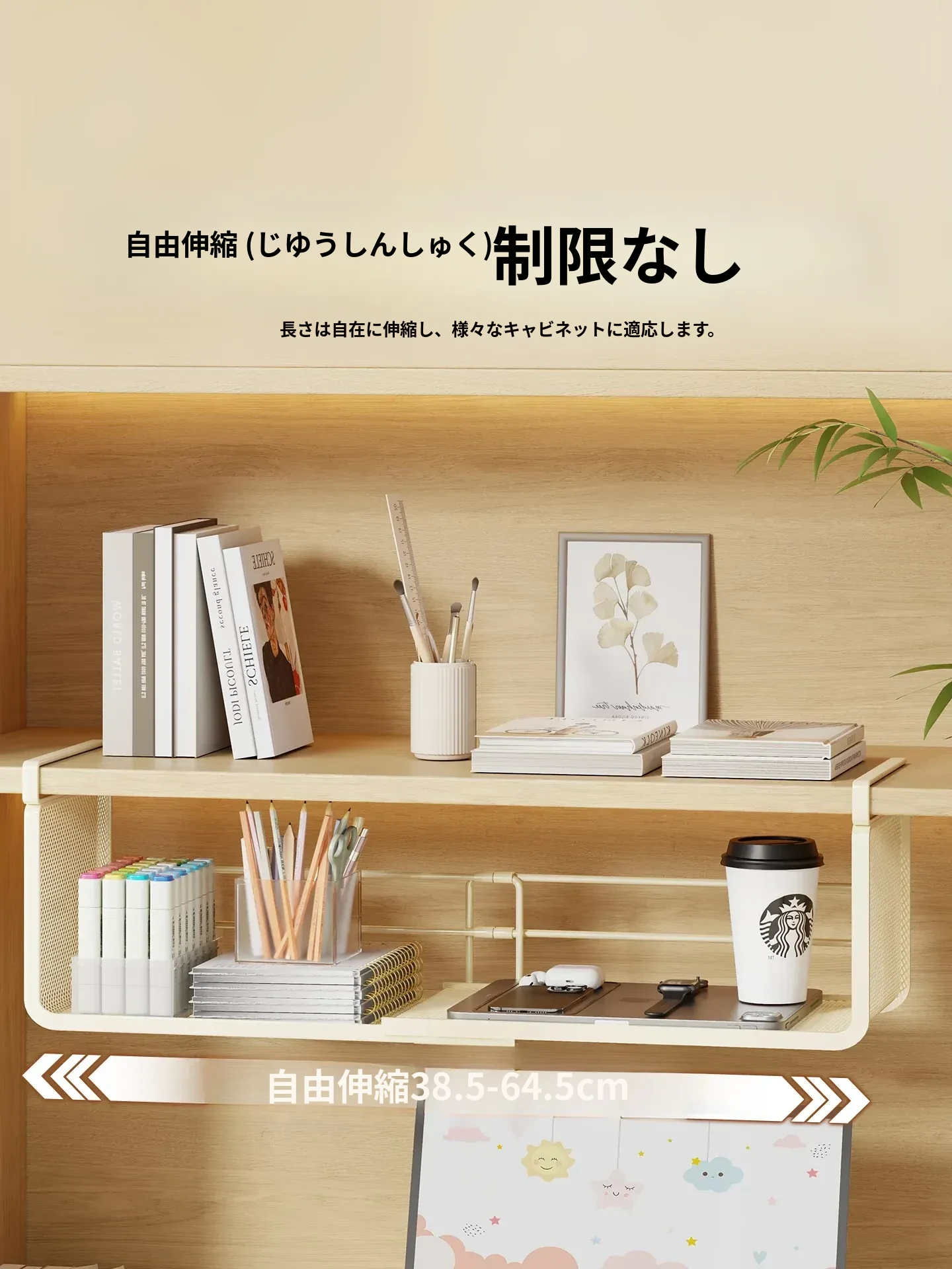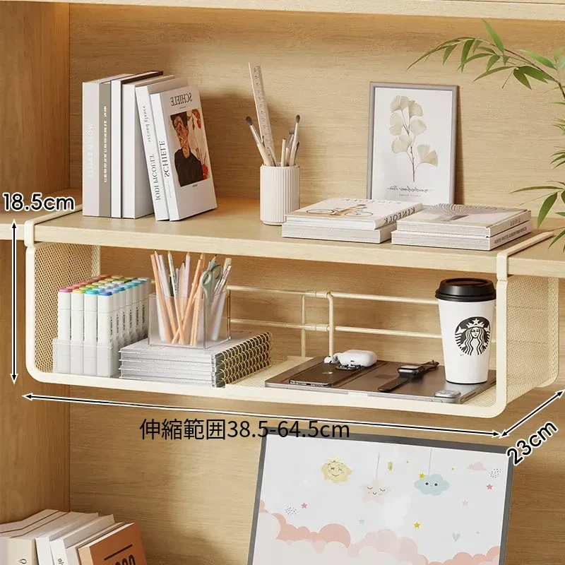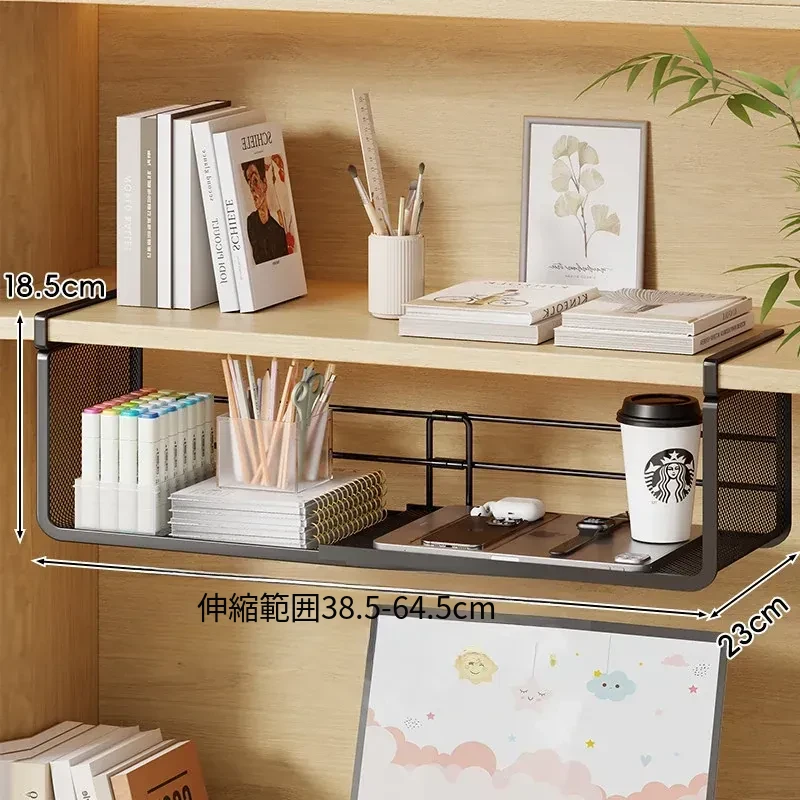 デスク下収納ラック - 宿舎に最適!伸縮可能な便利なハンギングバスケットで、デスク周りをすっきり整理。書類や小物を簡単に収納できる魔法のようなアイテム!