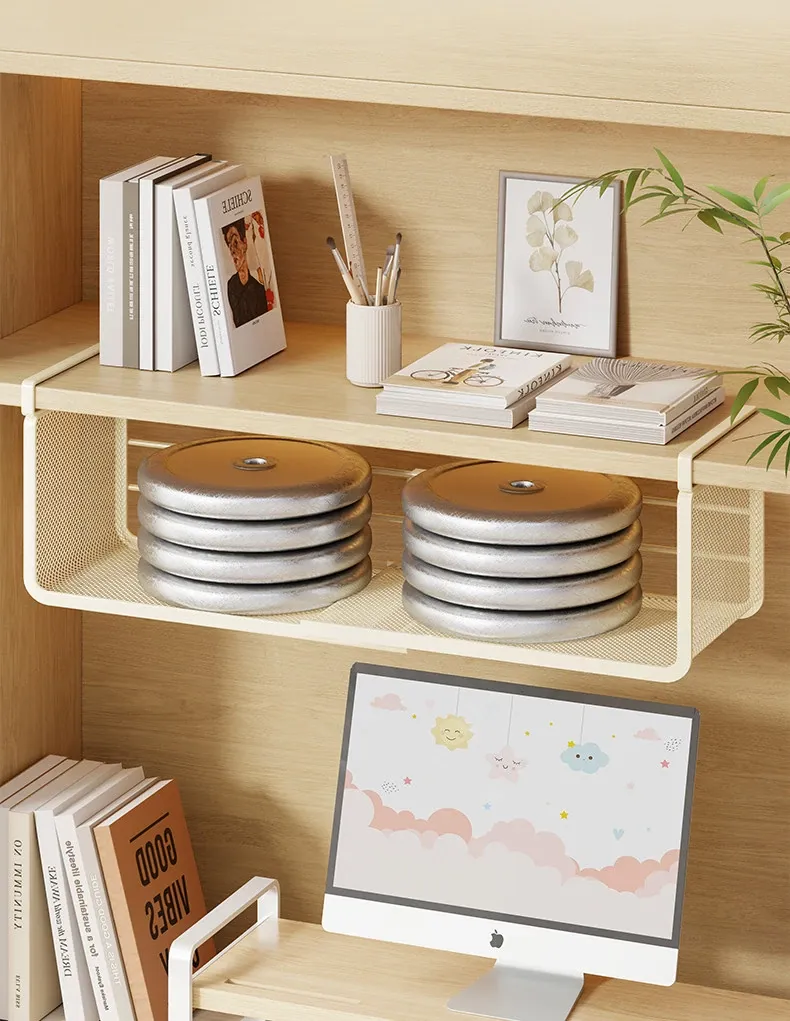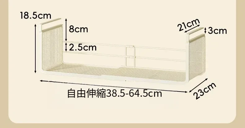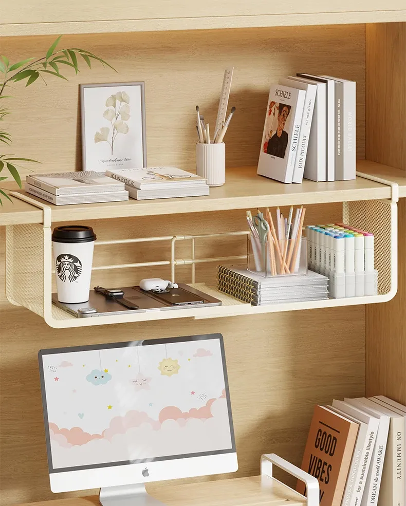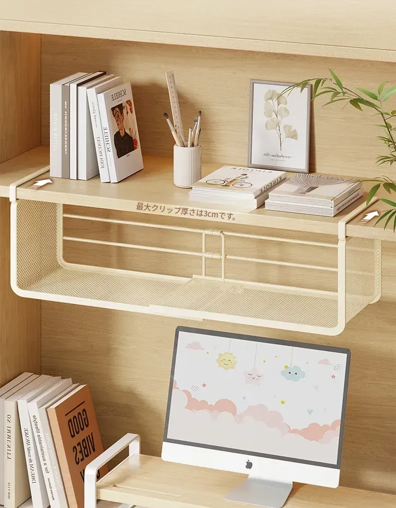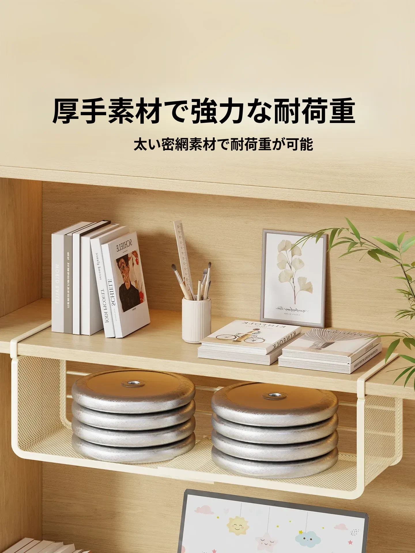 デスク下収納ラック - 宿舎に最適!伸縮可能な便利なハンギングバスケットで、デスク周りをすっきり整理。書類や小物を簡単に収納できる魔法のようなアイテム!