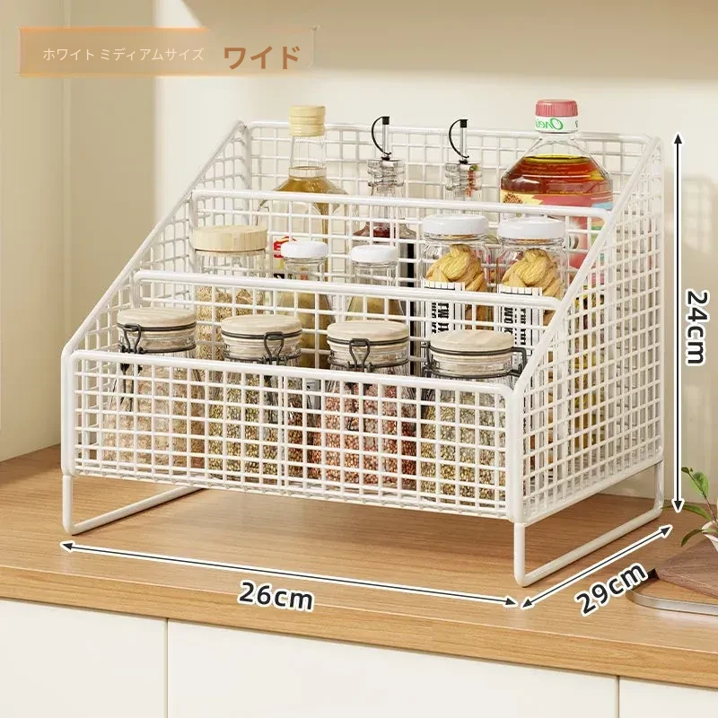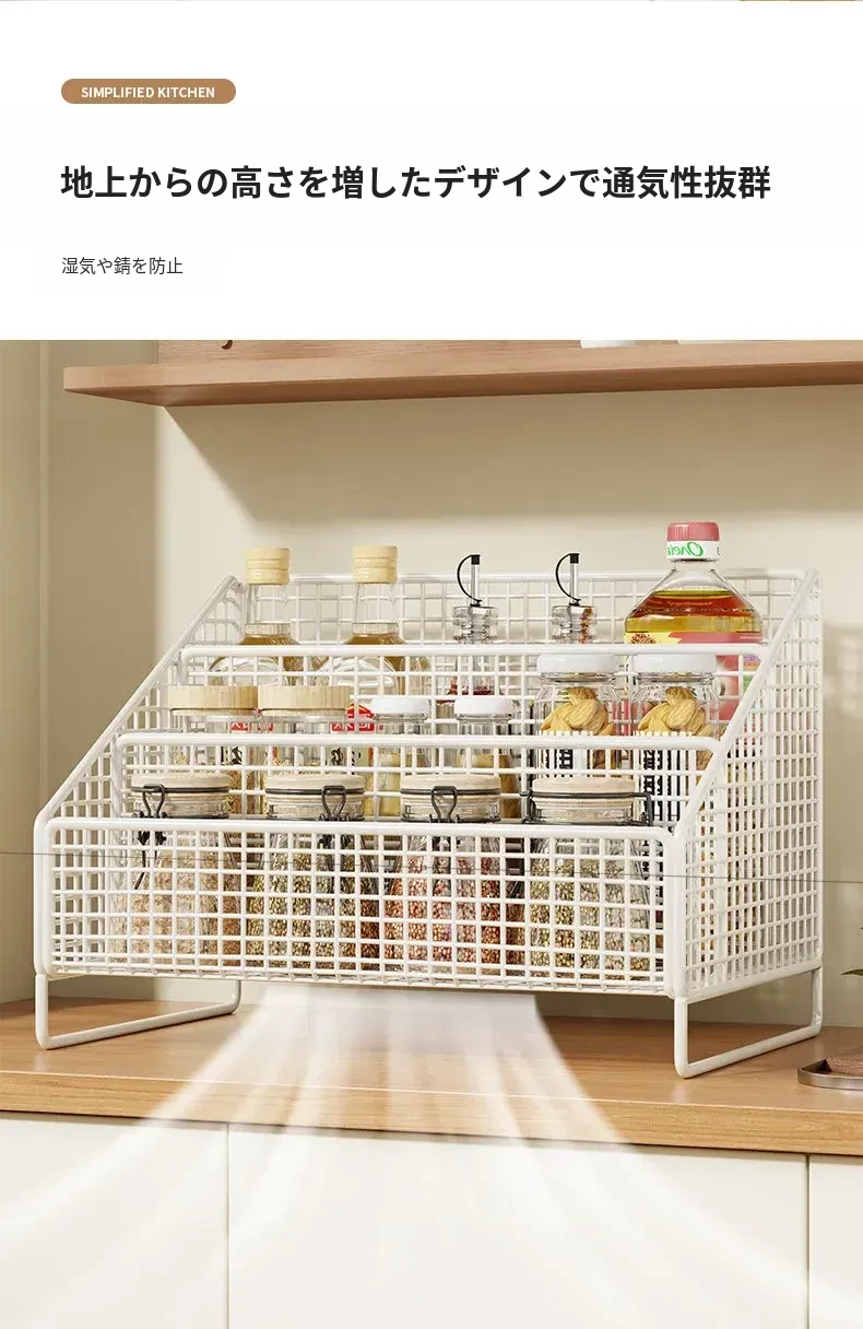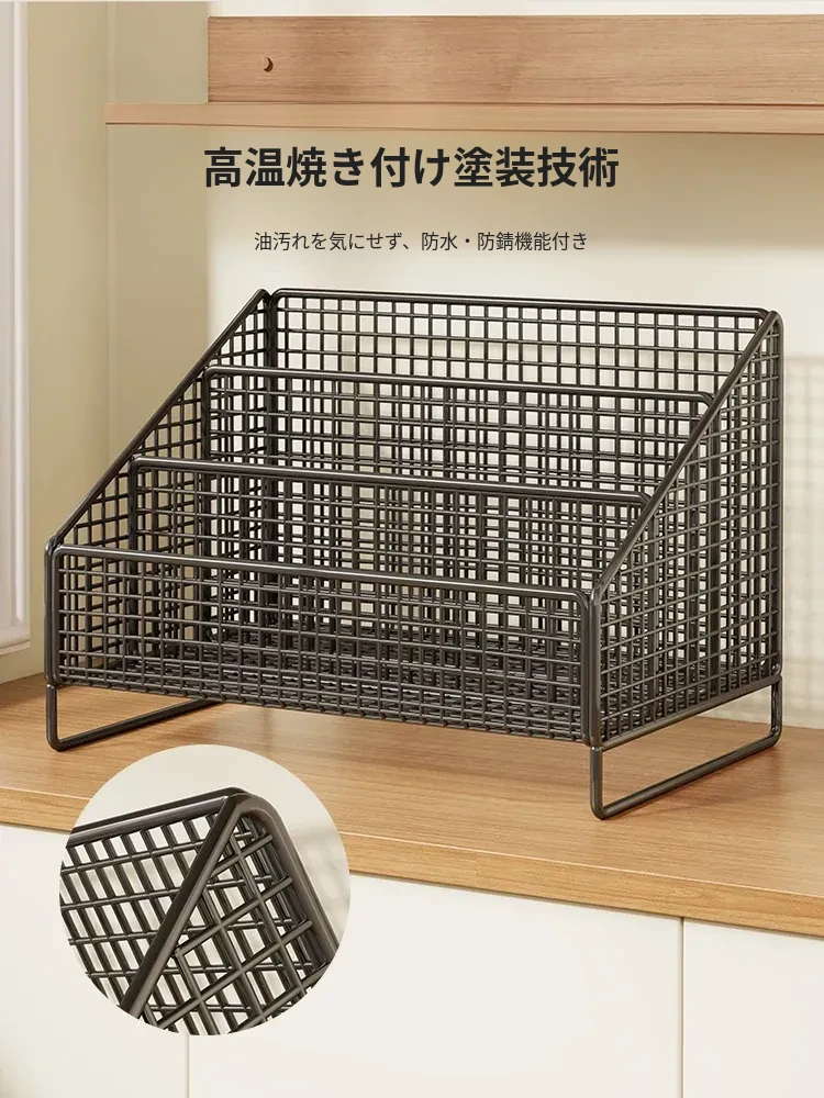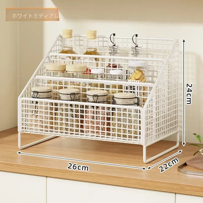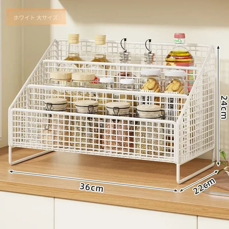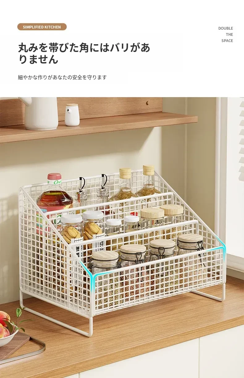 多機能調味料収納ラック|キッチンにぴったりの整理整頓アイテム!カップホルダー付きで、スッキリとした台面を実現。調味料を美しく分けて収納し、料理をもっと楽しく!