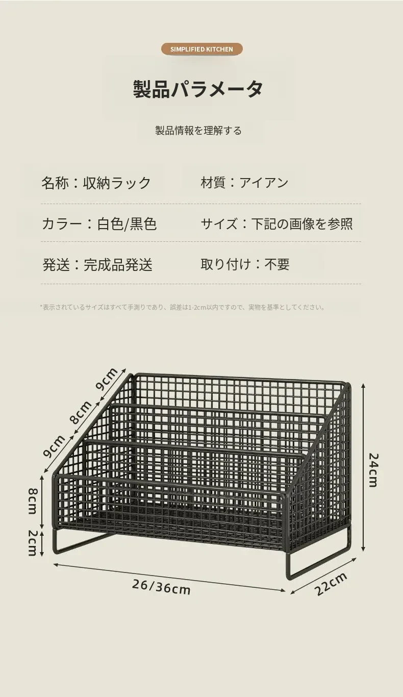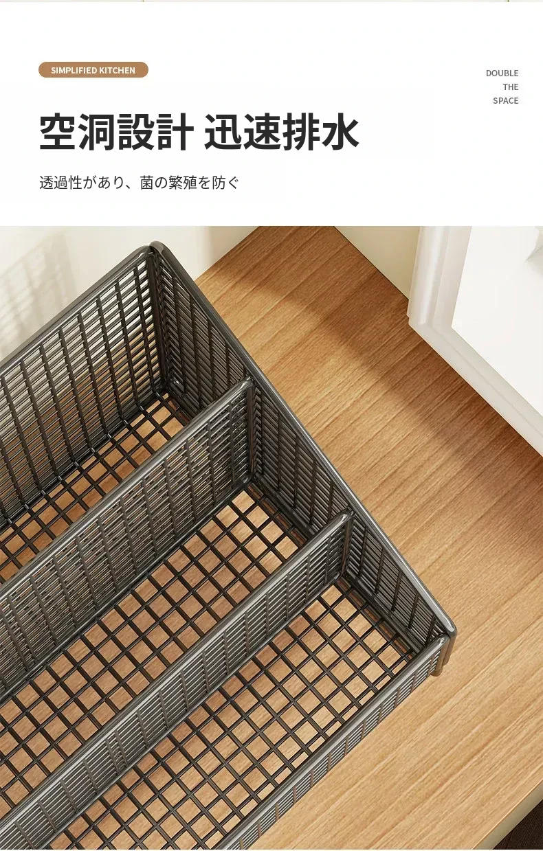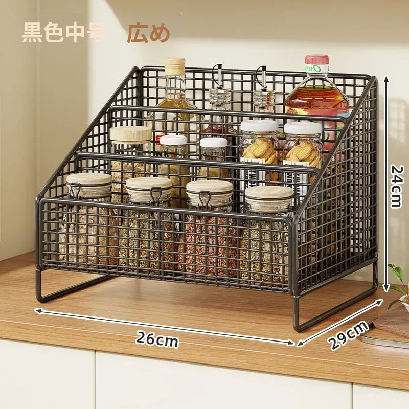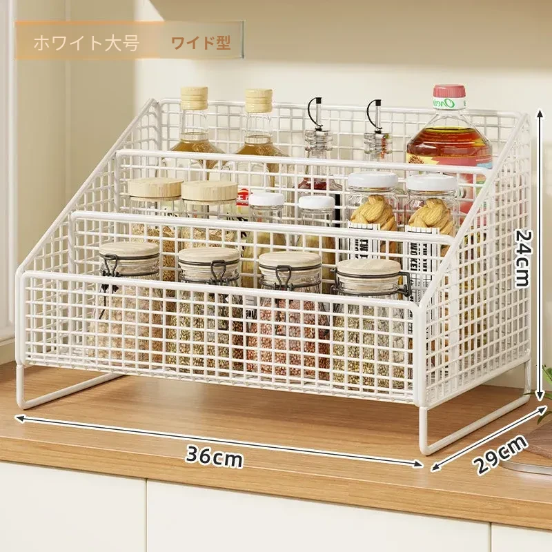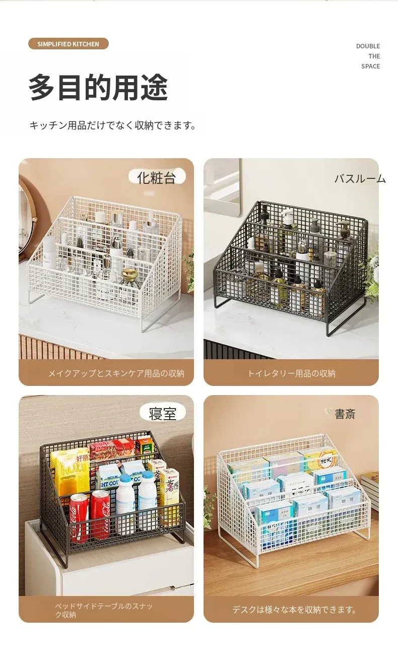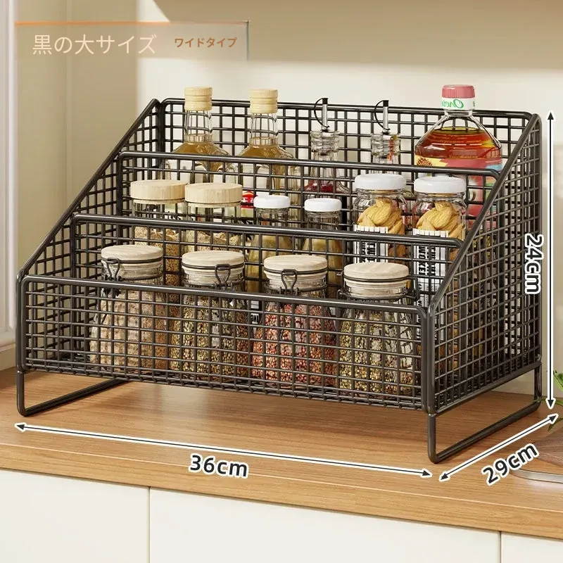 多機能調味料収納ラック|キッチンにぴったりの整理整頓アイテム!カップホルダー付きで、スッキリとした台面を実現。調味料を美しく分けて収納し、料理をもっと楽しく!