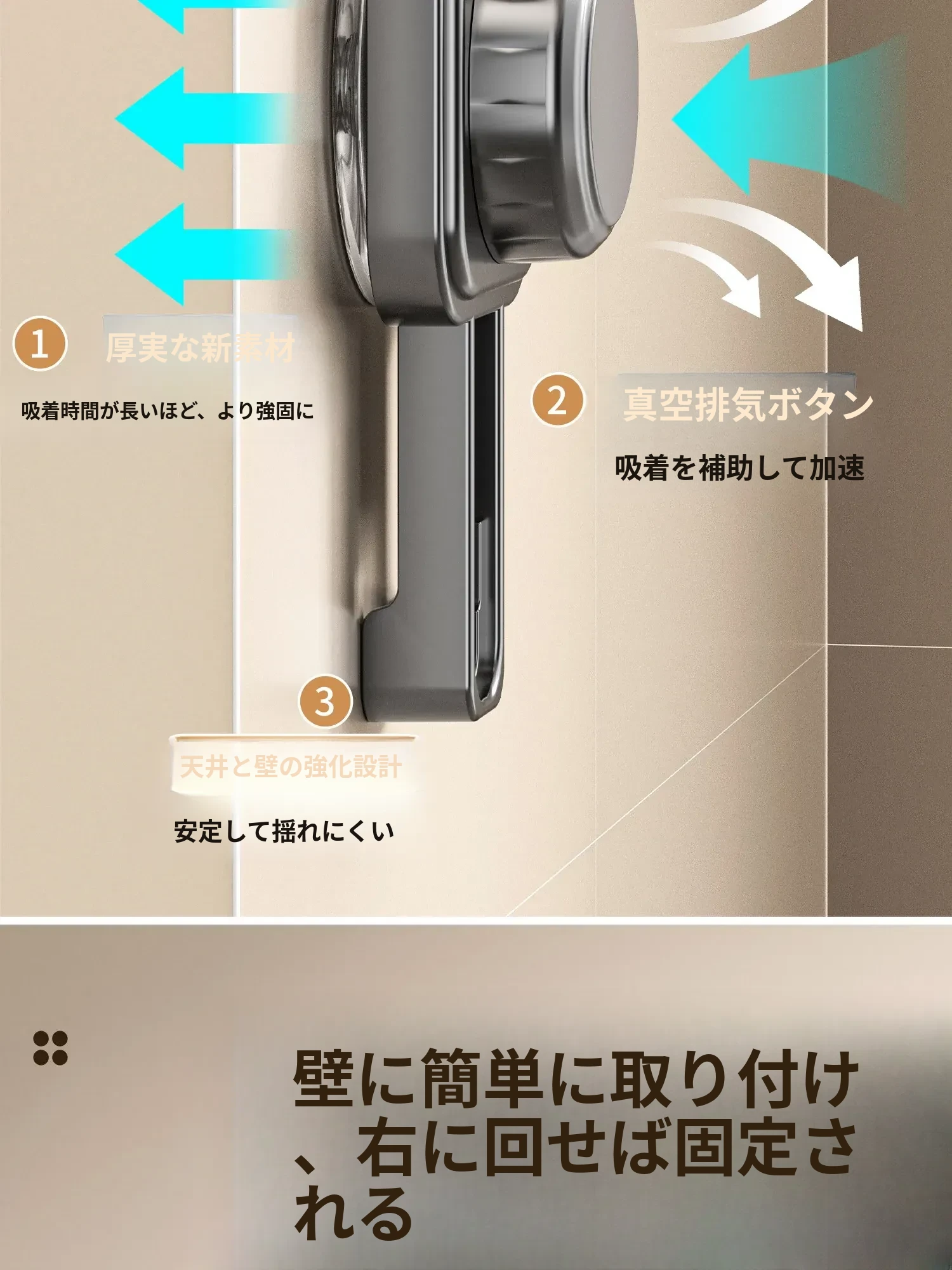 吸盤式モップ壁掛けホルダー - トイレ掃除をもっと簡単に!モップや掃除用具をスッキリ収納できる、便利な壁面固定フック。清潔で整理されたバスルームを実現する必需品!