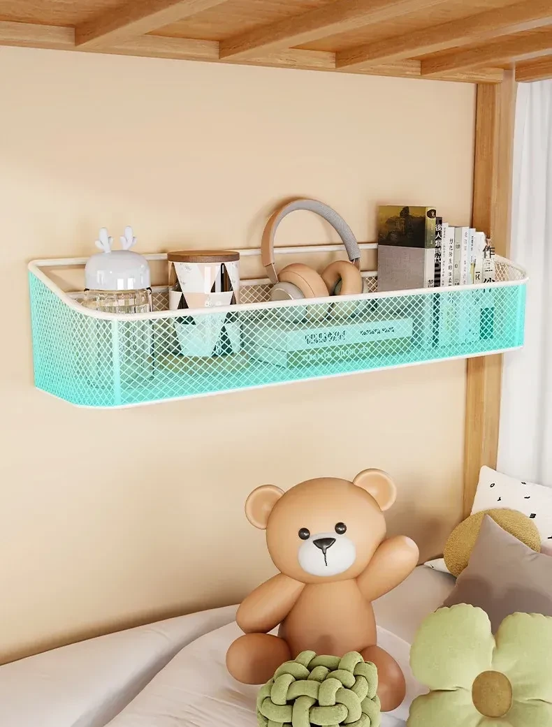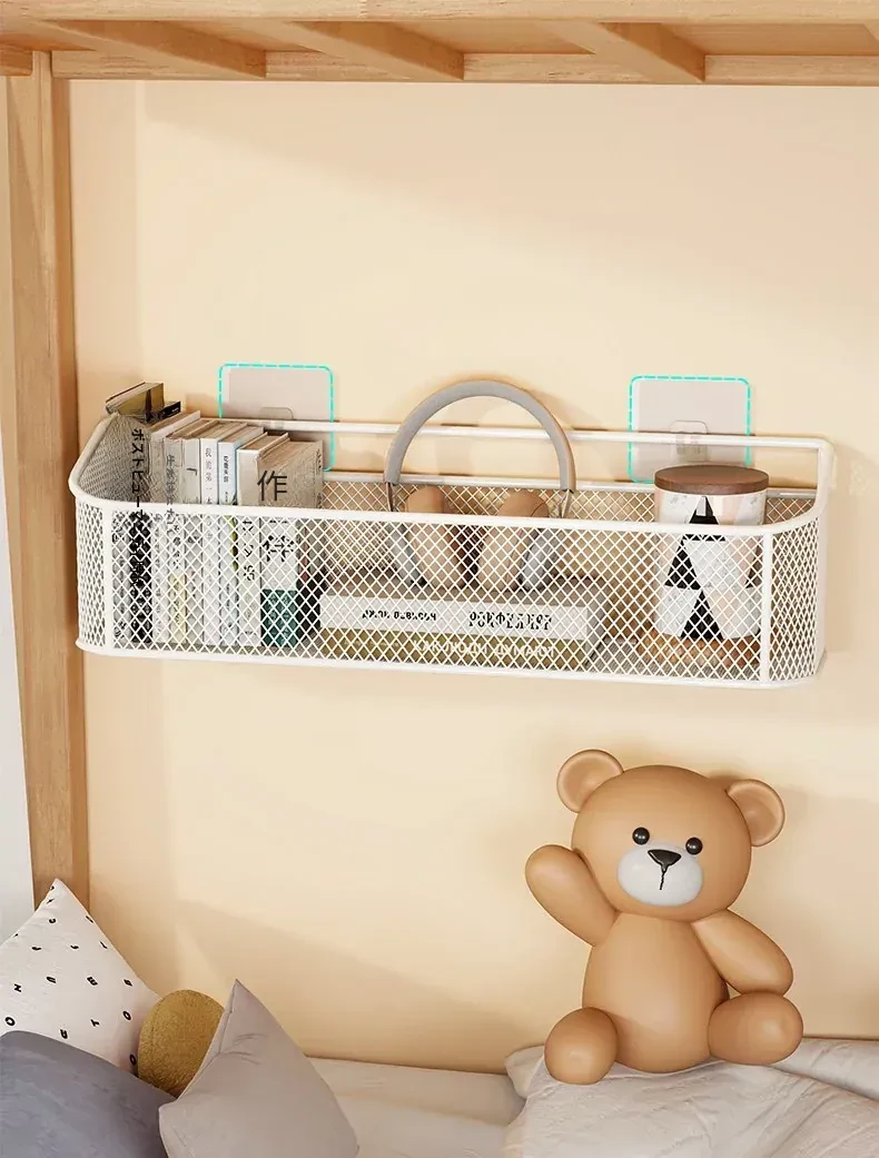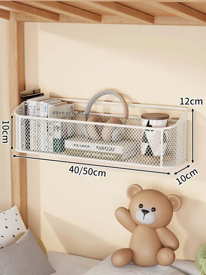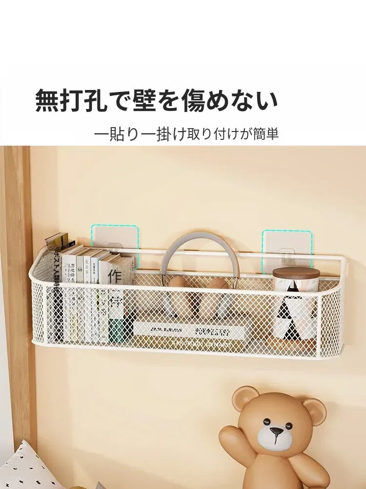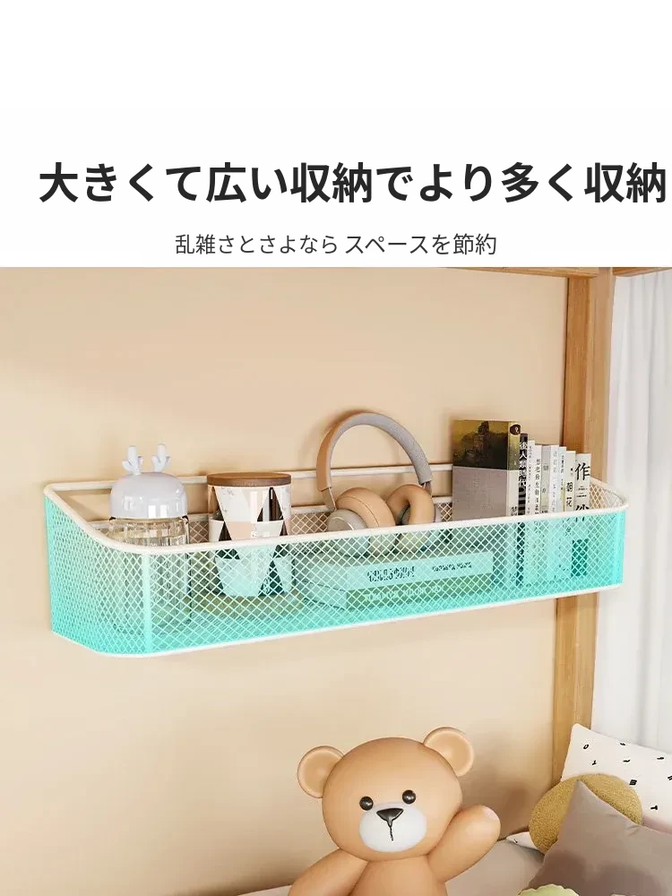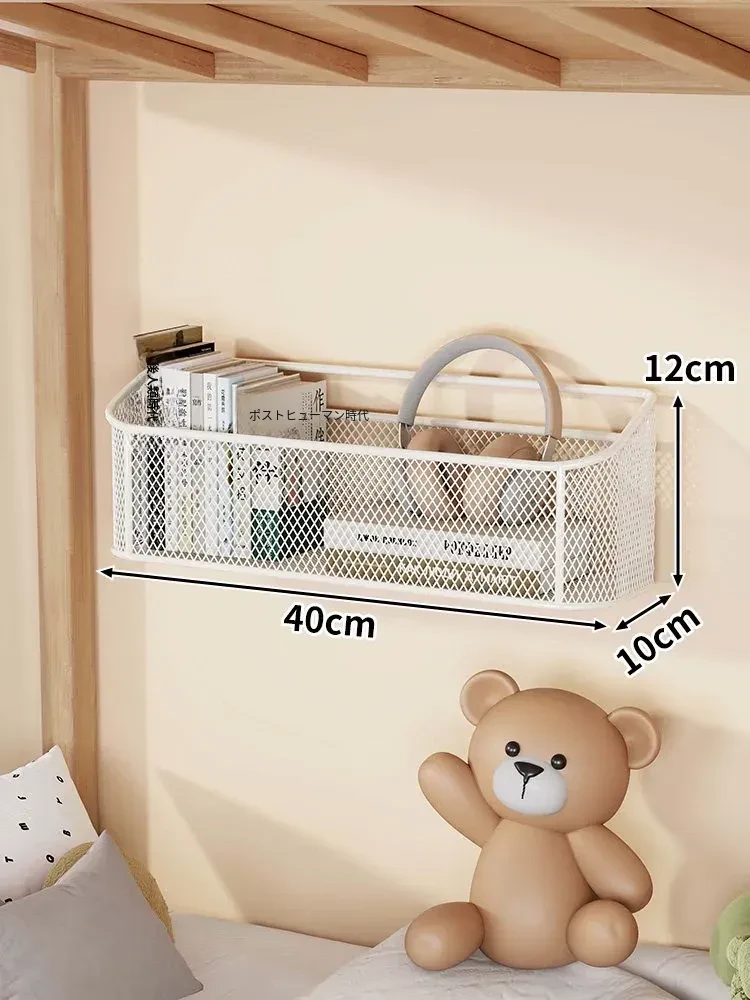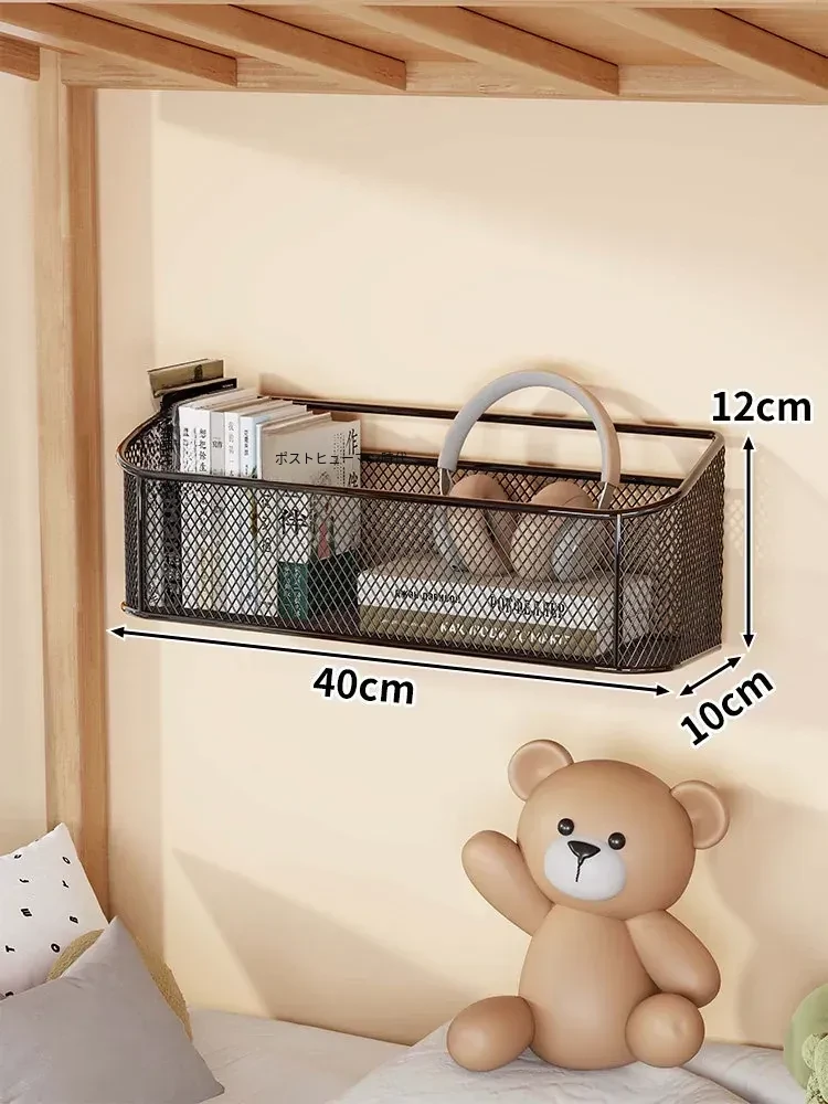壁掛け収納ラック - 宿舎にぴったり!ベッドサイドをスッキリ整理できる、穴を開けずに取り付け可能な便利なバスケット。学生生活をもっと快適に!